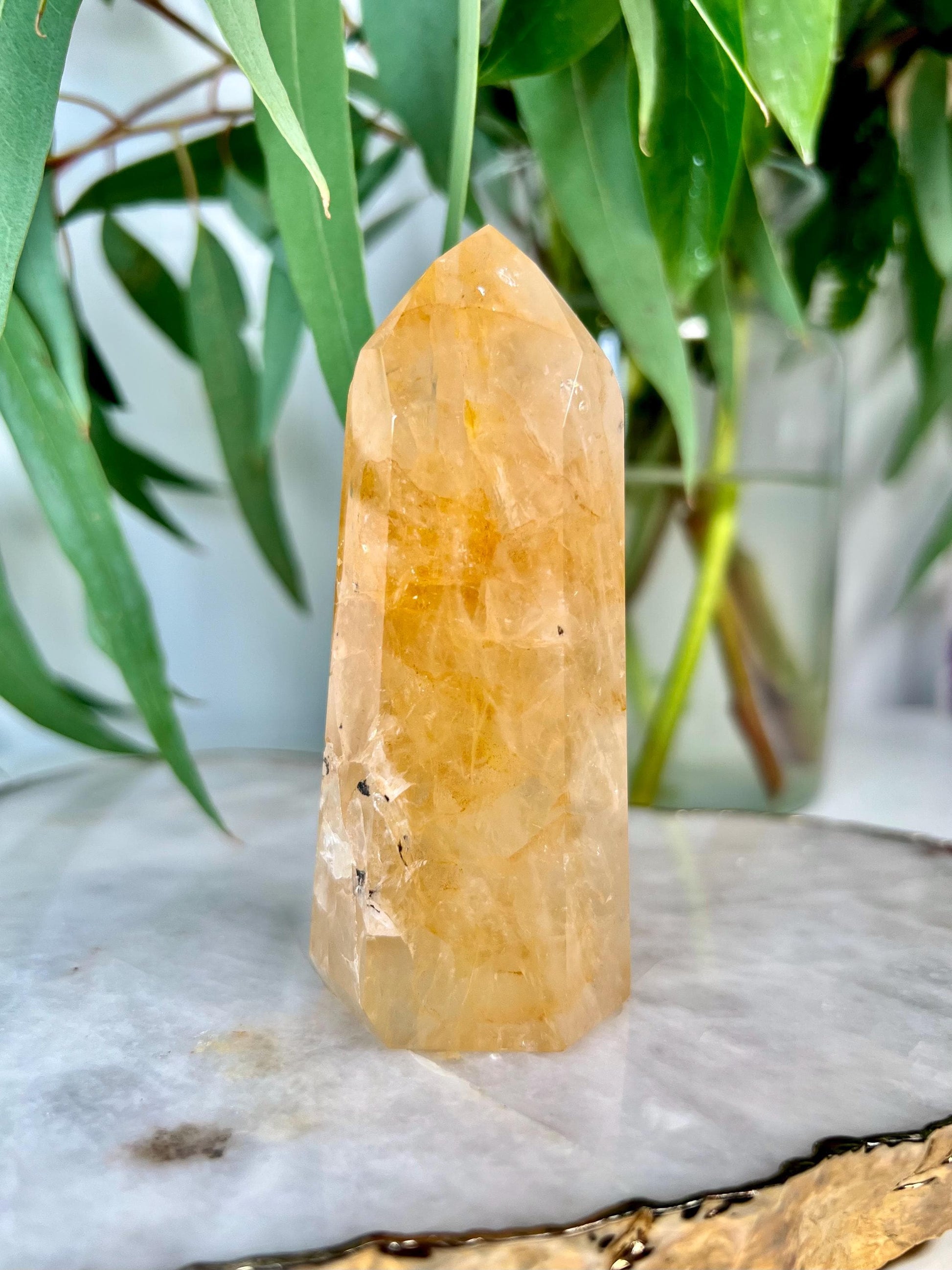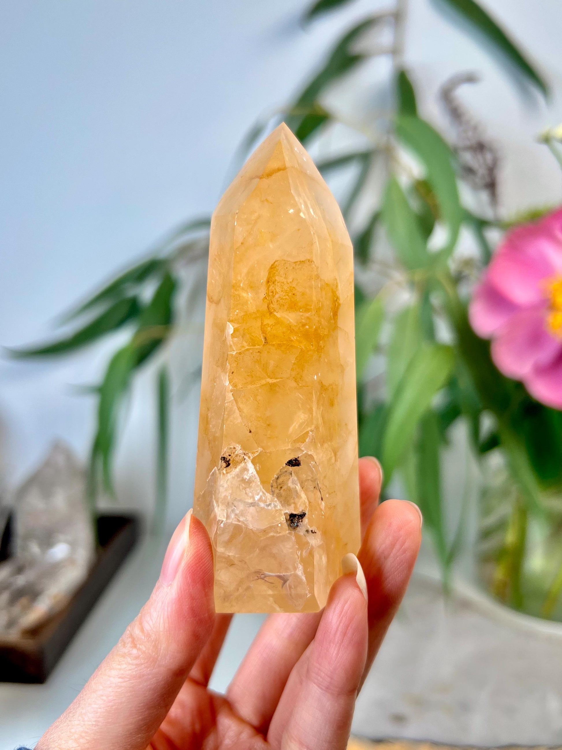 ✨ Embark on a Journey of High Energy and Abundant Healing - Discover the supreme power of our Grade AA Golden Healer Tower, a natural Hematoid Quartz masterpiece designed to elevate your energy frequency and foster comprehensive healing. Known for its connection to source energy and its ability to balance the solar plexus chakra, this tower is not just a crystal; it's a source of power, joy, peace, positivity, and abundance.