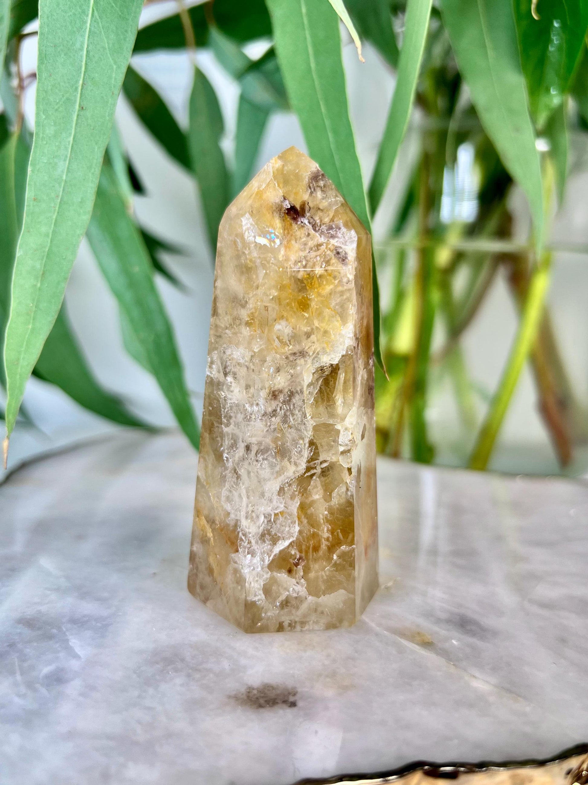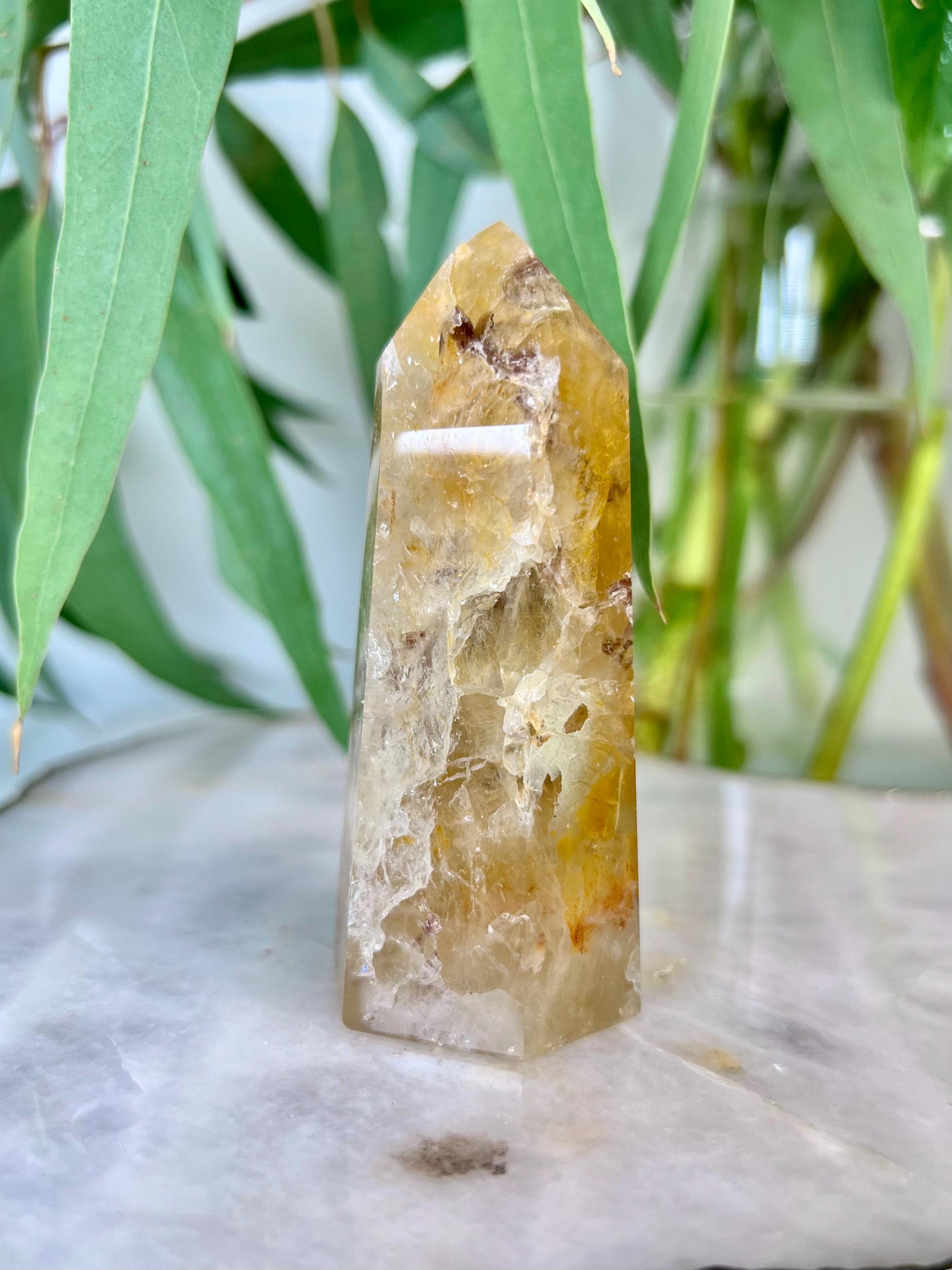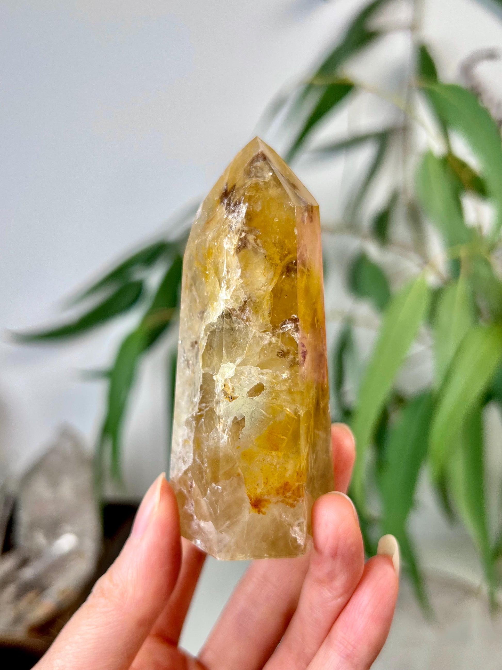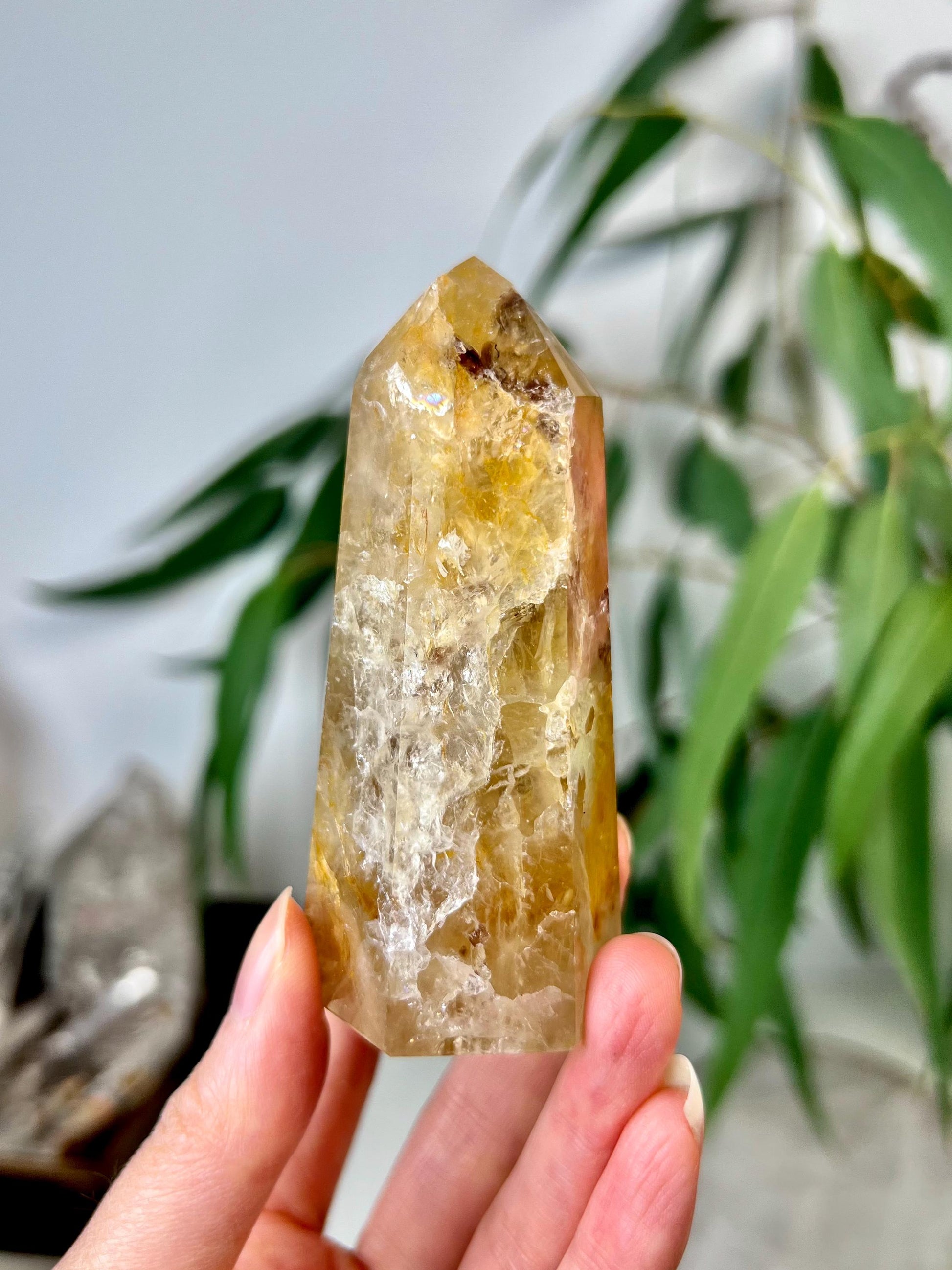 Grade AA Golden Healer Tower with Iron - Natural Hematoid Quartz for Ultimate Healing, Abundance, and High Energy Frequency GHC44, 152g