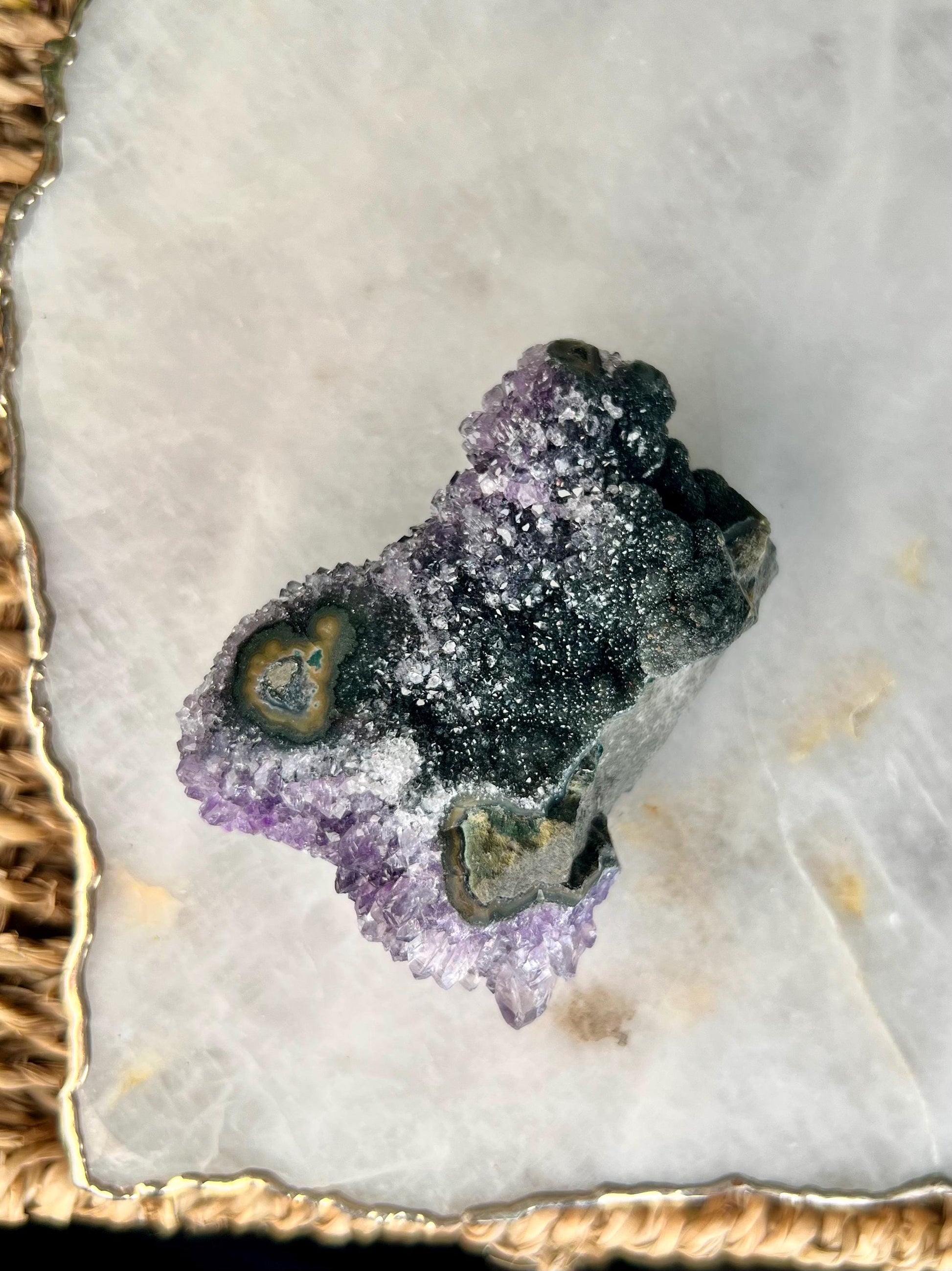 Grade AA Natural Amethyst Stalactitewith Black Druzy from Uruguay – Unique Formation, High-Energy Healing Crystal - US121, 99g
