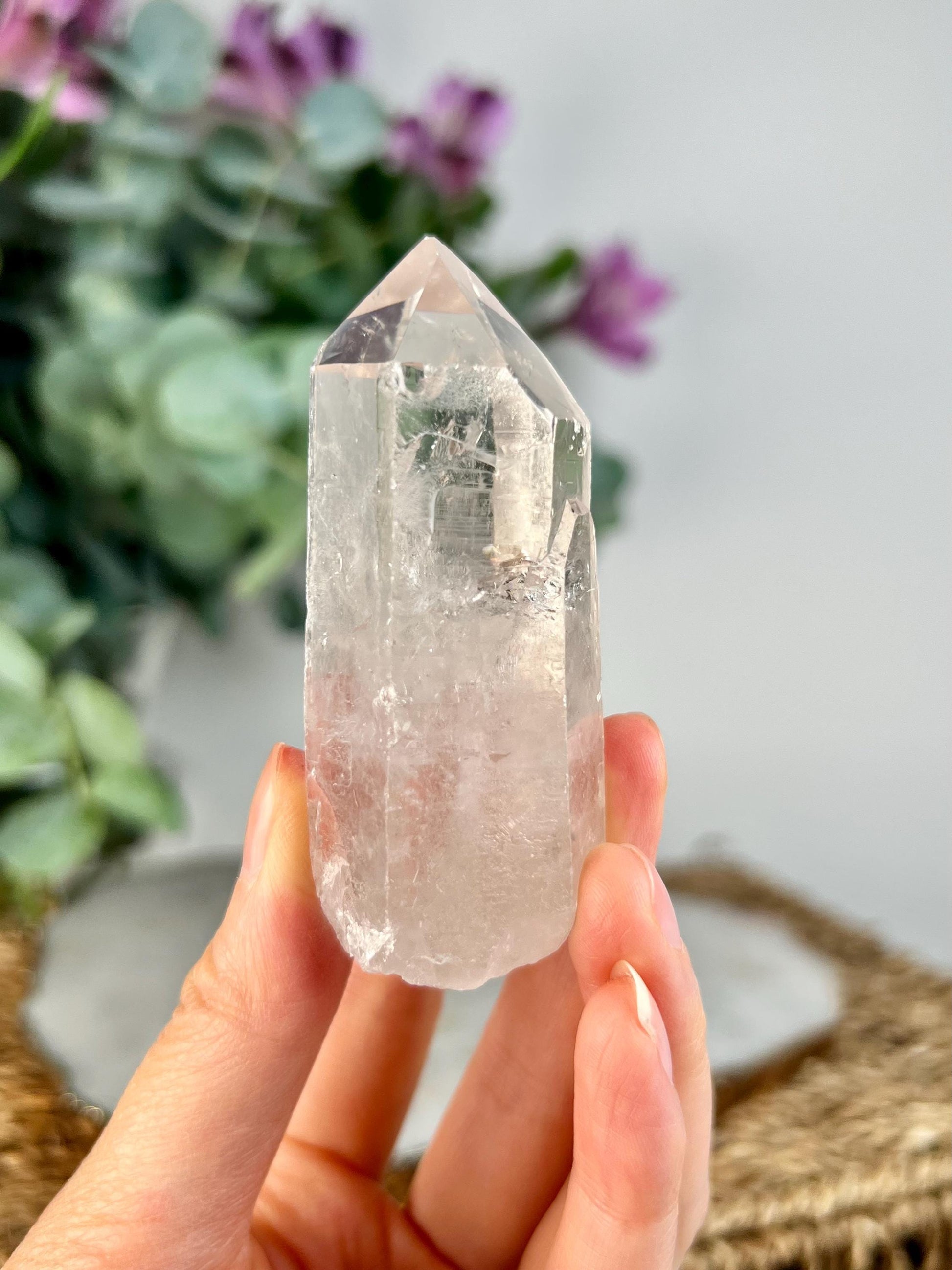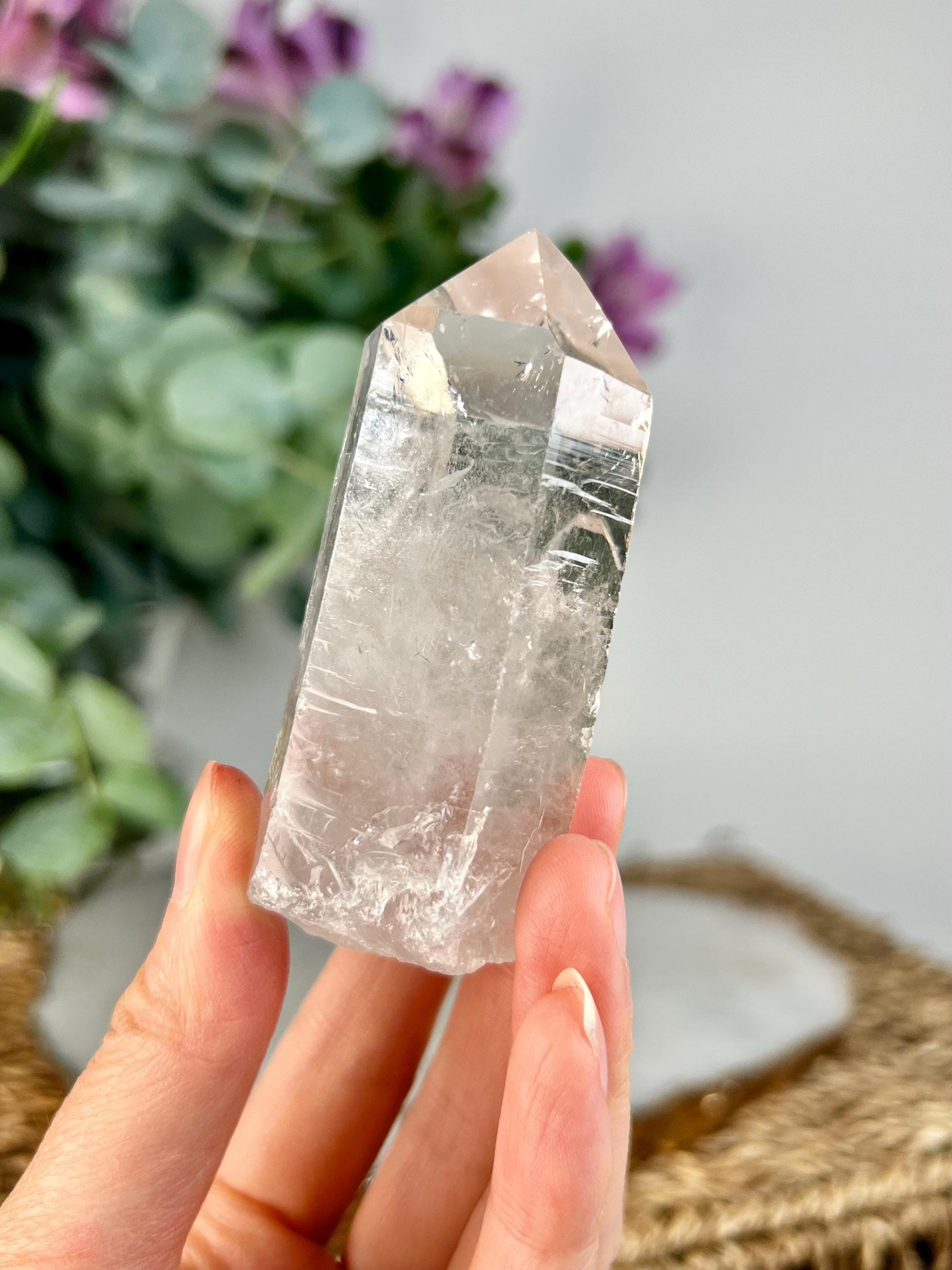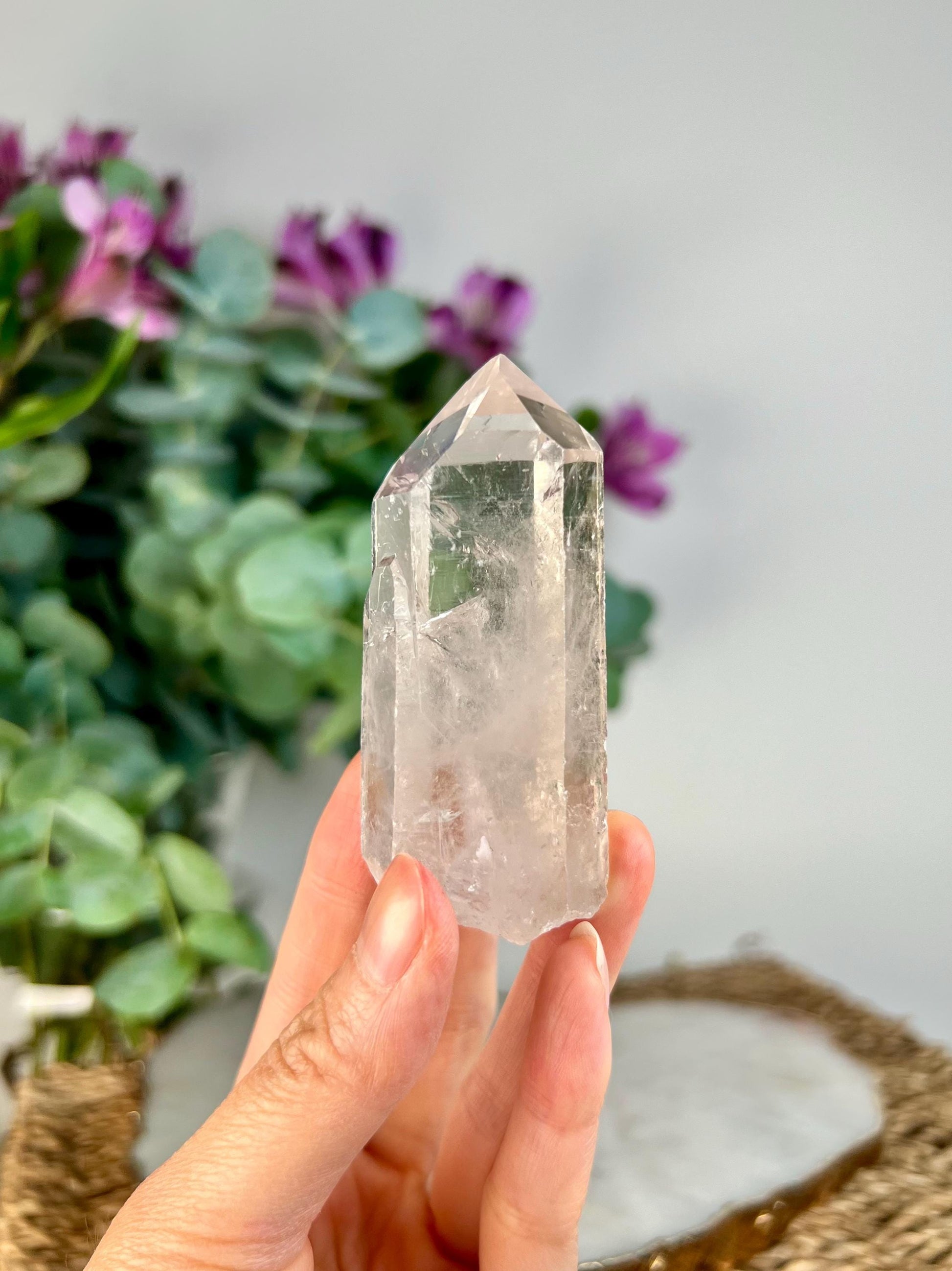 Clarity and Insight: The clarity of this quartz point mirrors the clarity it brings to the mind, aiding in the purification of thoughts and the attainment of deeper understanding.