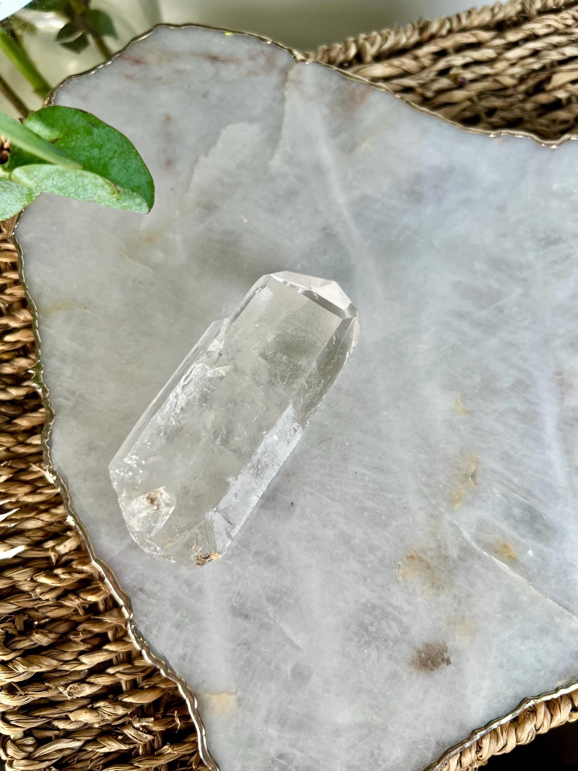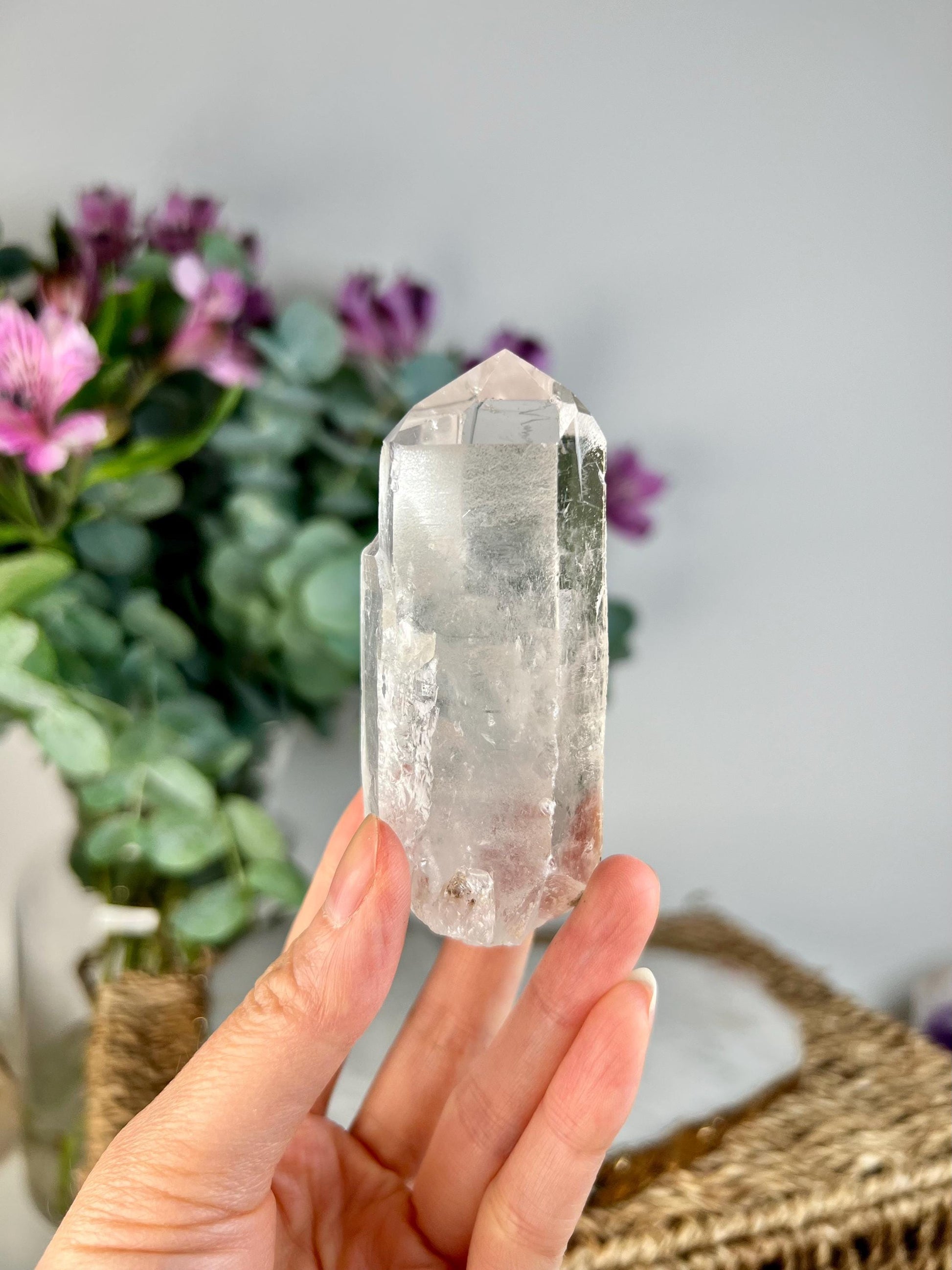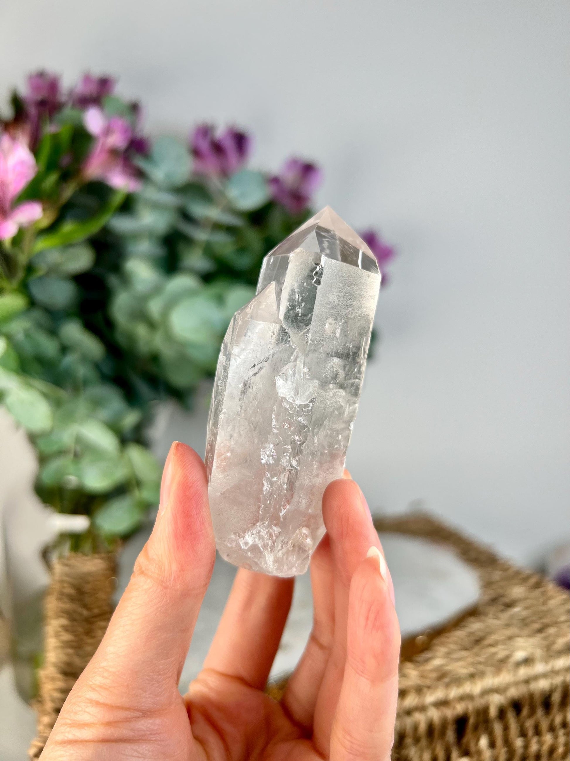Clarity and Insight: The clarity of this quartz point mirrors the clarity it brings to the mind, aiding in the purification of thoughts and the attainment of deeper understanding.