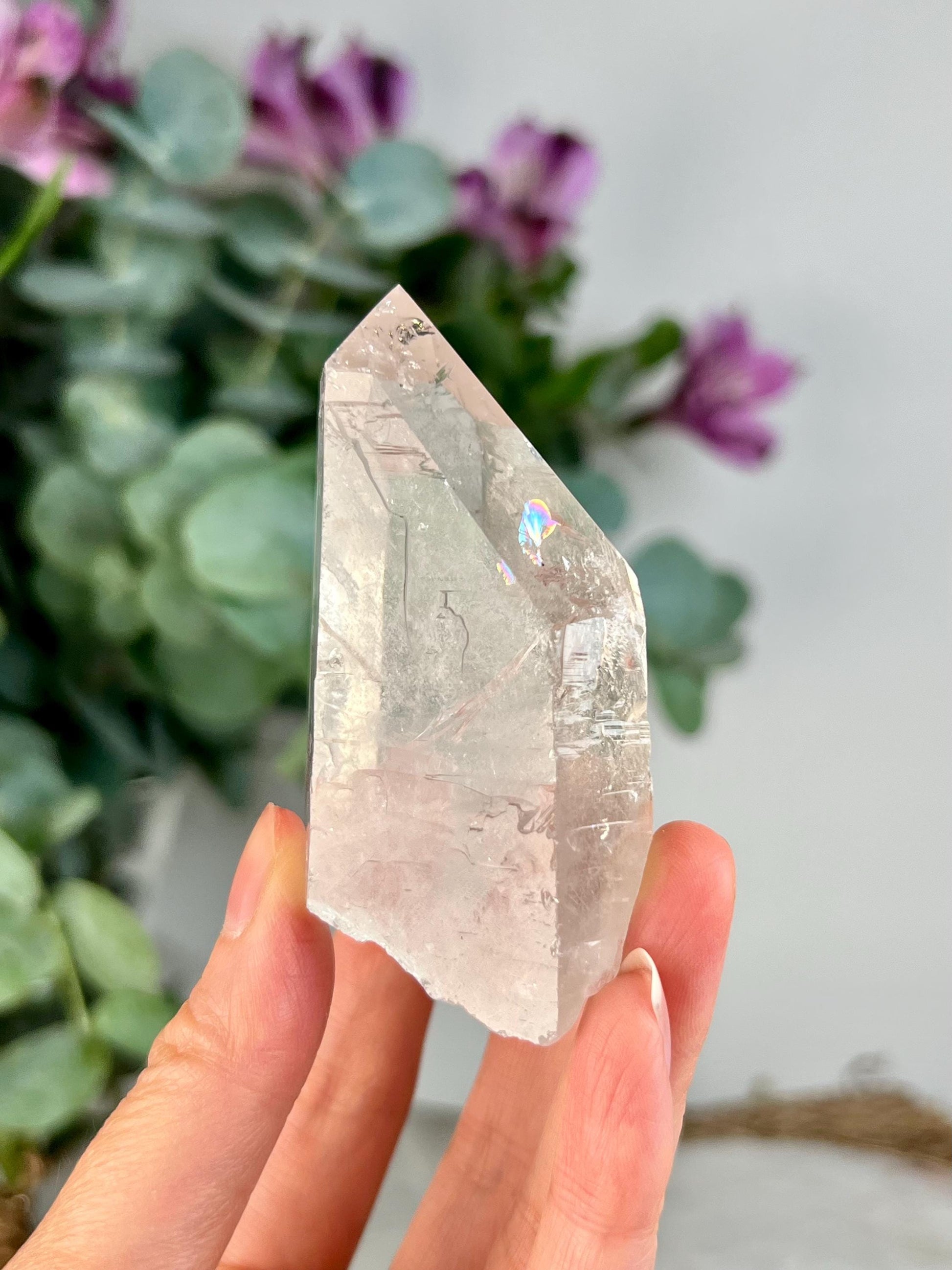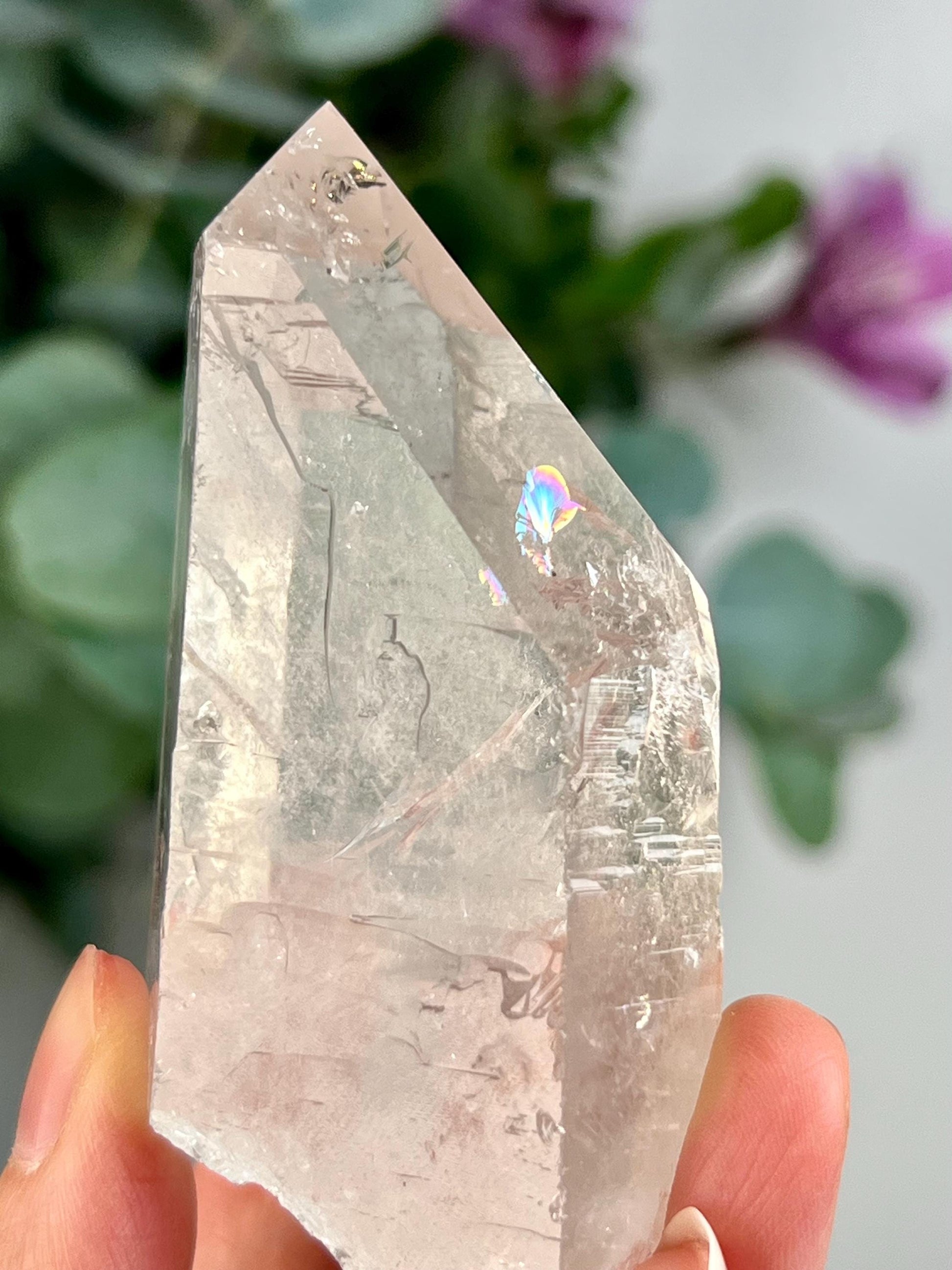 Grade AA Natural Etched Clear Quartz Point with Rainbow - A Beacon of Pure Energy and Insight QPC12, 138g
