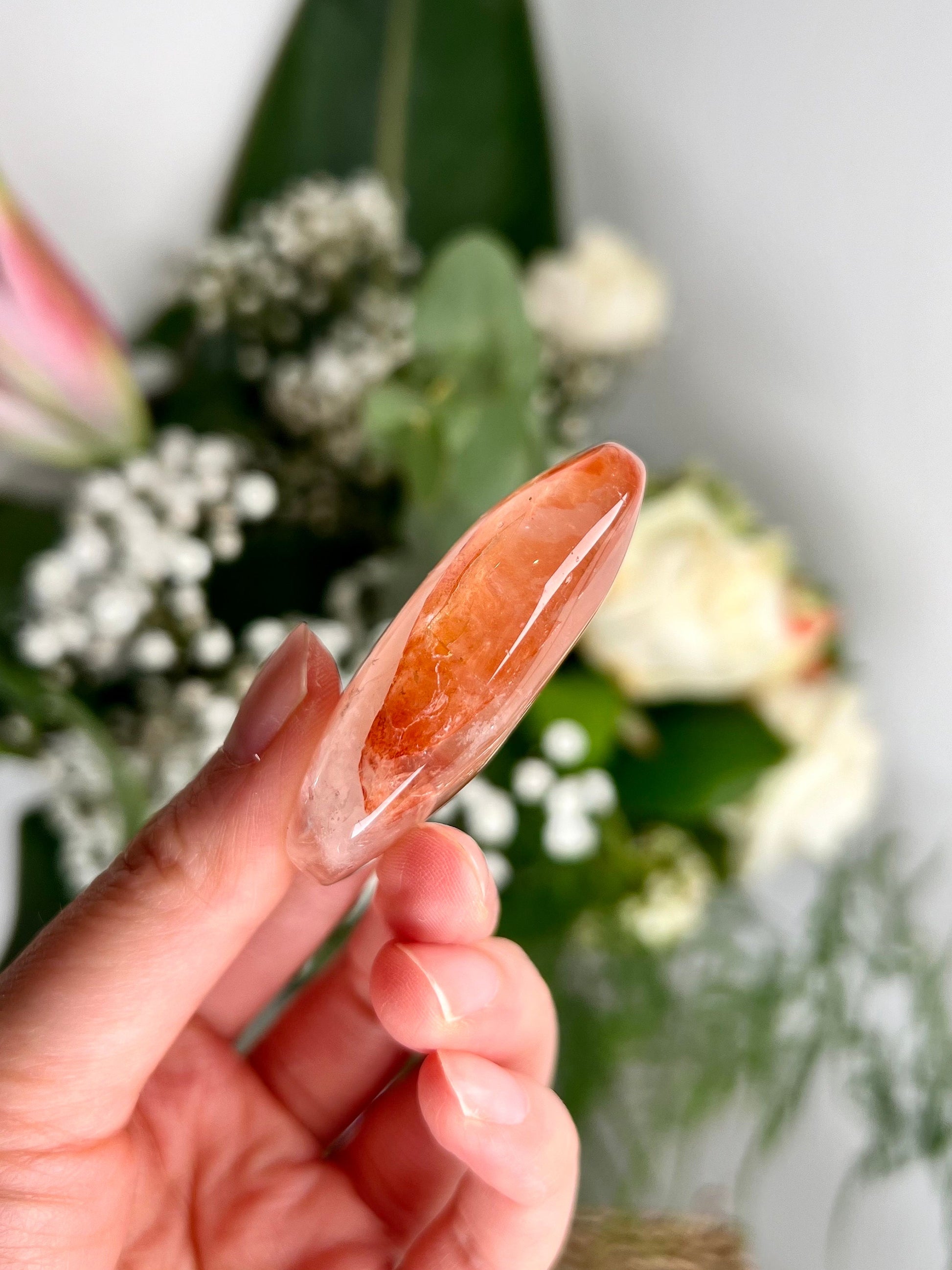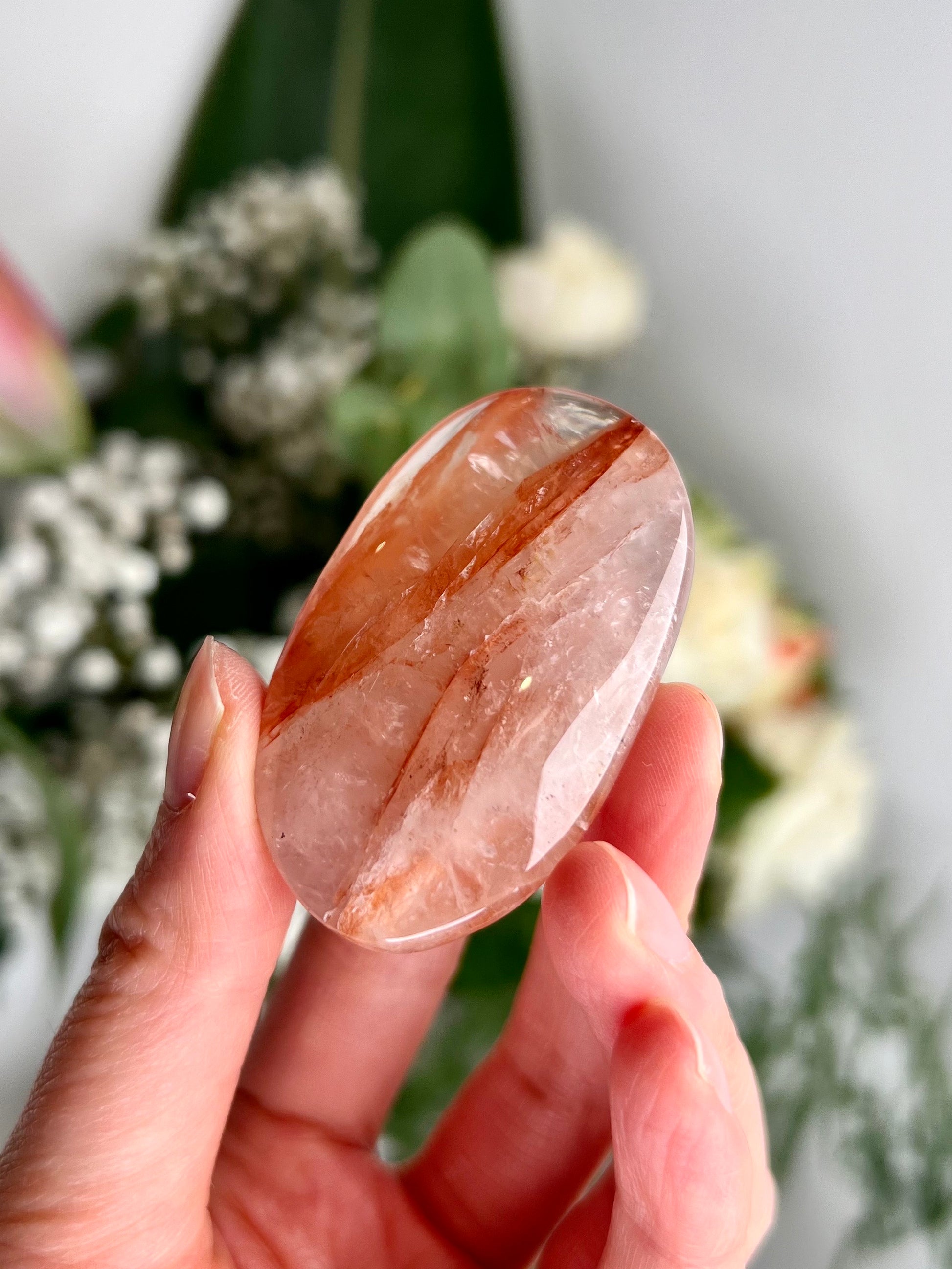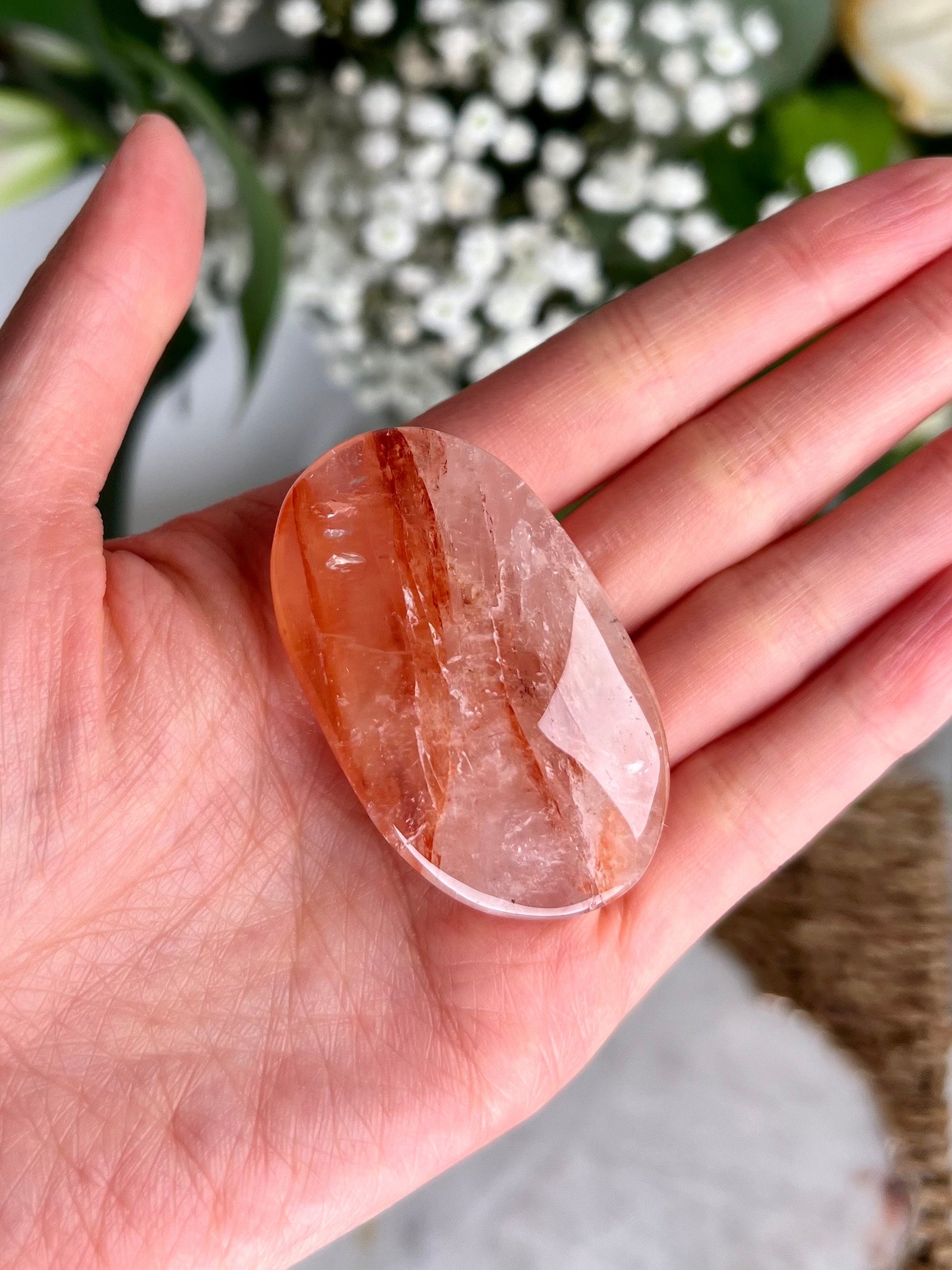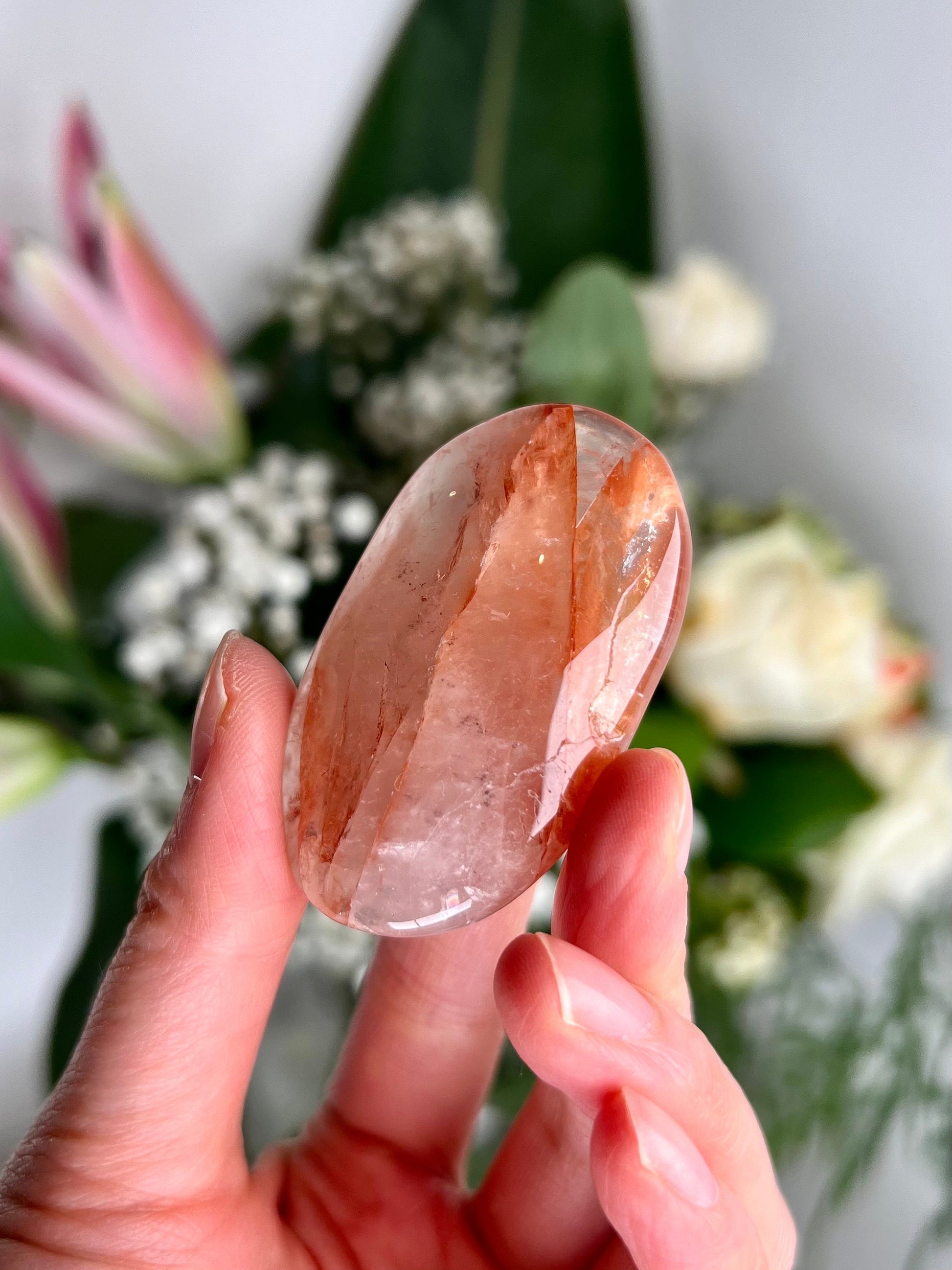 Grade AA Natural Fire Quartz Palmstone - The Spark of Creativity and Emotional Rejuvenation, FPQ12 42g