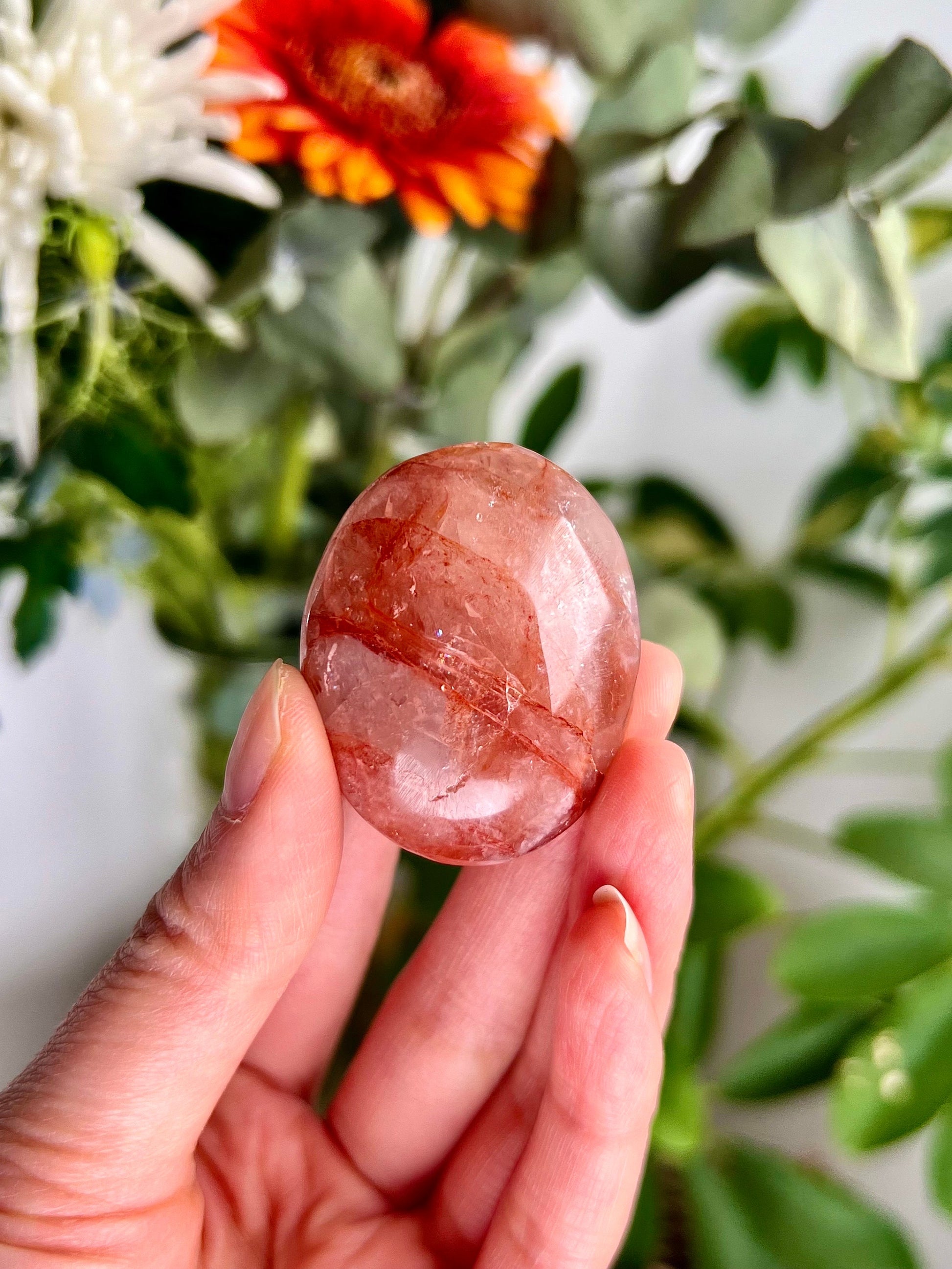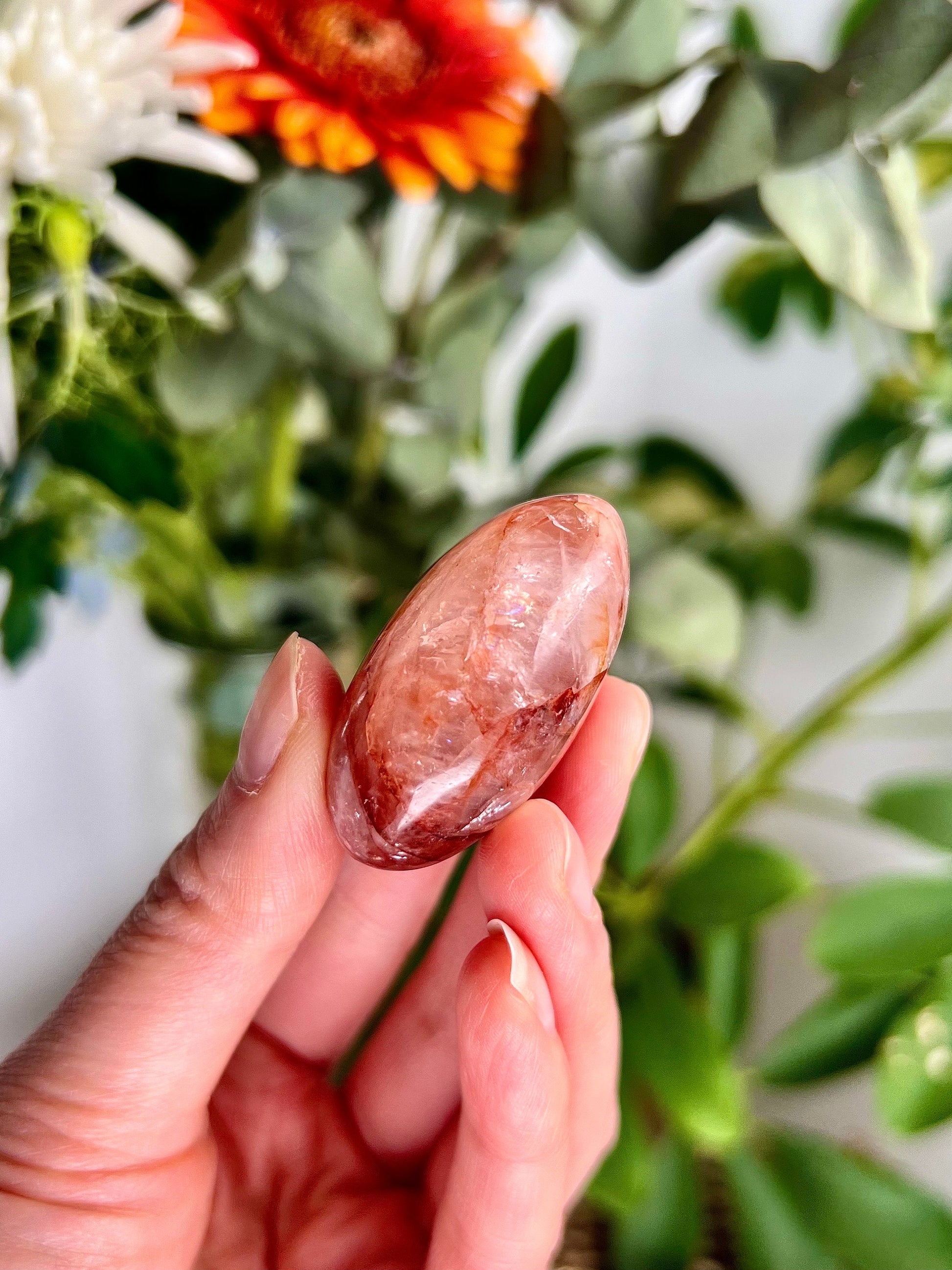 Grade AA Natural Fire Quartz Palmstone with Rainbow - The Spark of Creativity and Emotional Rejuvenation, FPQ23 41g