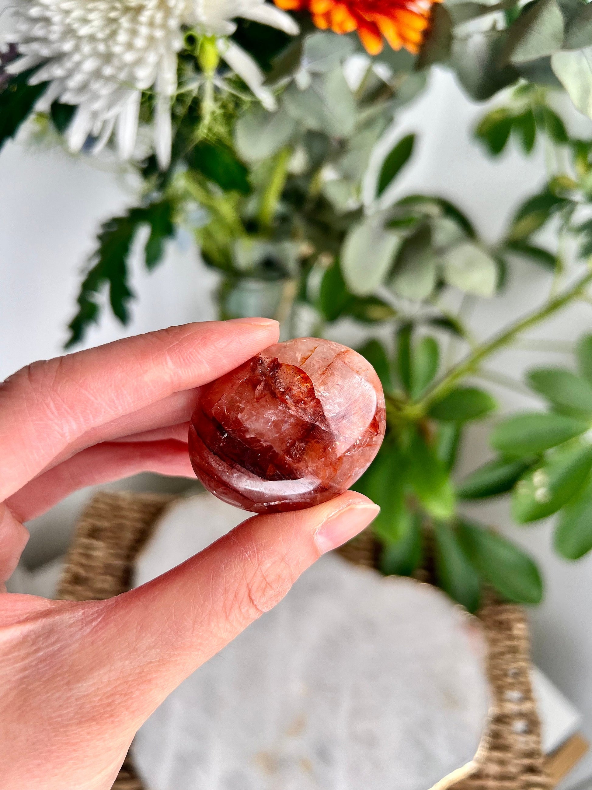 🌟 How To Use Fire Quartz - For the most effective spiritual and emotional benefits, incorporate this palmstone into daily meditation or carry it as a touchstone for continuous inspiration and energy. It also pairs well with crystals like Amethyst for calmness and Sunstone for leadership and power, amplifying both their properties and your intentions.