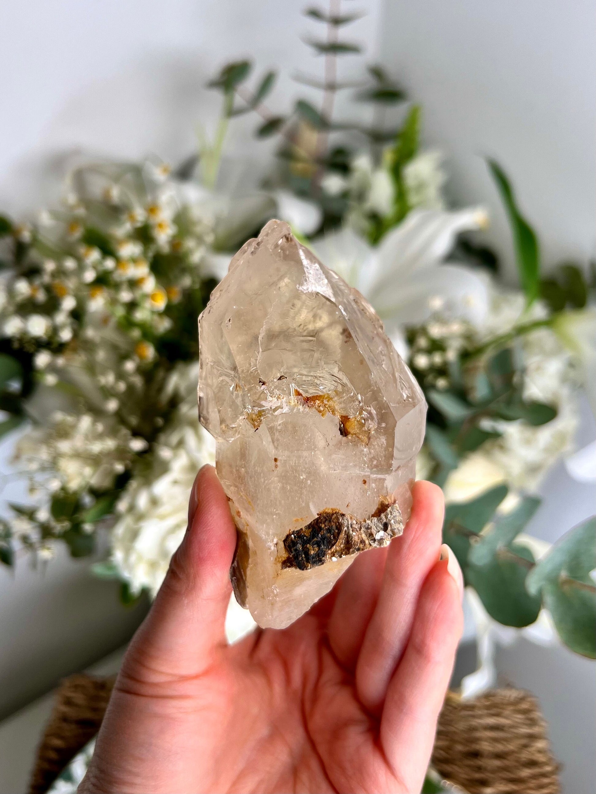 Grade AA+ Natural Golden Smoky Citrine Cathedral Point with Mica - Extra Quality, CCH04, 244g