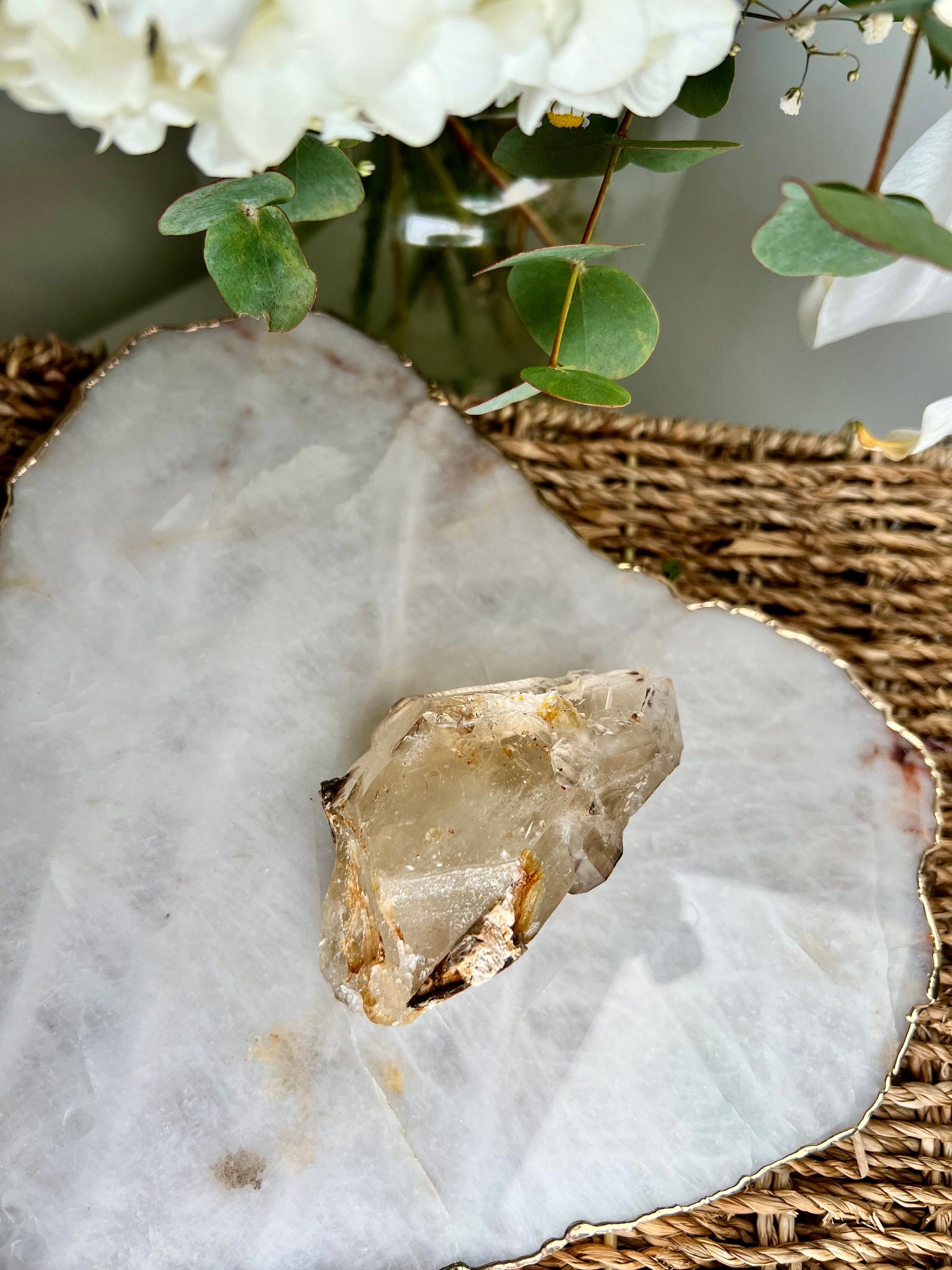 🌍 Citrine's Natural Genesis - Golden Citrine, a variety of Quartz, owes its warm, golden hue to traces of iron. It forms in high-temperature environments, often within granite and pegmatite veins, and undergoes a natural heat treatment from geological processes, transforming from its amethyst origins to the golden splendor we cherish.