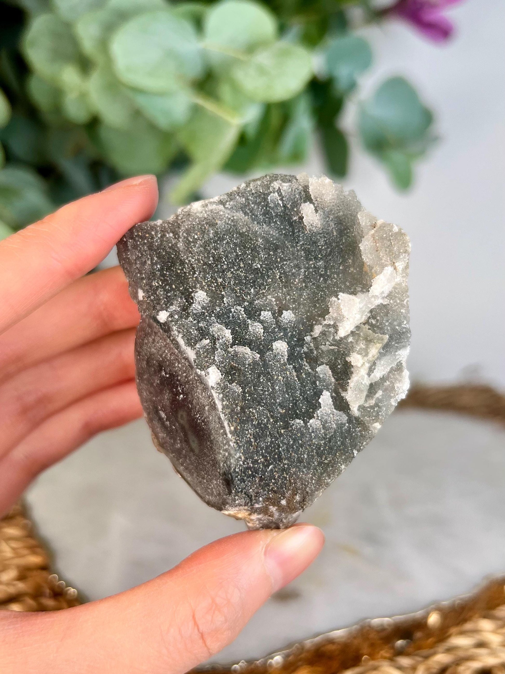 🌍 Origin: Sourced from Uruguay, this crystal combines the region's iconic deep green jasper hues with druzy amethyst formations, creating a one-of-a-kind natural masterpiece.