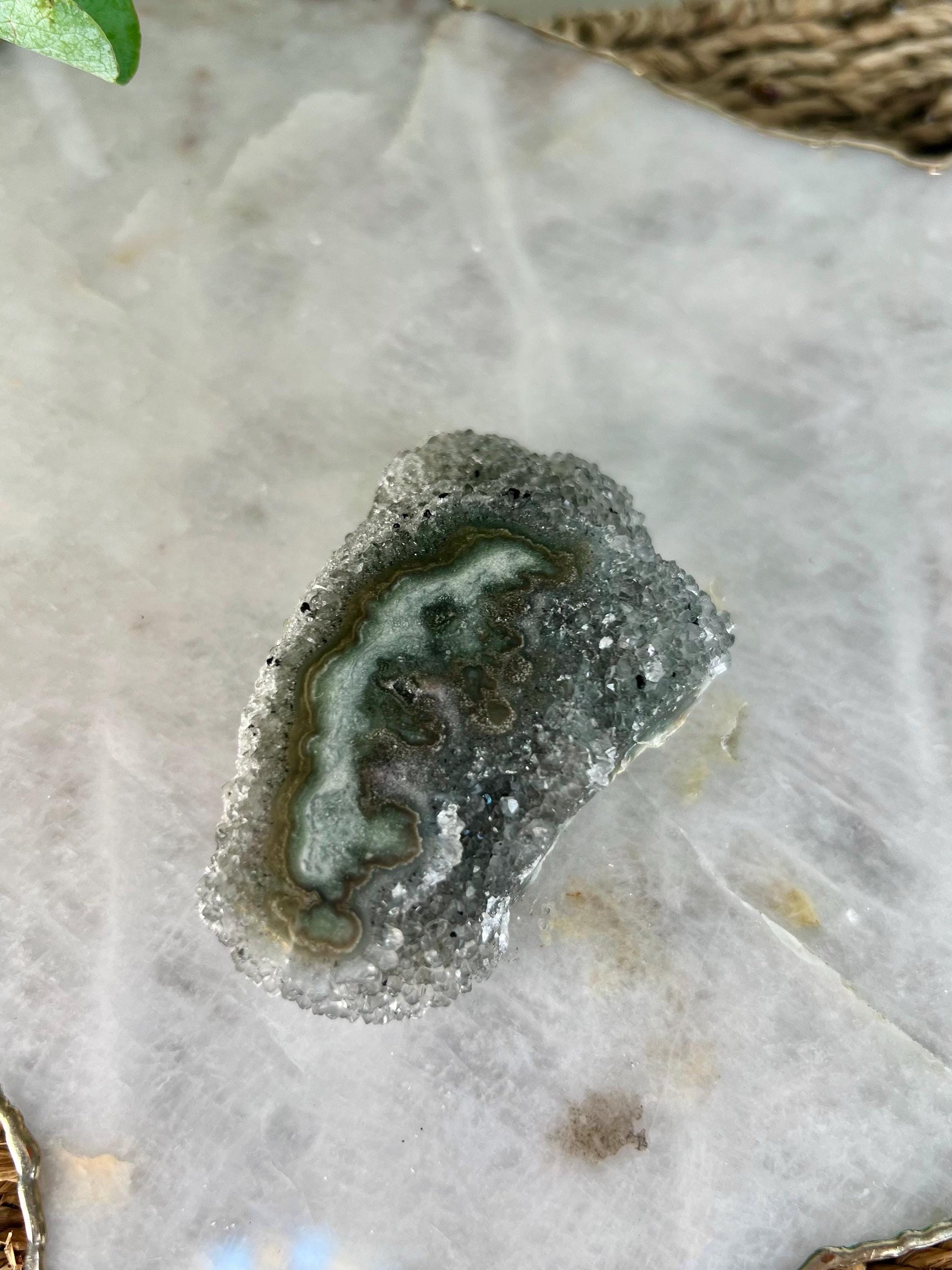 Grade AA Natural Green Jasper Druzy Stalactite Eye from Uruguay – Rainbow Amethyst, Heart Chakra, US115, 109g