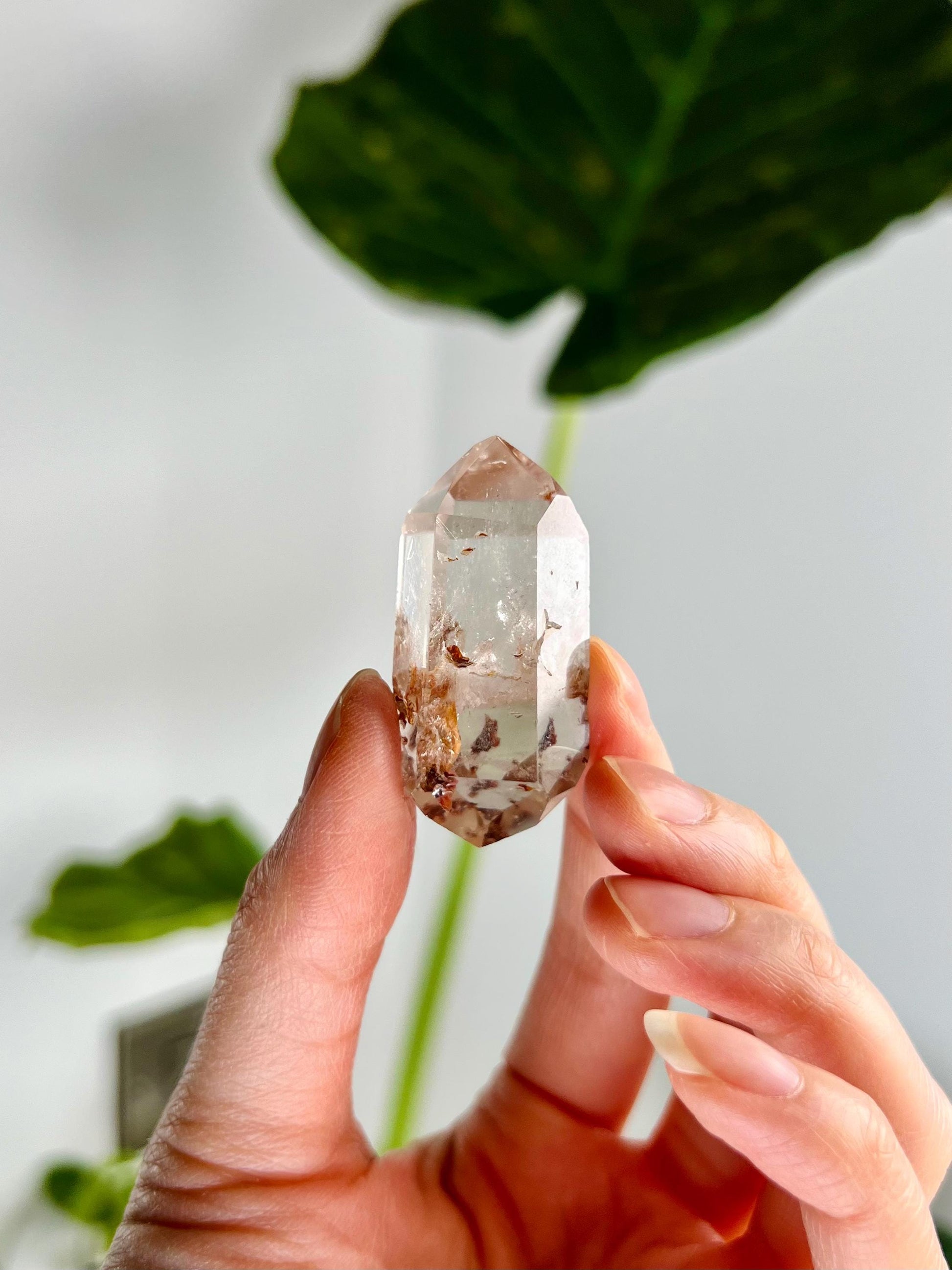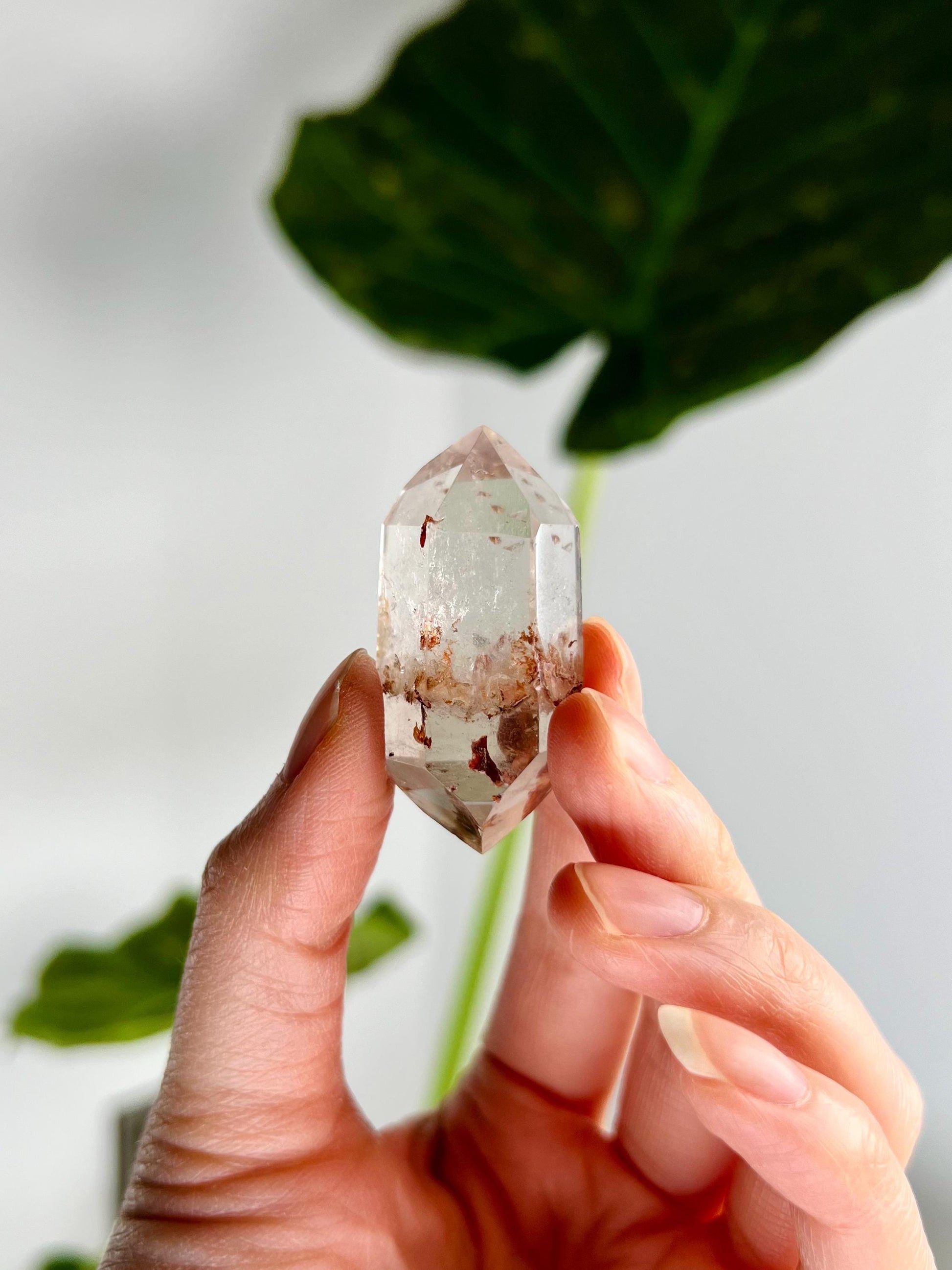 🔮Metaphysical Properties: Double-Terminated Quartz with Hematite and Iron inclusions is a potent tool for grounding, protection, and energy amplification. The Hematite inclusion brings stabilizing, earthy energy, fostering mental clarity, courage, and emotional balance. Iron inclusions, rooted in Earth energy, enhance your ability to remain grounded during spiritual work. This unique blend allows for a perfect combination of spiritual growth and emotional resilience while also fortifying the aura and shielding from negative influences.