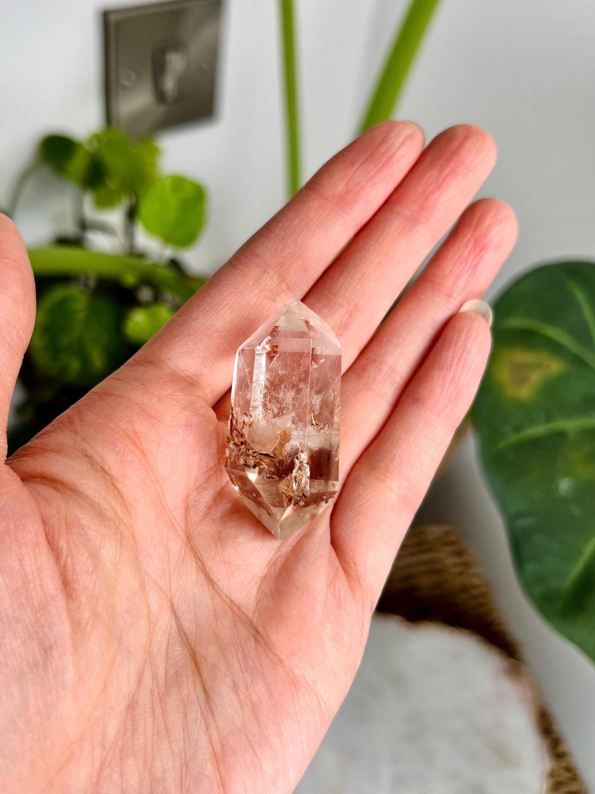 The Double-Terminated structure of the quartz allows it to send and receive energy simultaneously, creating a continuous flow of healing energy. It is especially helpful in spiritual communication and enhancing intuition. These inclusions in quartz also improve the crystal's ability to balance dualities-like spiritual and physical realities, thought and action-making it a perfect tool for those undergoing personal transformation.