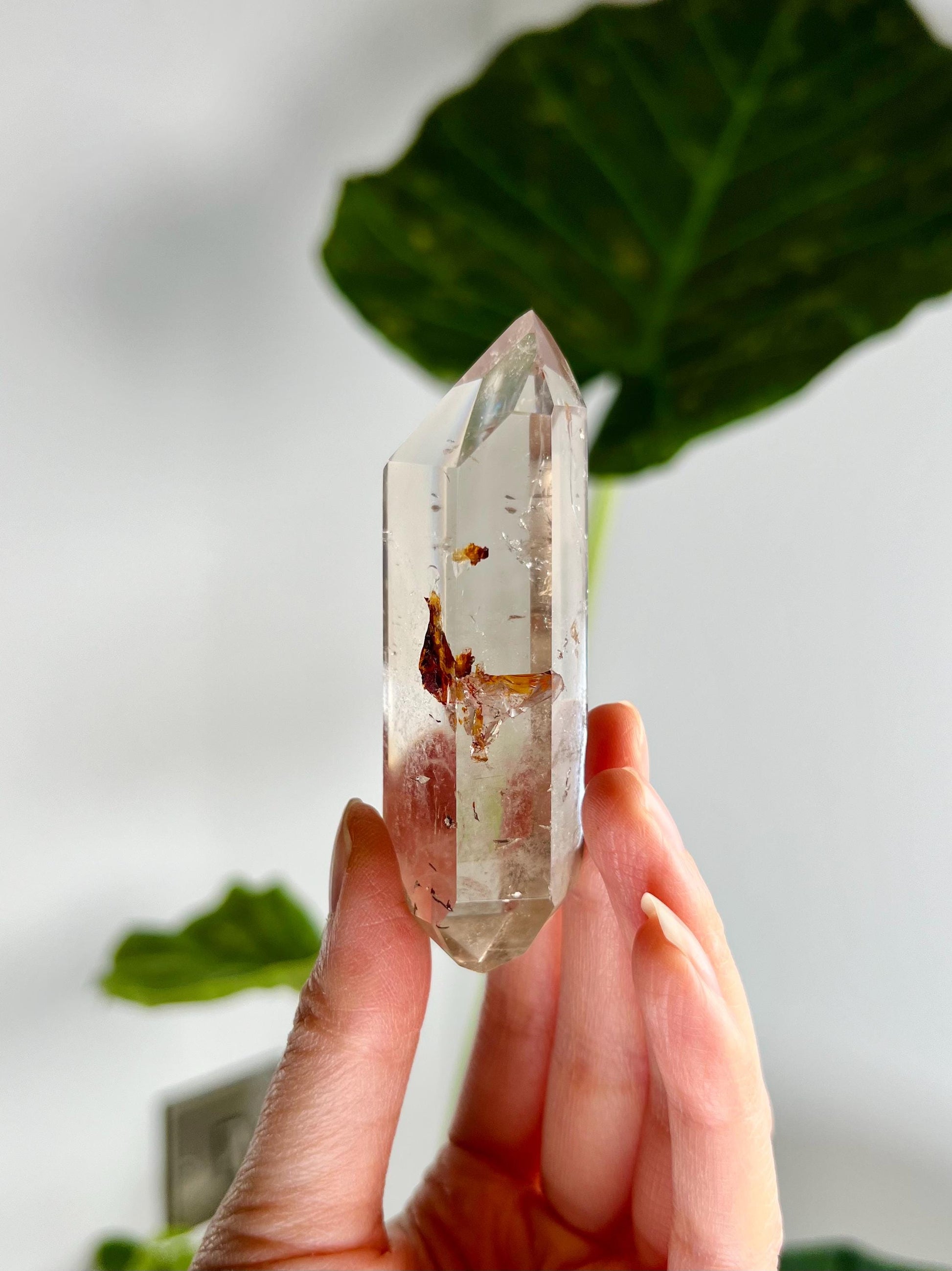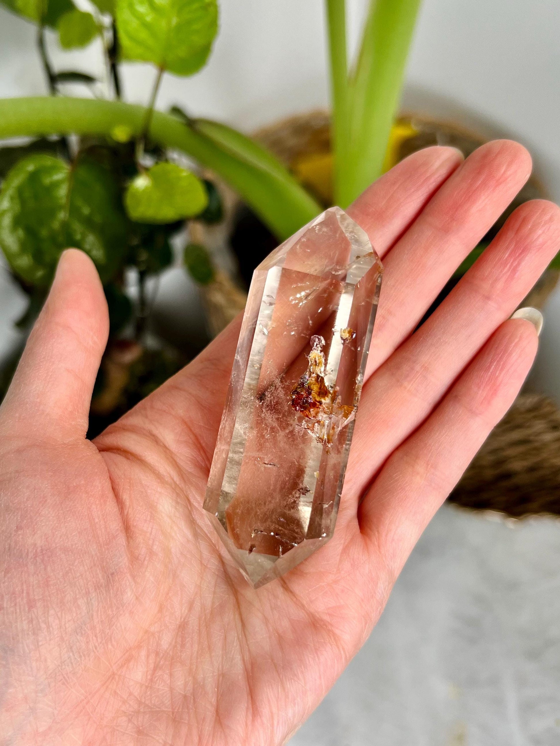 🔮Metaphysical Properties: Double-Terminated Quartz with Hematite and Iron inclusions is a potent tool for grounding, protection, and energy amplification. The Hematite inclusion brings stabilizing, earthy energy, fostering mental clarity, courage, and emotional balance. Iron inclusions, rooted in Earth energy, enhance your ability to remain grounded during spiritual work. This unique blend allows for a perfect combination of spiritual growth and emotional resilience while also fortifying the aura and shielding from negative influences.