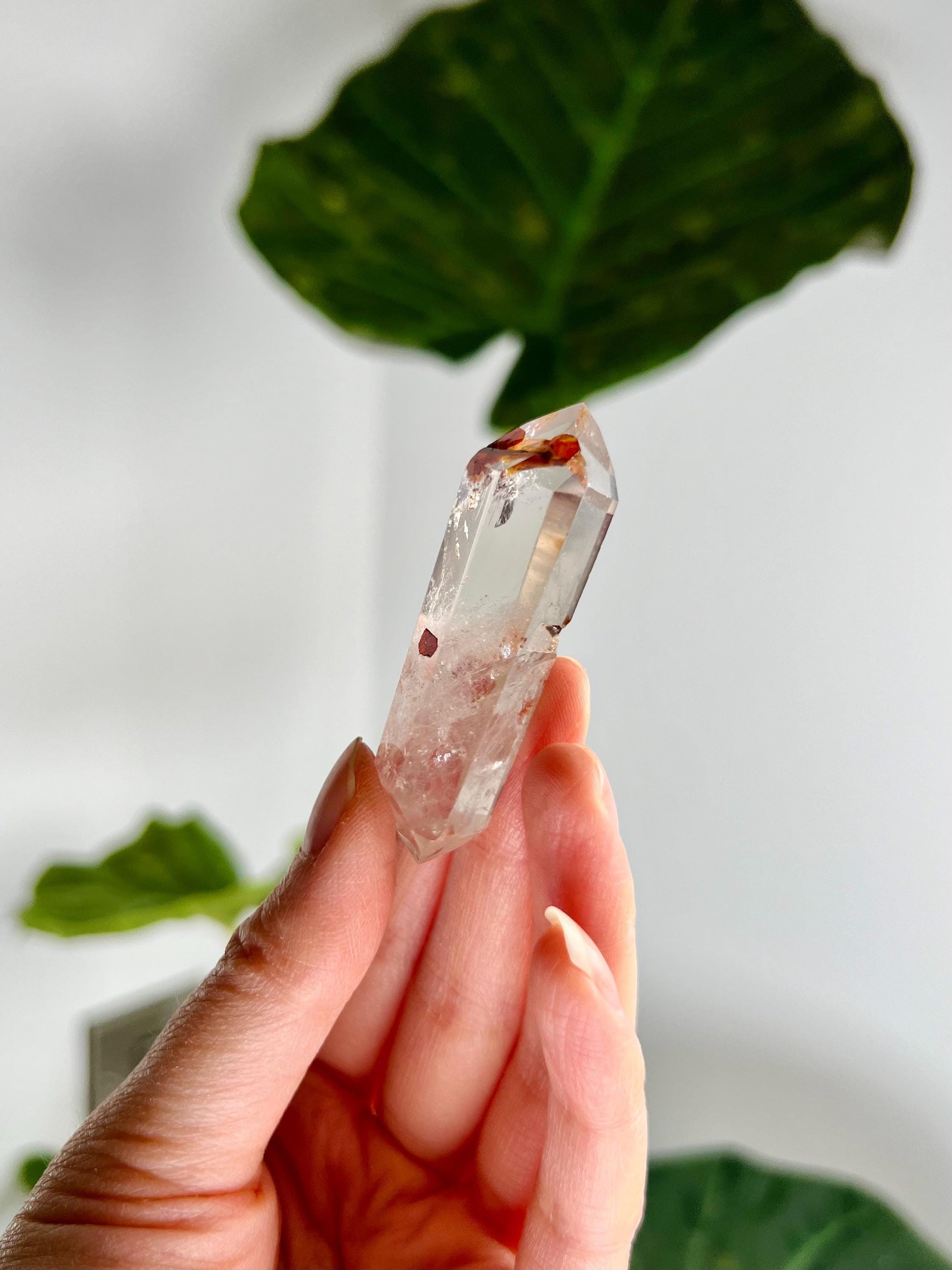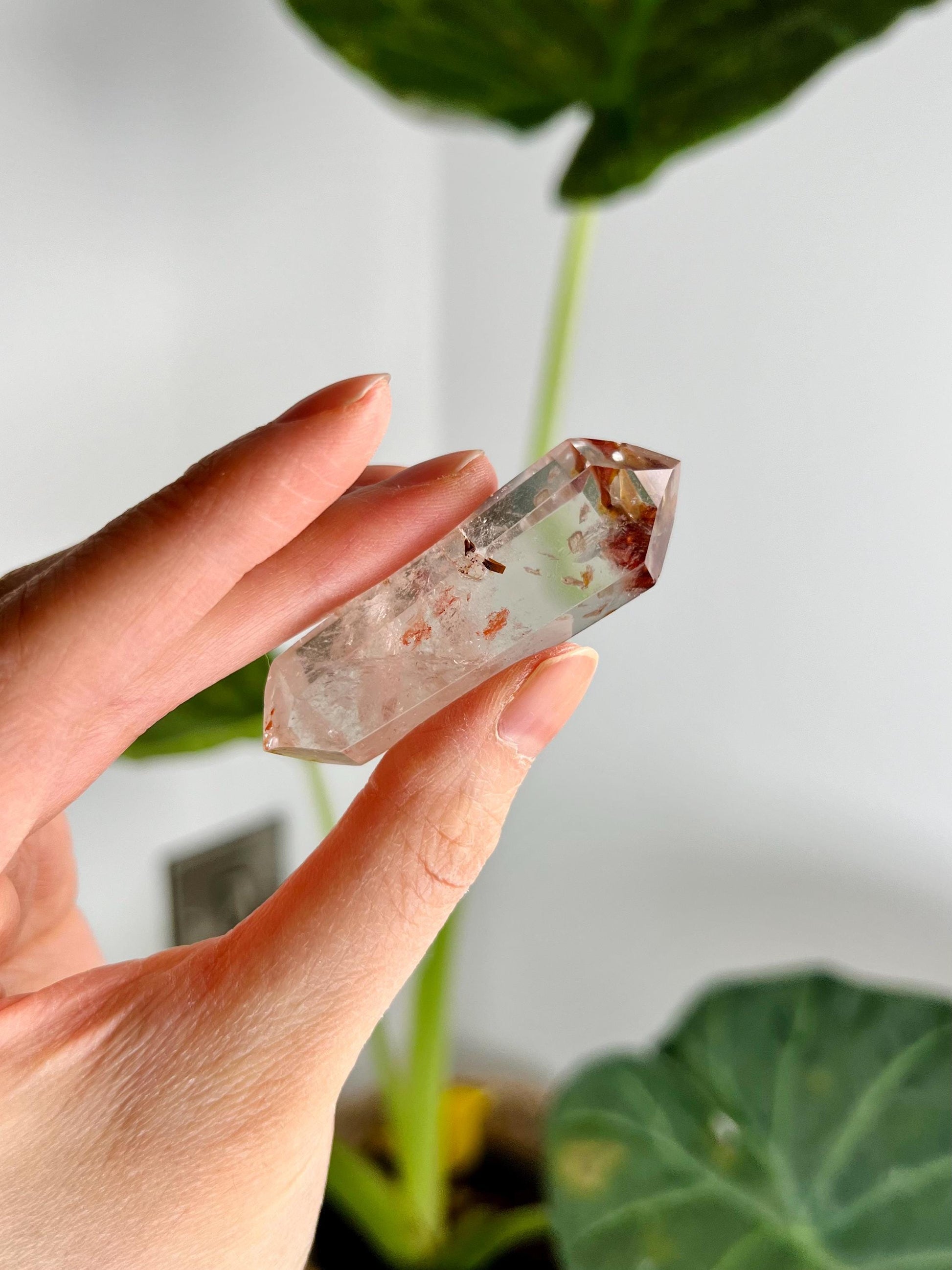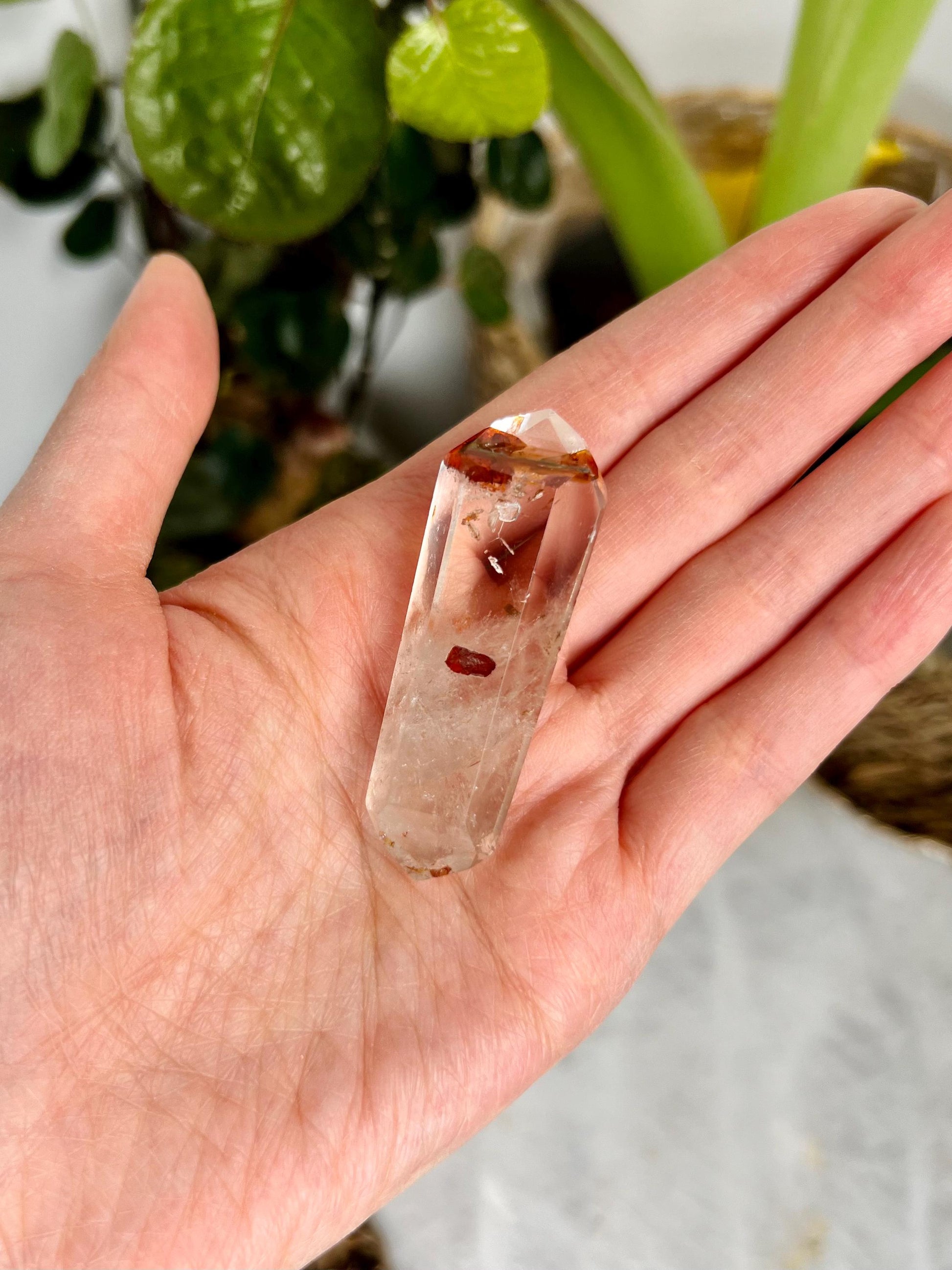 🔮Metaphysical Properties: Double-Terminated Quartz with Hematite and Iron inclusions is a potent tool for grounding, protection, and energy amplification. The Hematite inclusion brings stabilizing, earthy energy, fostering mental clarity, courage, and emotional balance. Iron inclusions, rooted in Earth energy, enhance your ability to remain grounded during spiritual work. This unique blend allows for a perfect combination of spiritual growth and emotional resilience while also fortifying the aura and shielding from negative influences.