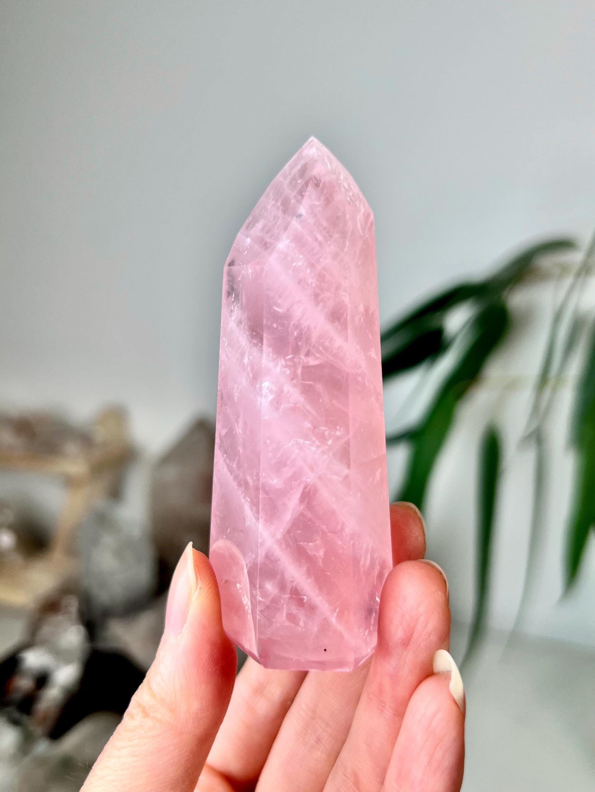 Sourced from Bahia, Brazil, these pieces carry a naturally nurturing and harmonizing frequency. The tower shape is intentional: it channels energy upward, making this crystal a potent tool for amplifying affirmations, supporting spiritual growth, and creating a beacon of love energy in your space.