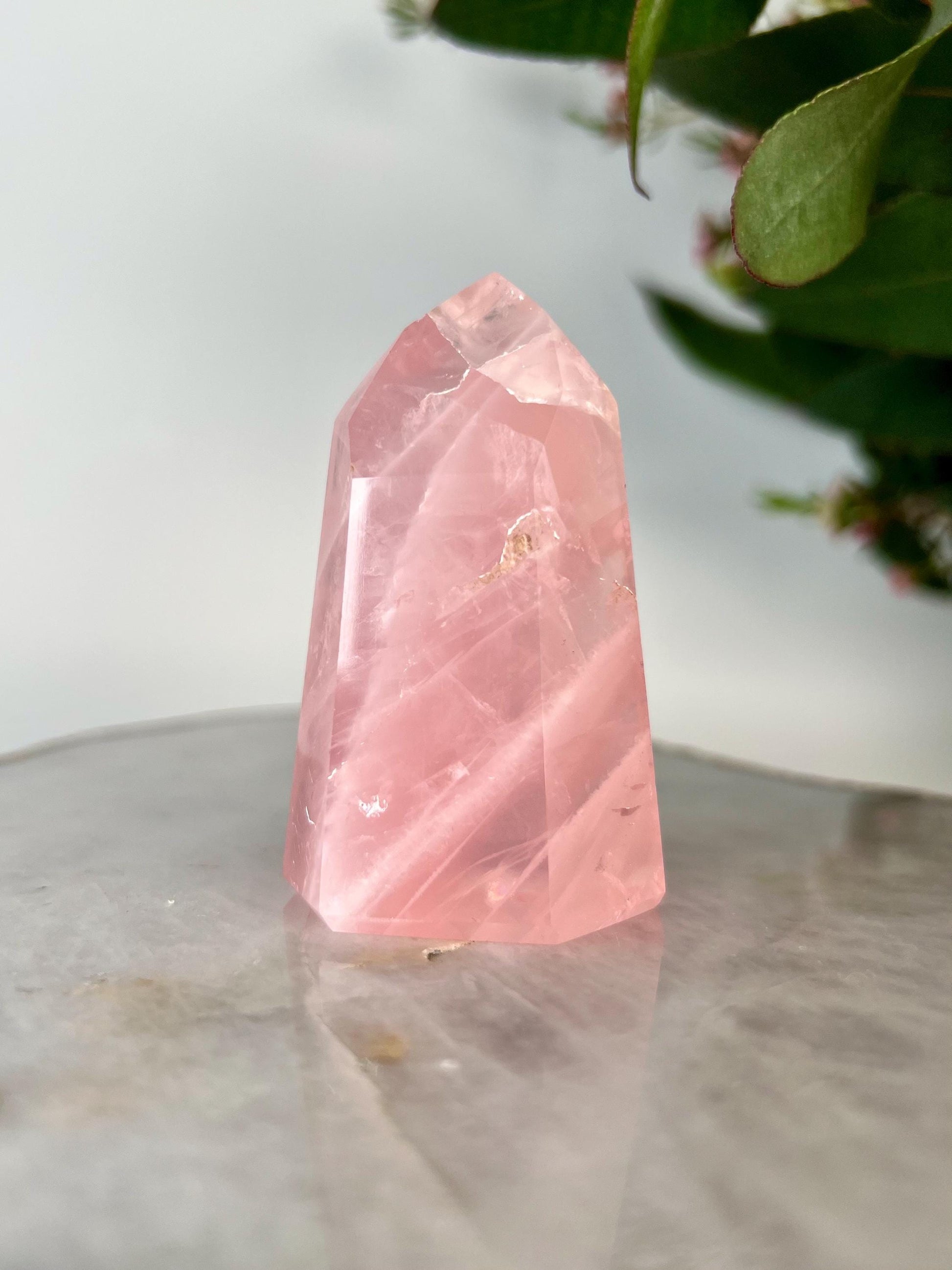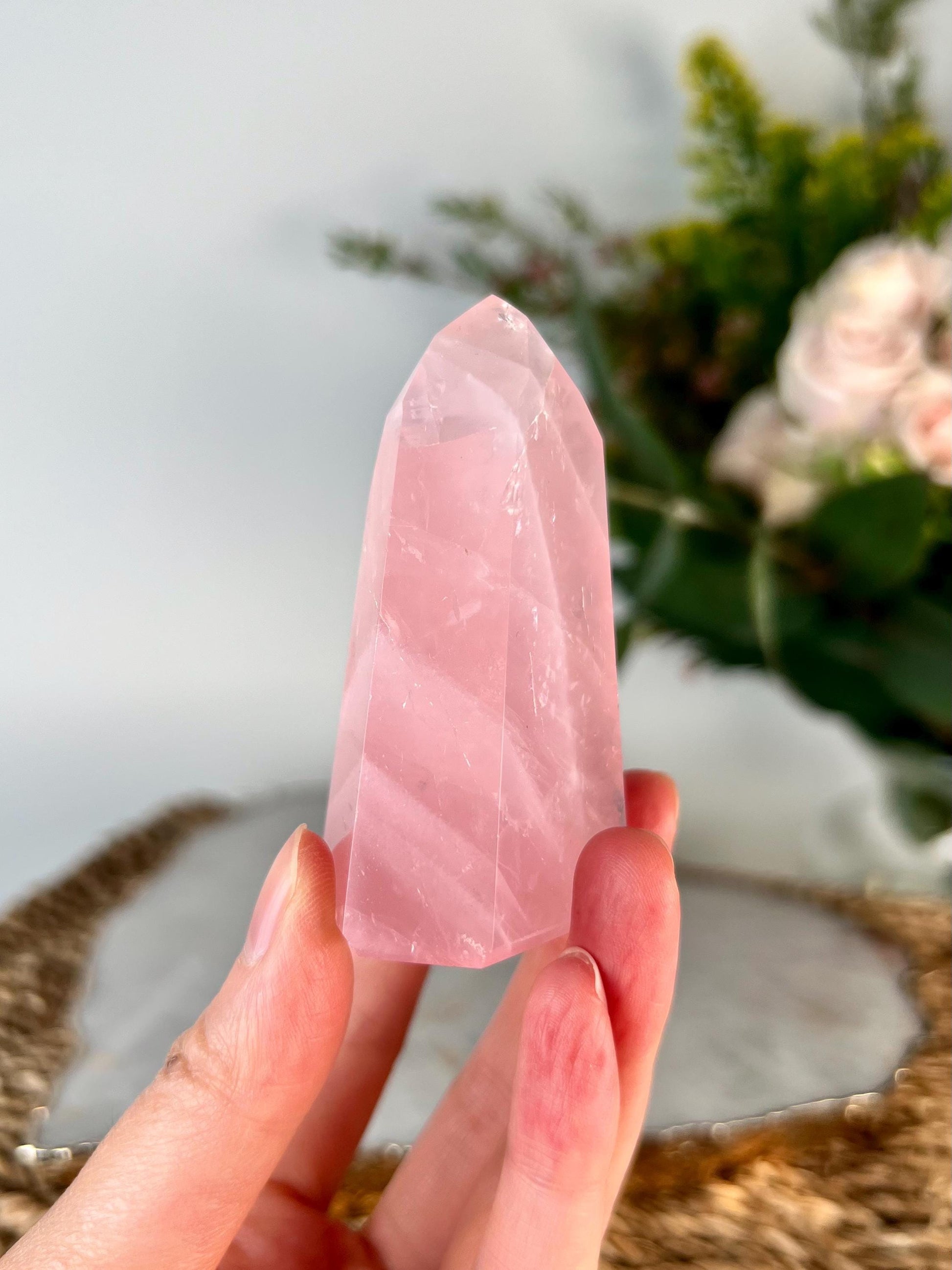 Sourced from Bahia, Brazil, these pieces carry a naturally nurturing and harmonizing frequency. The tower shape is intentional: it channels energy upward, making this crystal a potent tool for amplifying affirmations, supporting spiritual growth, and creating a beacon of love energy in your space.