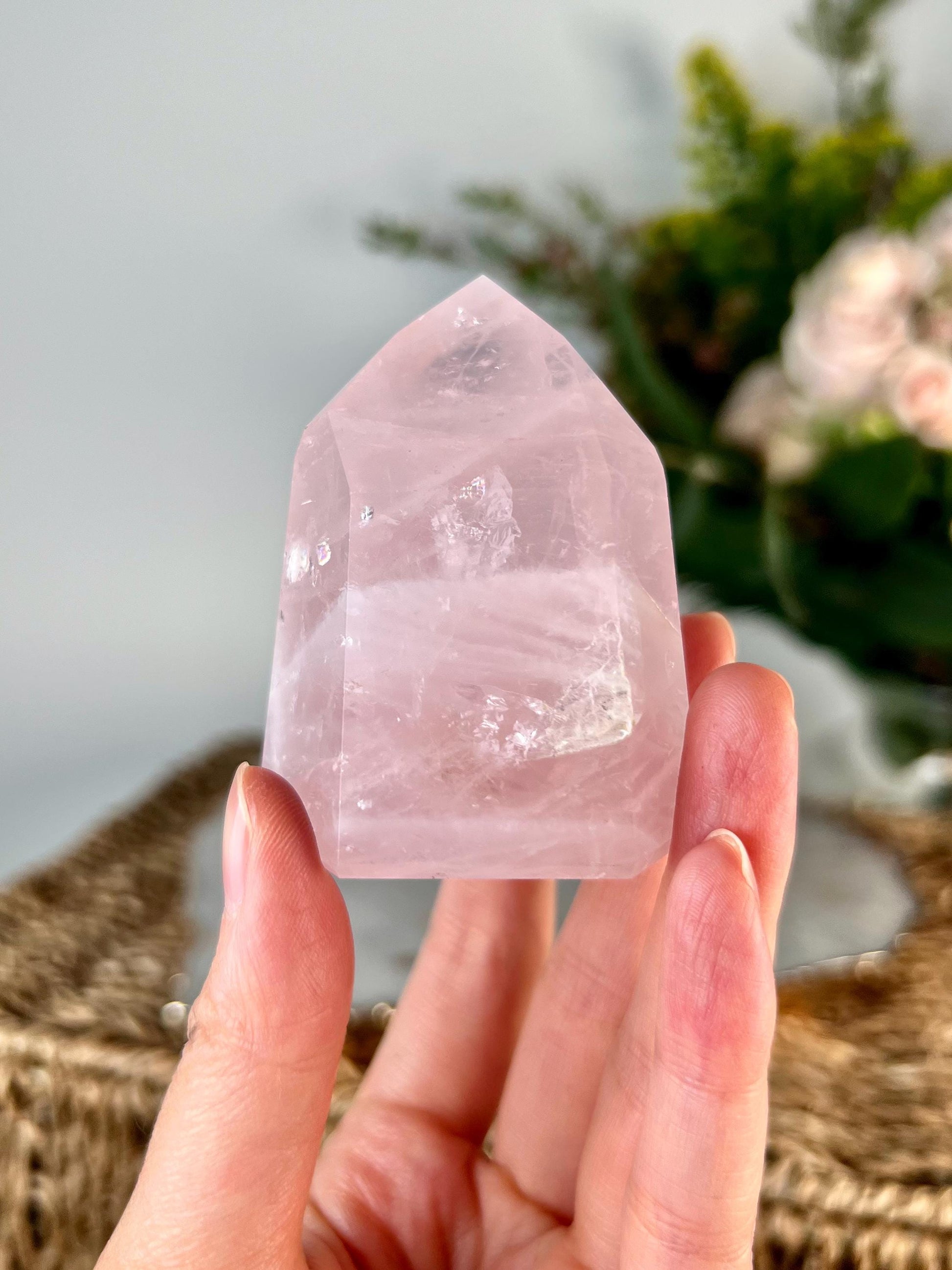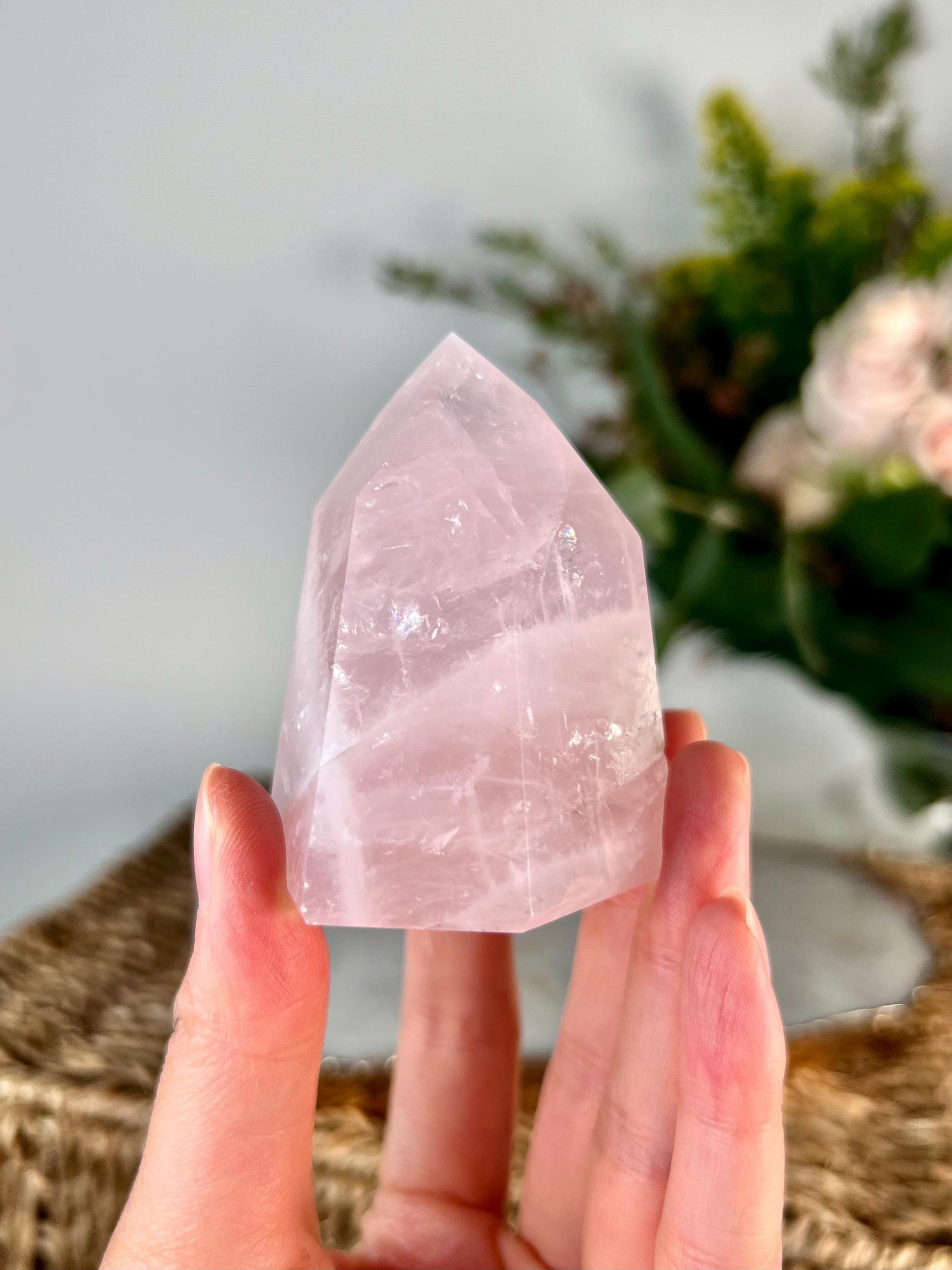 Sourced from Bahia, Brazil, these pieces carry a naturally nurturing and harmonizing frequency. The tower shape is intentional: it channels energy upward, making this crystal a potent tool for amplifying affirmations, supporting spiritual growth, and creating a beacon of love energy in your space.