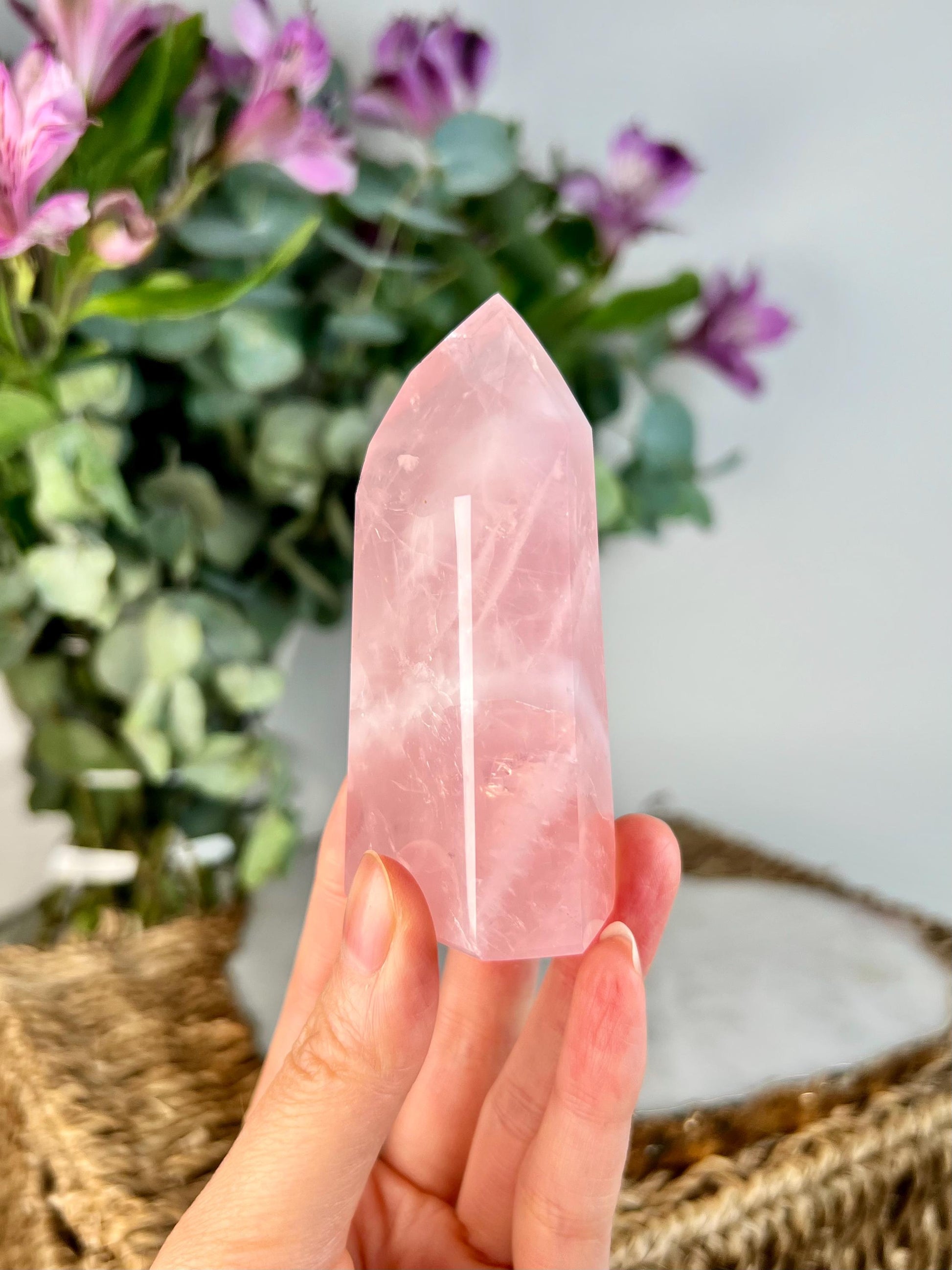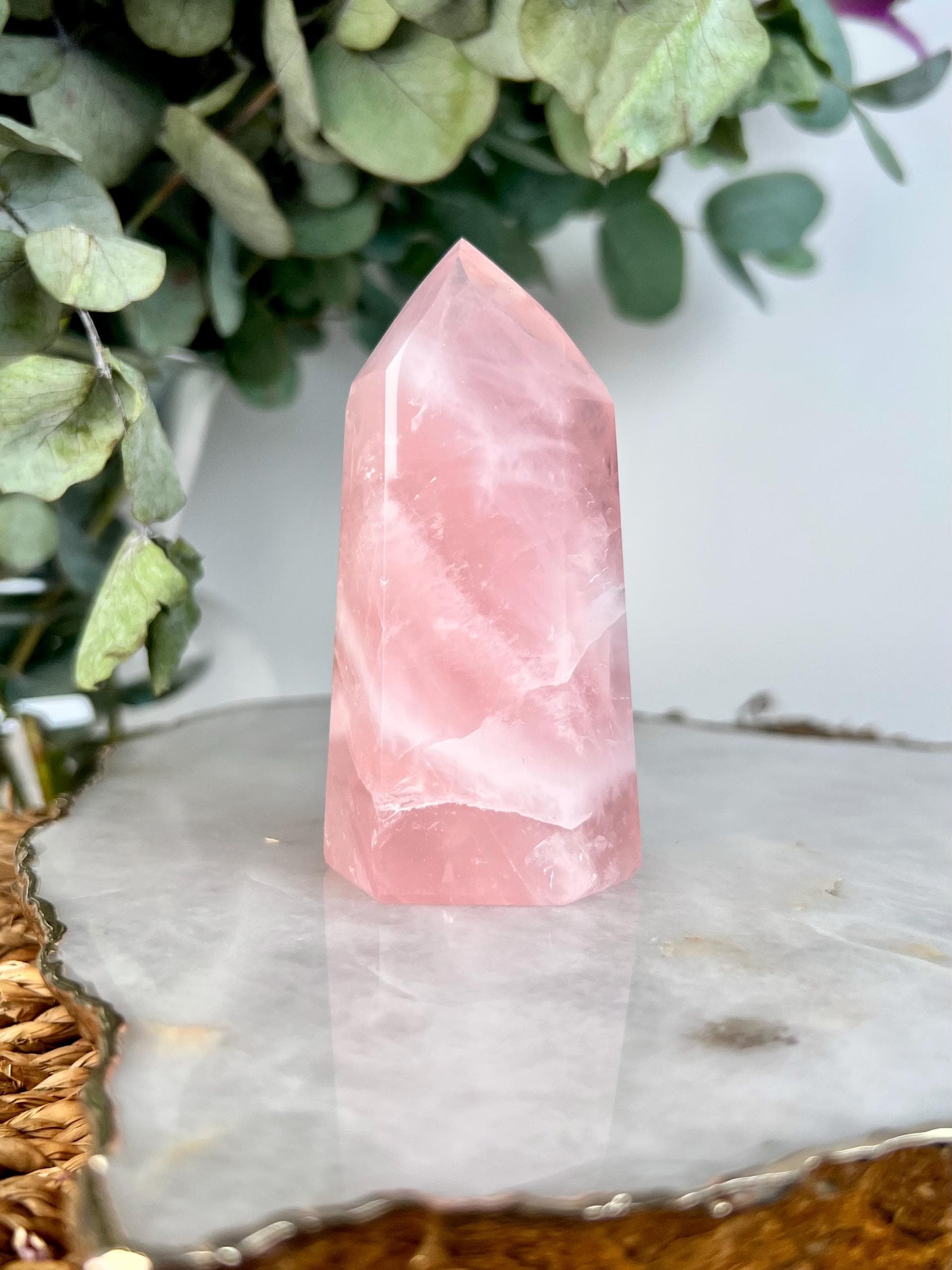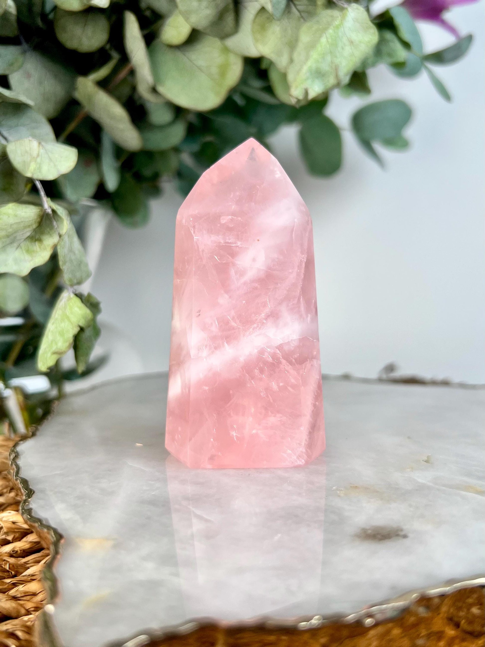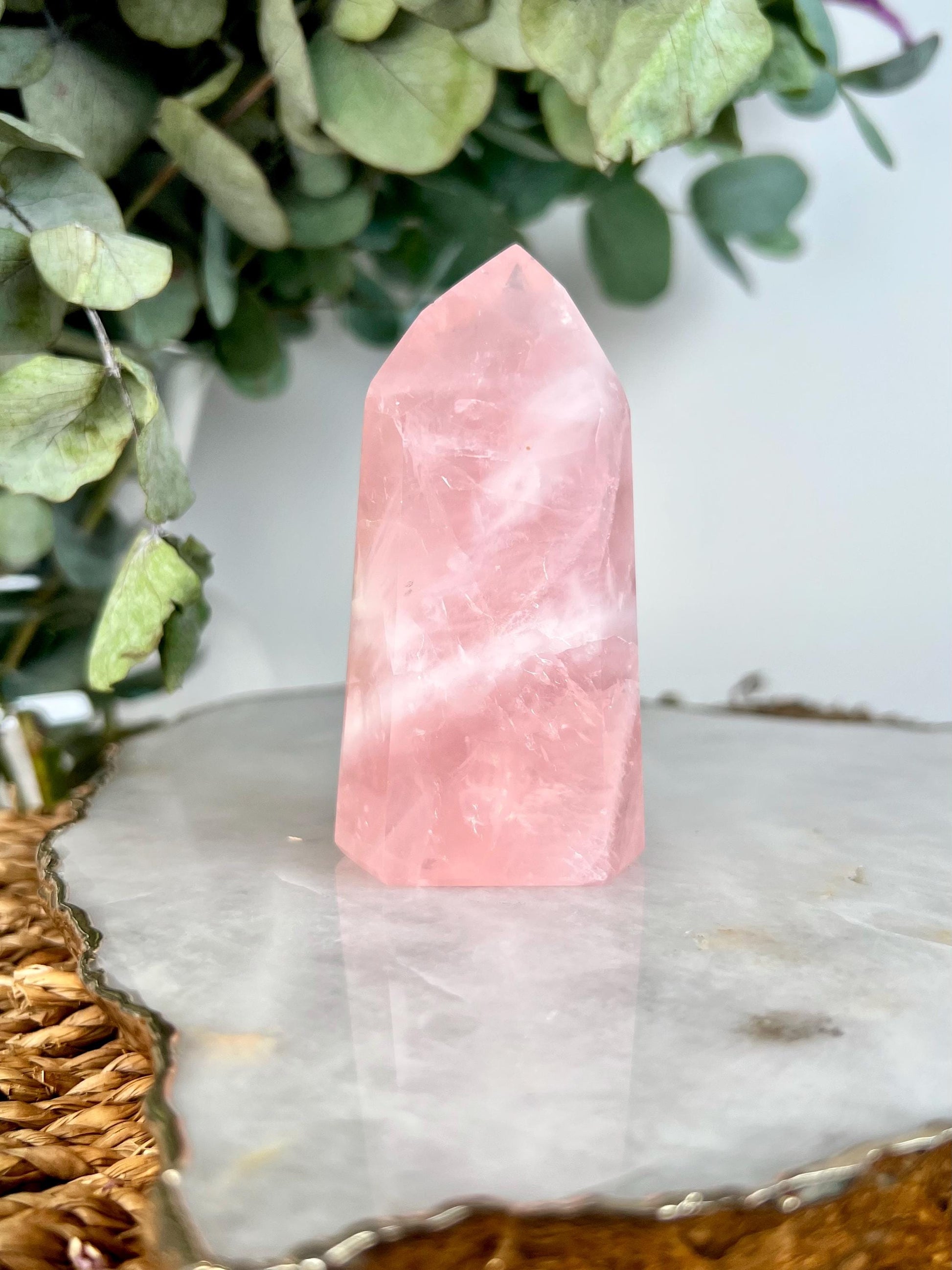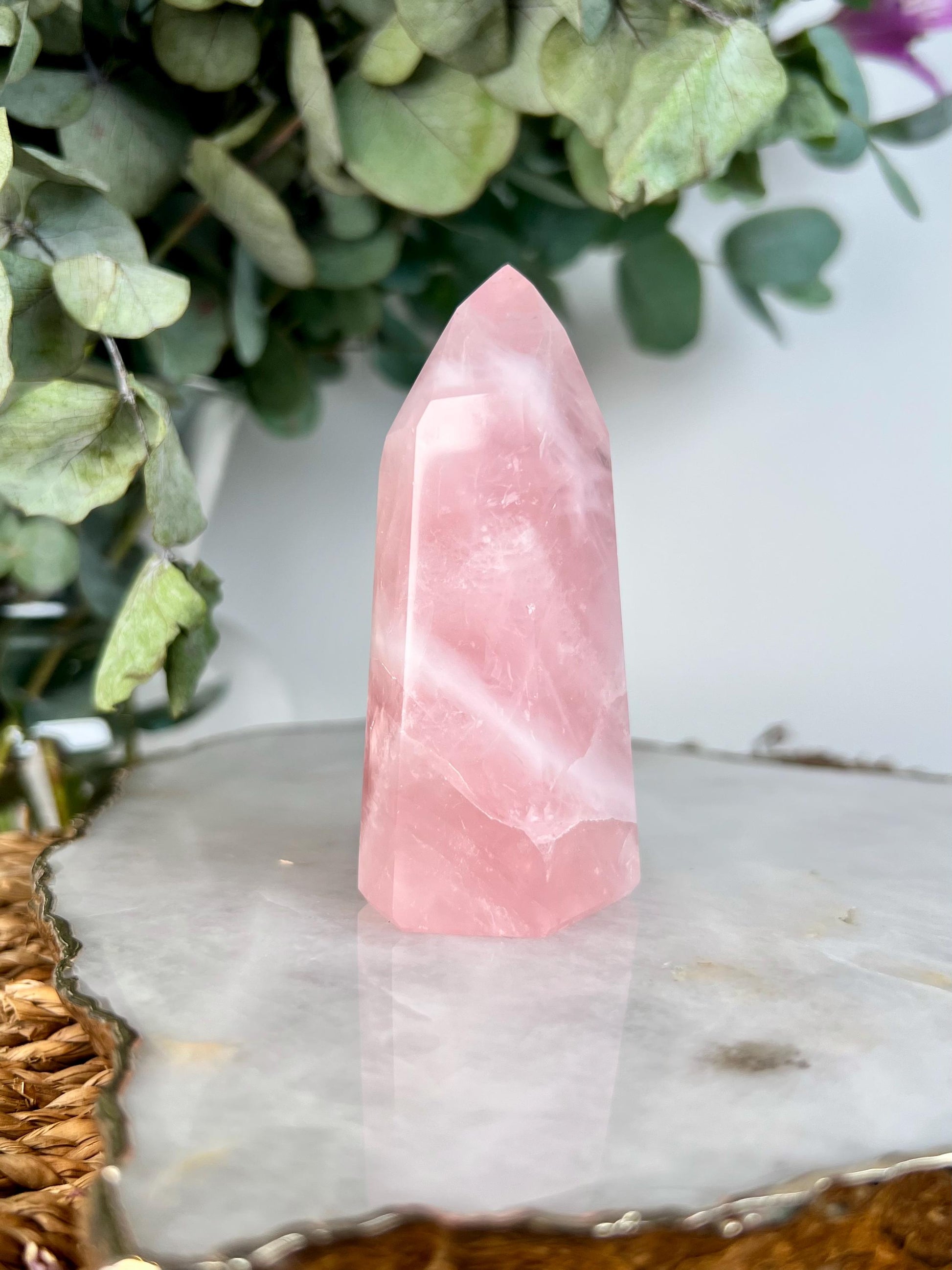 Sourced from Bahia, Brazil, these pieces carry a naturally nurturing and harmonizing frequency. The tower shape is intentional: it channels energy upward, making this crystal a potent tool for amplifying affirmations, supporting spiritual growth, and creating a beacon of love energy in your space.