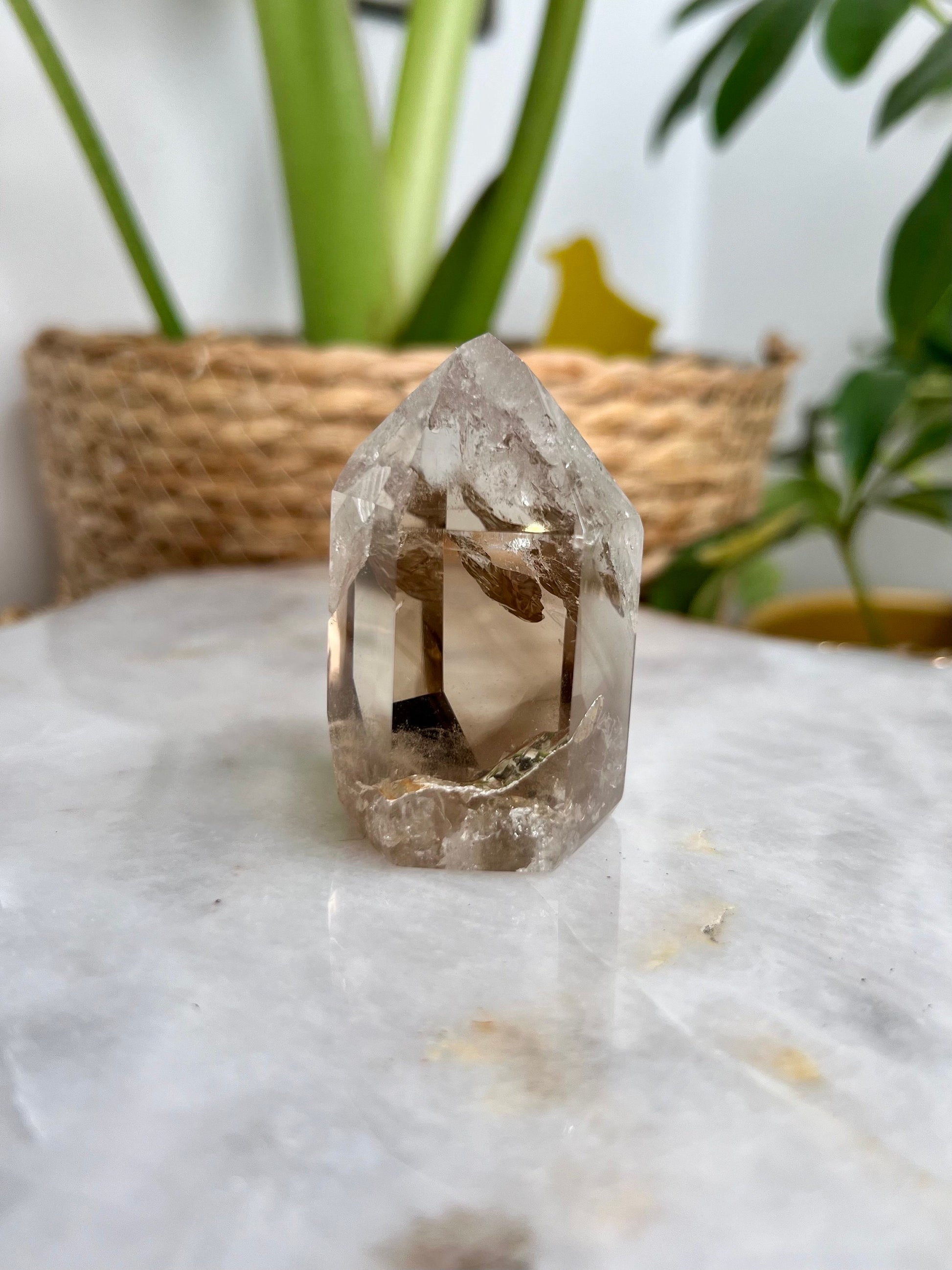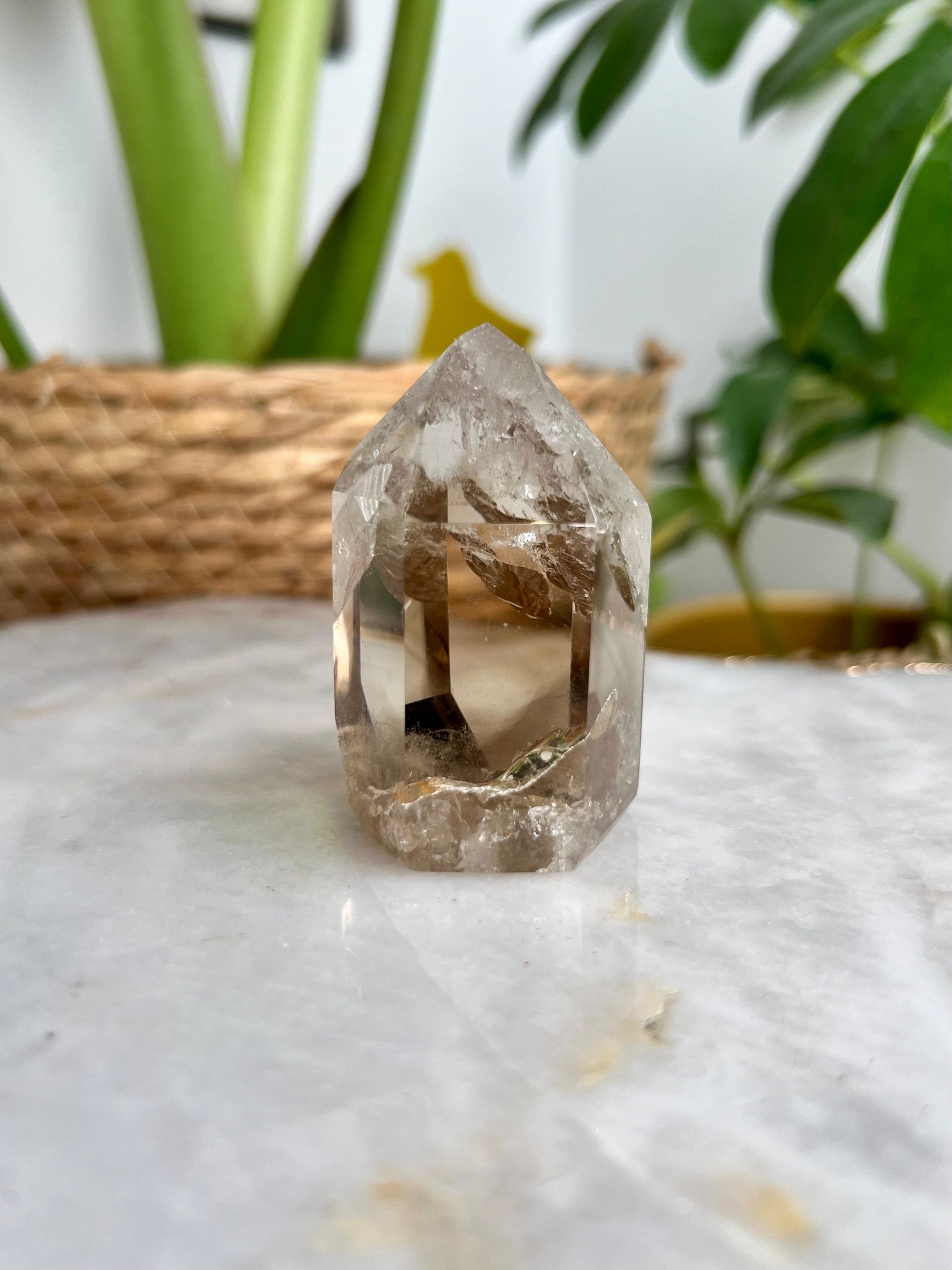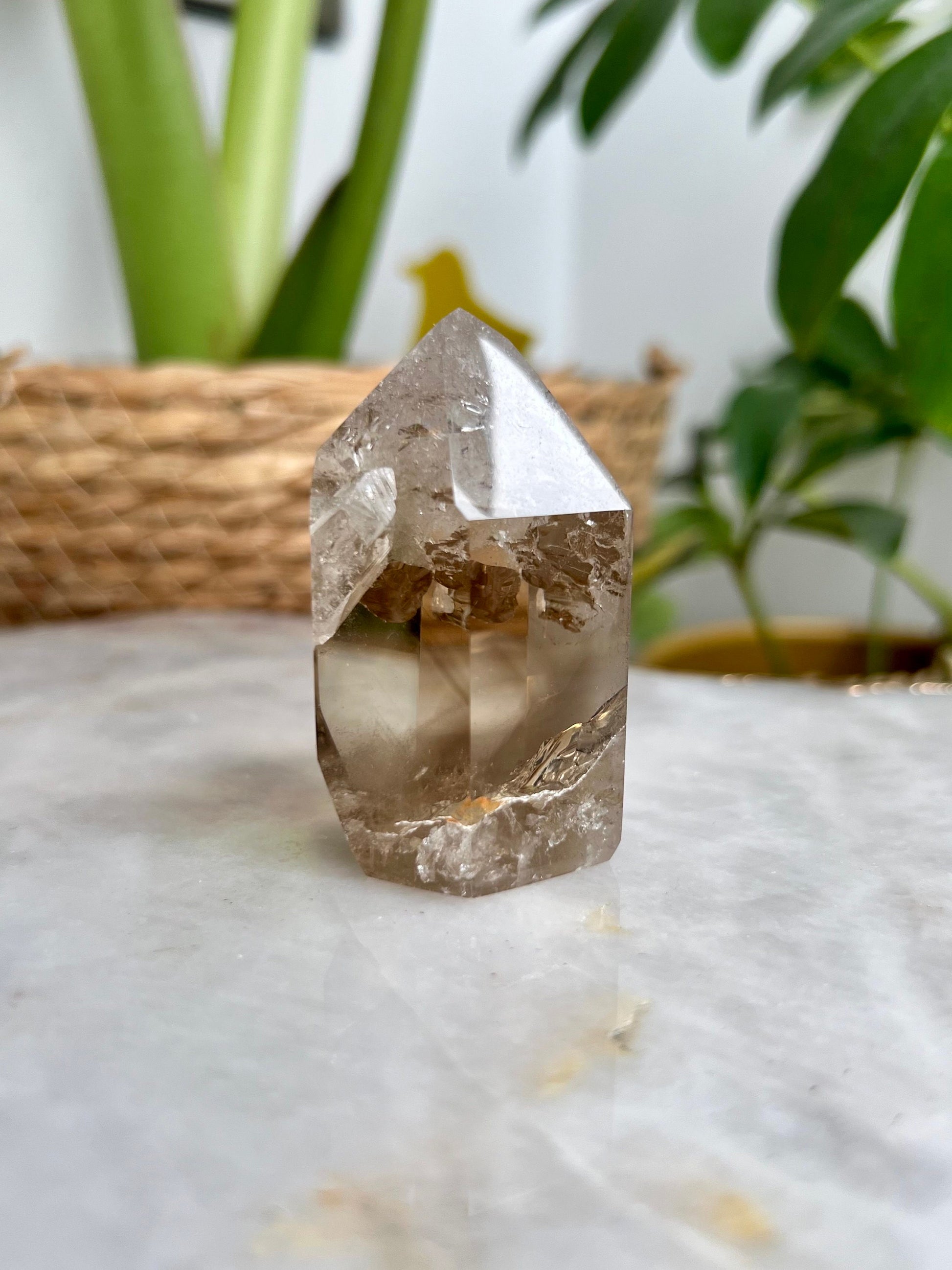 Grade AA Natural Smoky Penetration Quartz Tower with Phantom - Manifestation and Healing Crystal MFH12, 93g