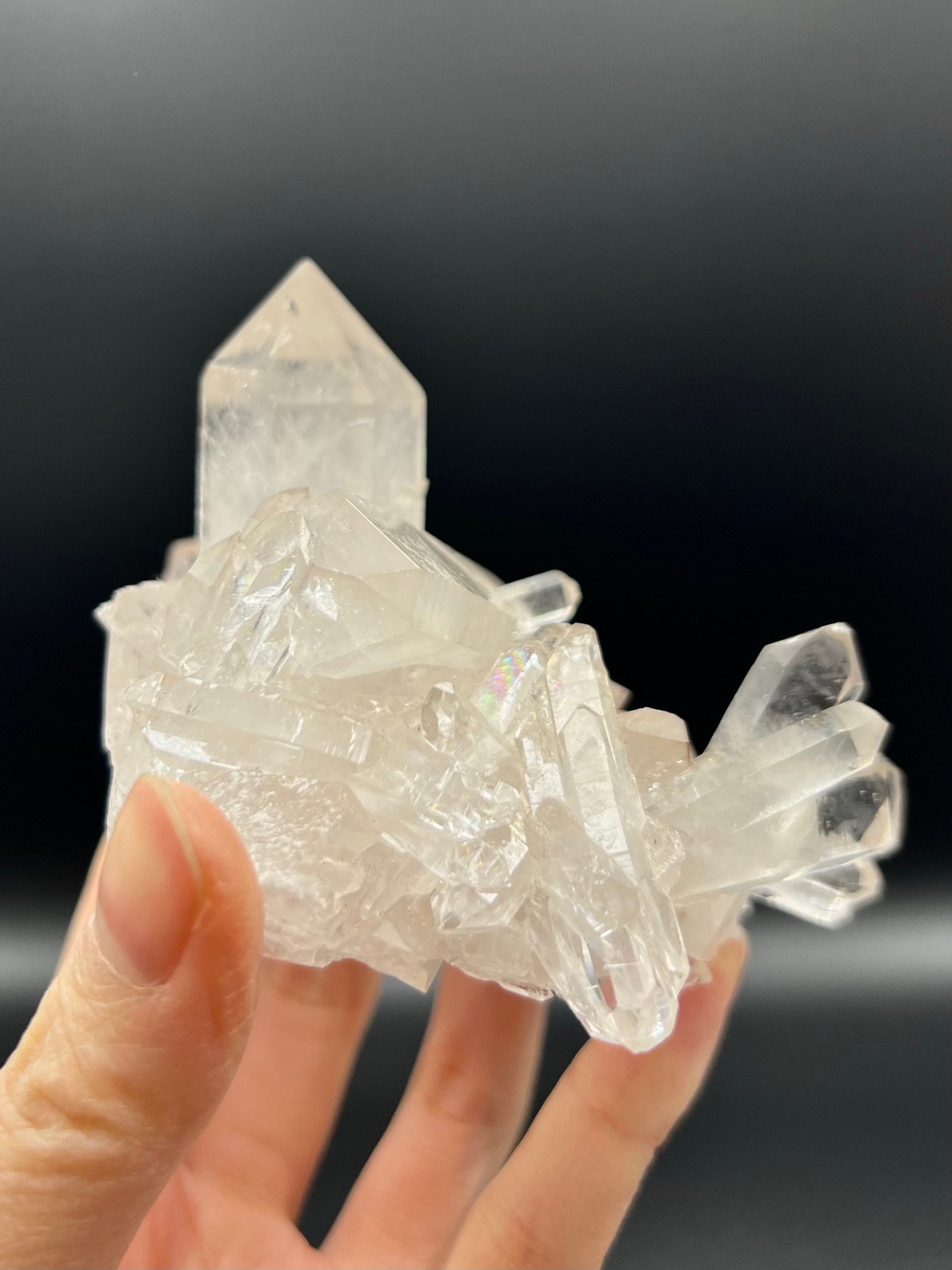 Grade AA+ Quartz Cluster with Double Terminated Point with Inner Child Point, Bridge Quartz & Rainbows, All-in-One Healing Crystal 233g EC02