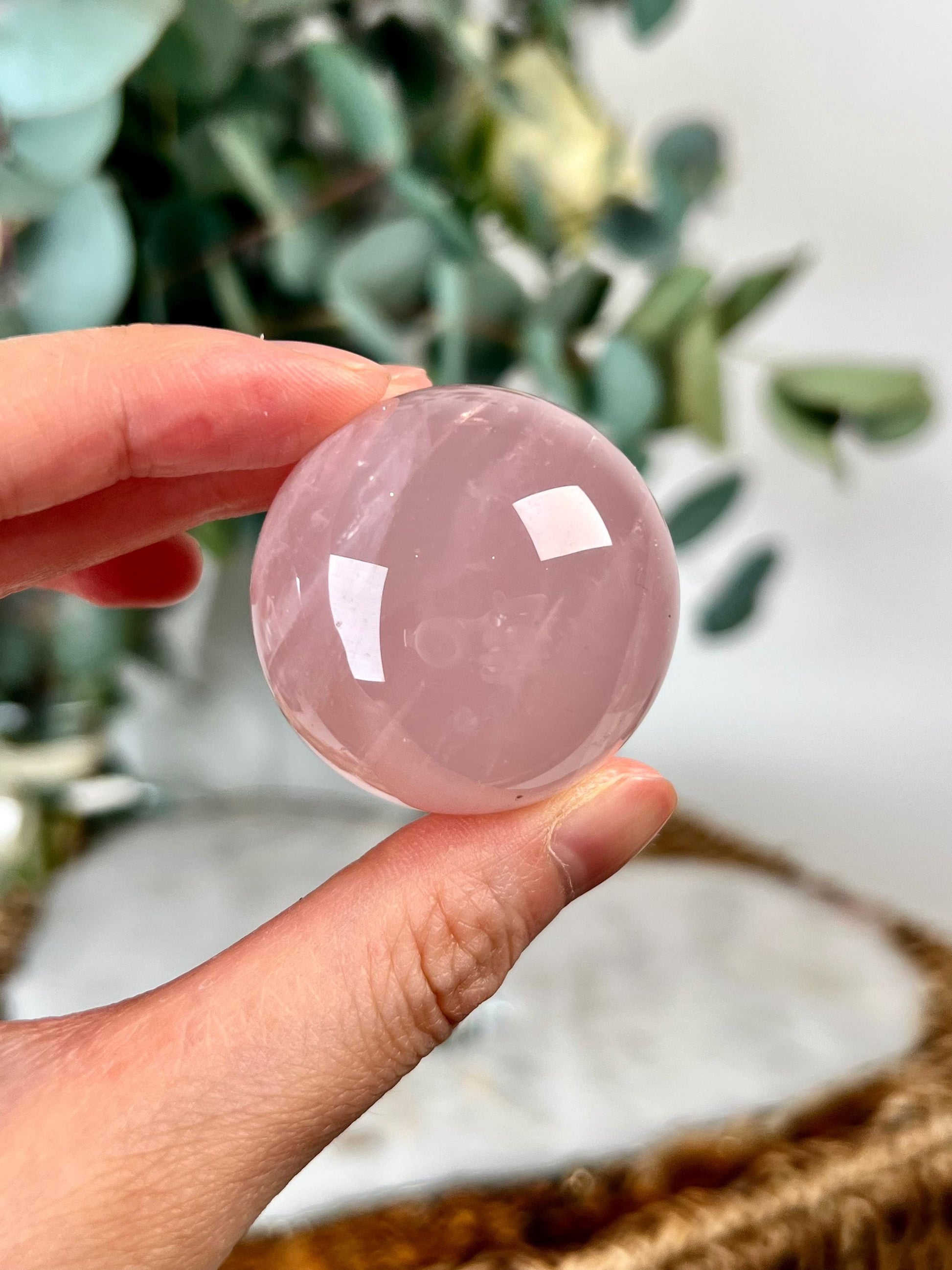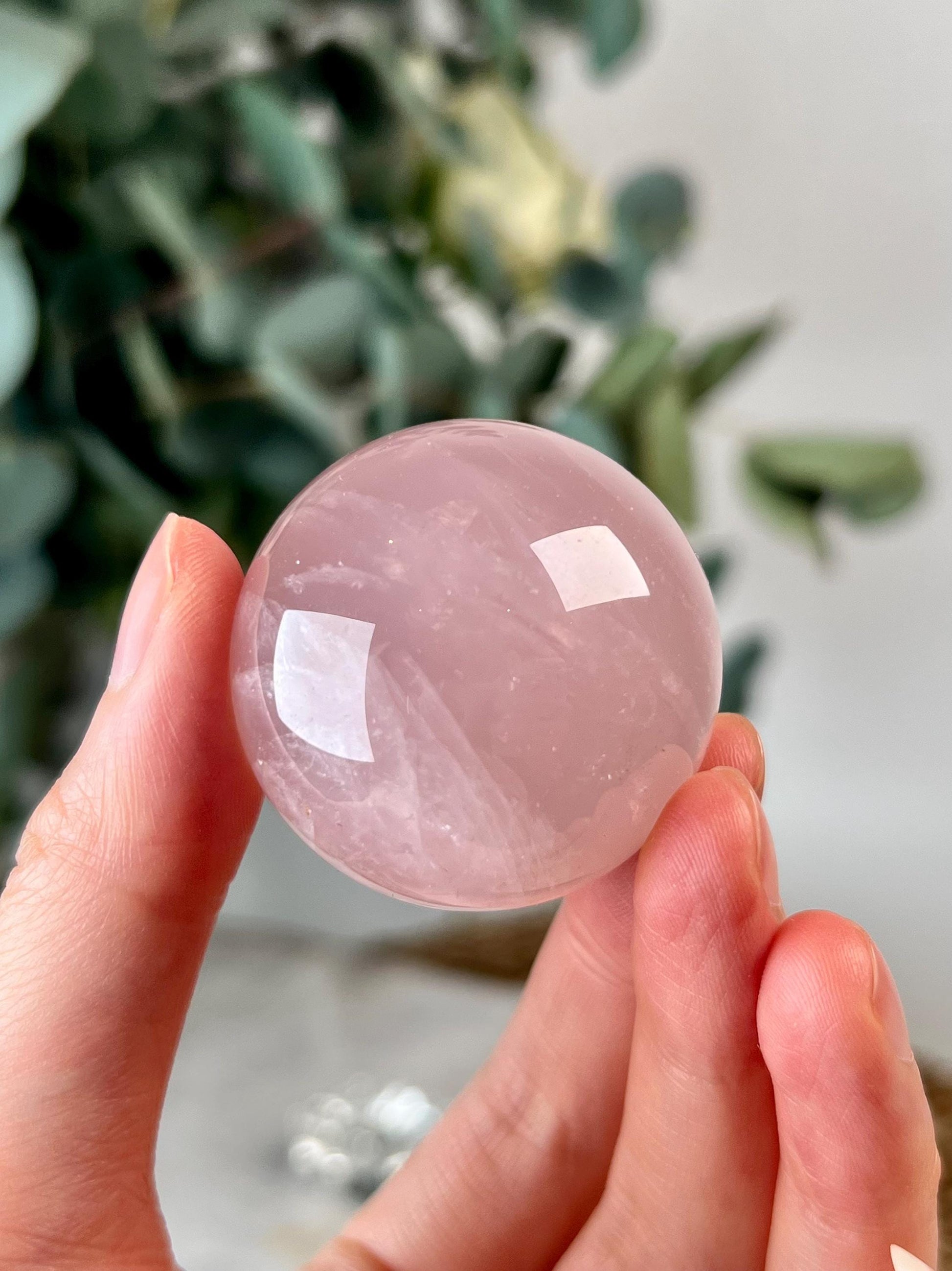 💎 Grade AA Rose Quartz Sphere - perfectly polished with beautiful natural rainbows inside