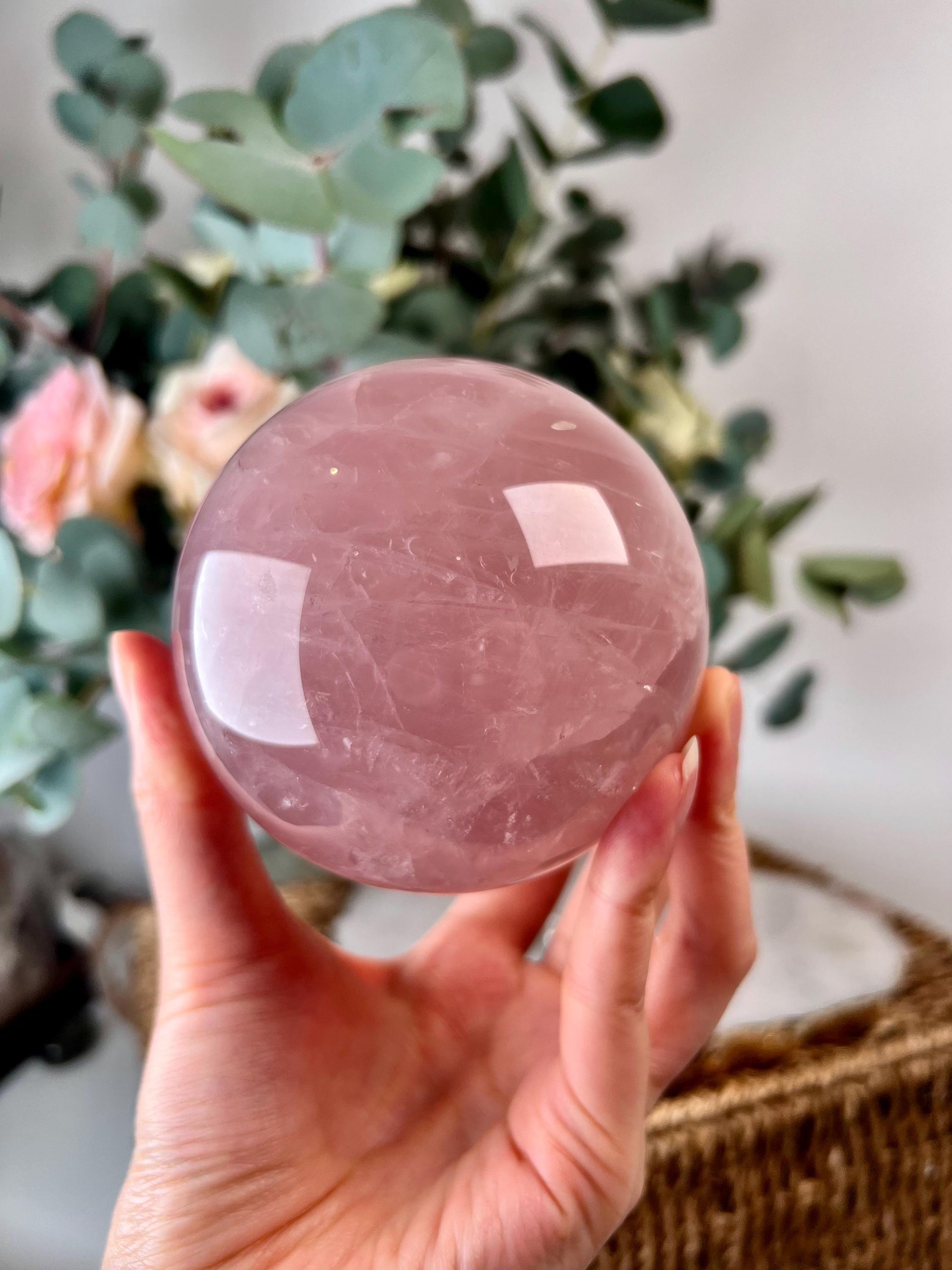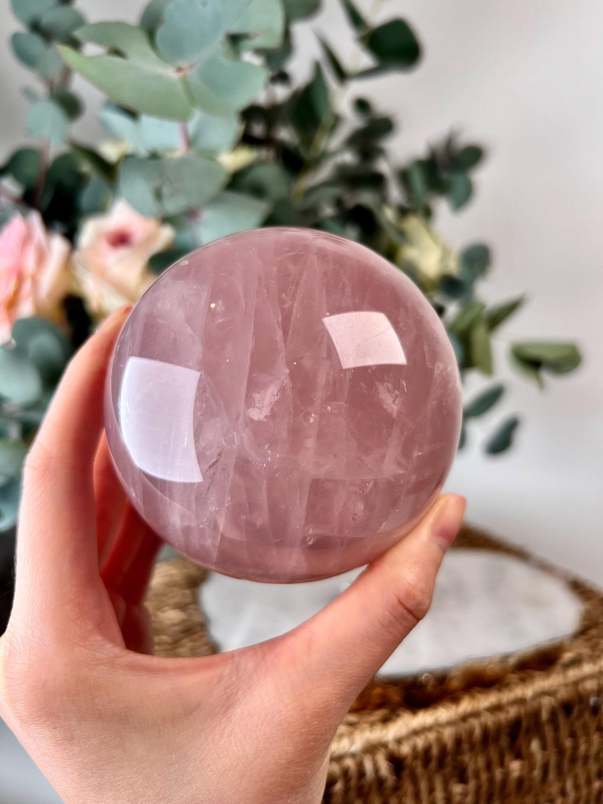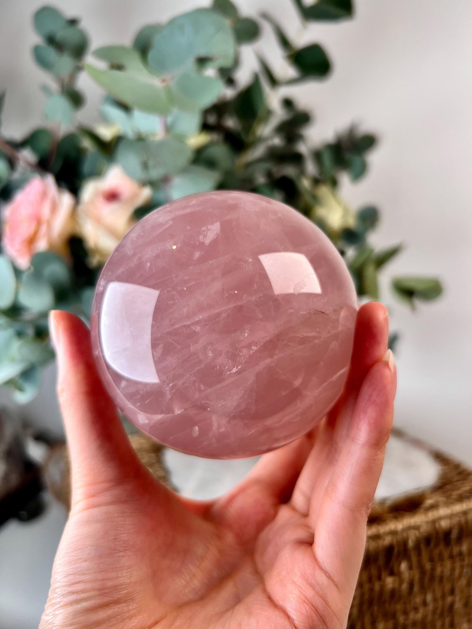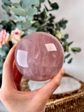 💎 Grade AA Rose Quartz Sphere - perfectly polished with beautiful natural rainbows inside