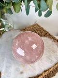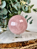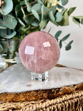 Grade AA Rose Quartz Sphere with Starlight and Rainbows |Heart Healing Crystal on Glass Stand | From Madagascar 920g - RSQ08