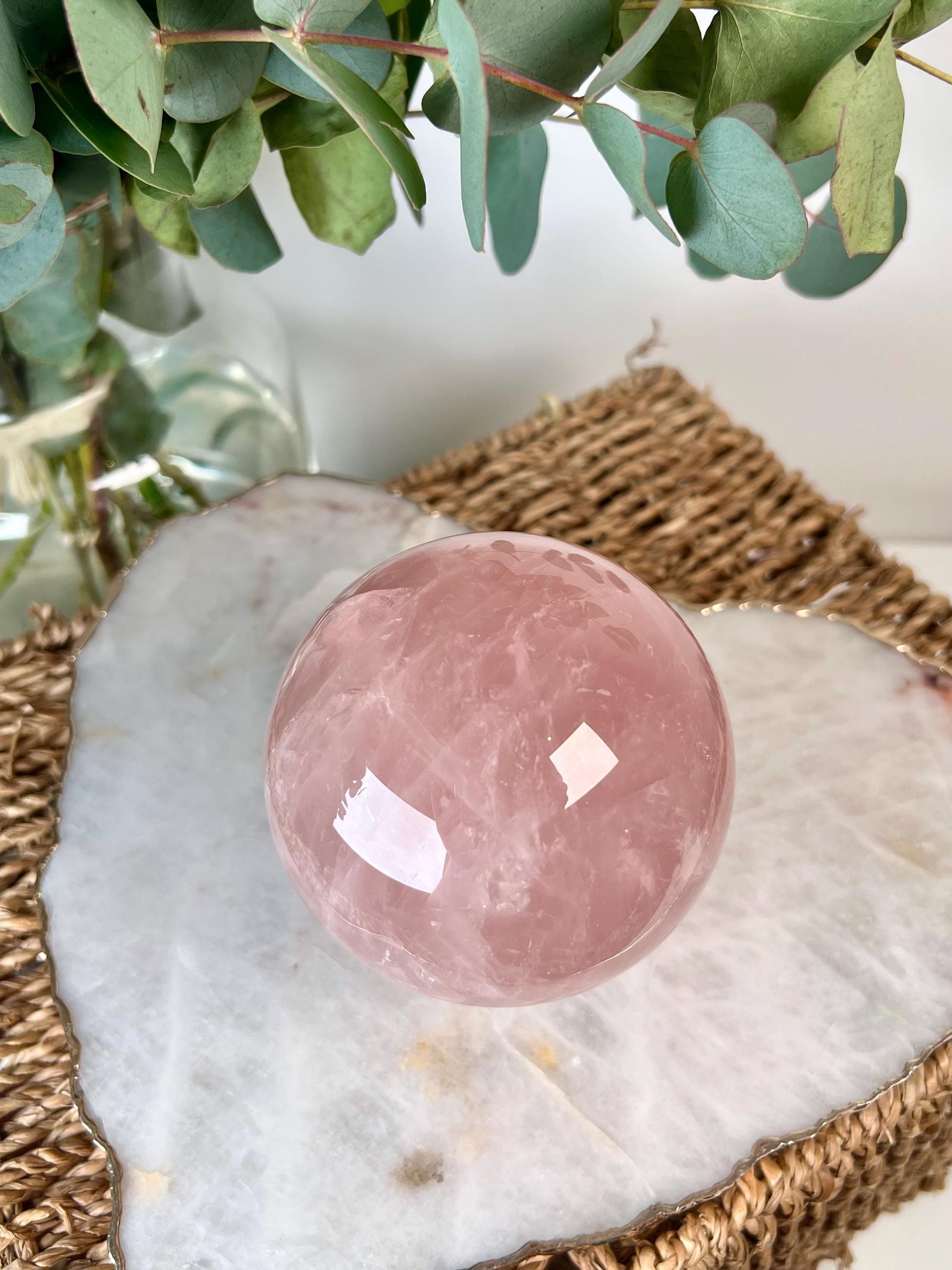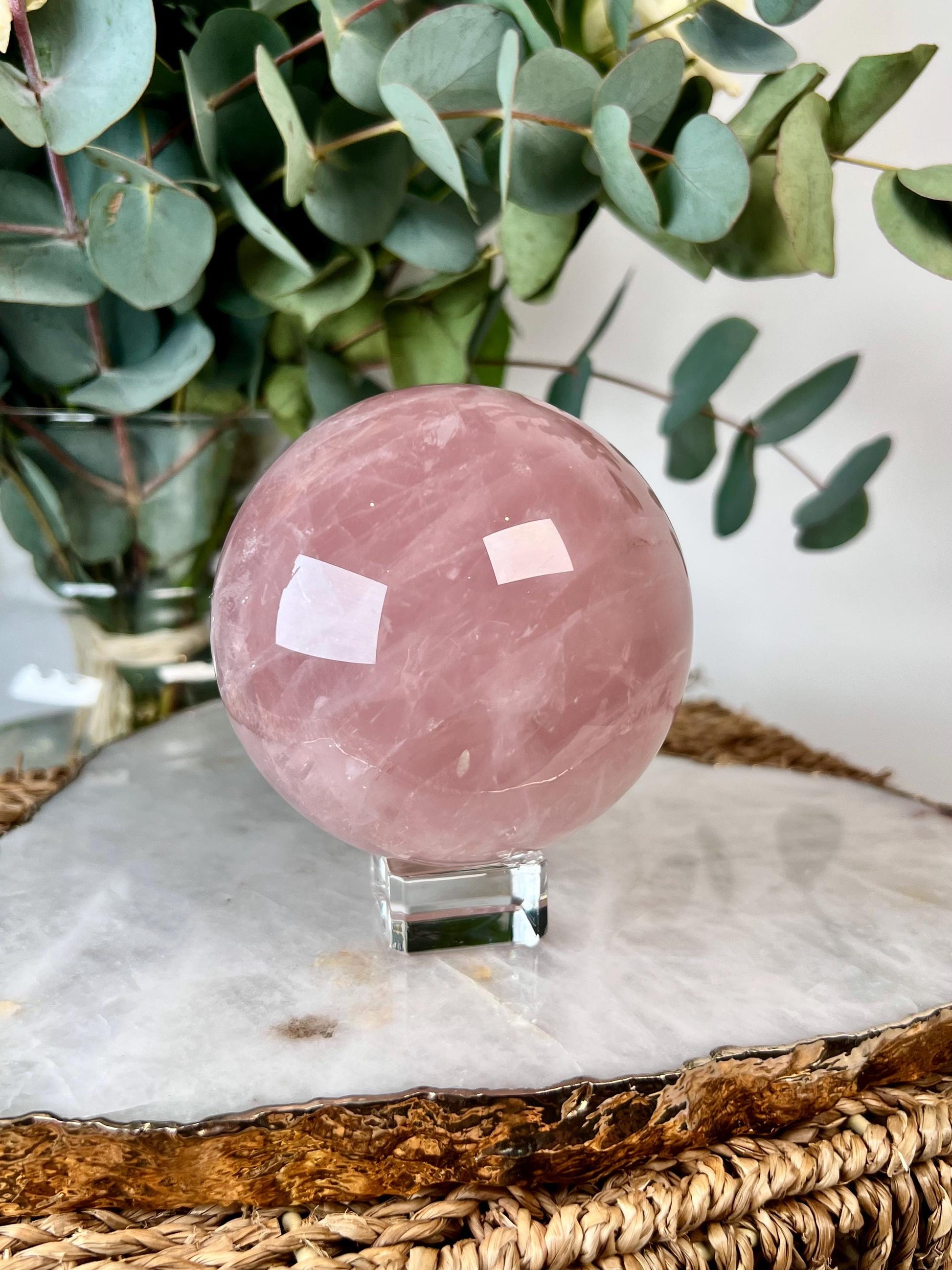 Your Rose Quartz Sphere will arrive on a glass display stand, energetically cleansed and lovingly wrapped-ready to gift or display in your sacred space.