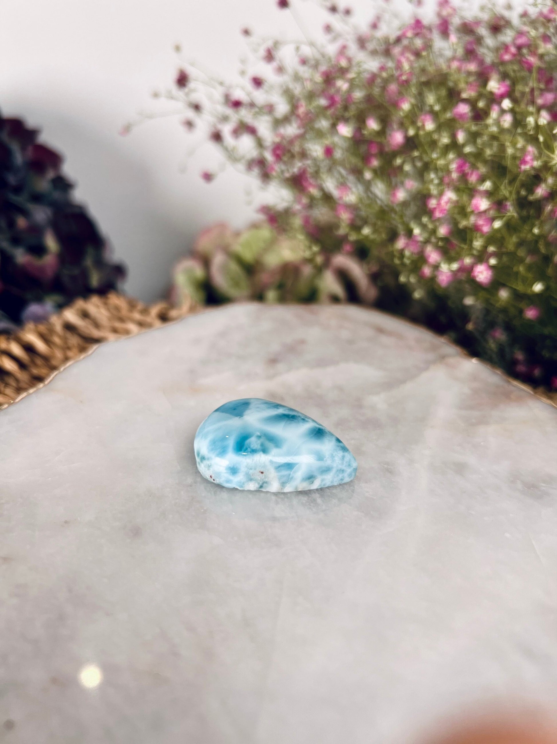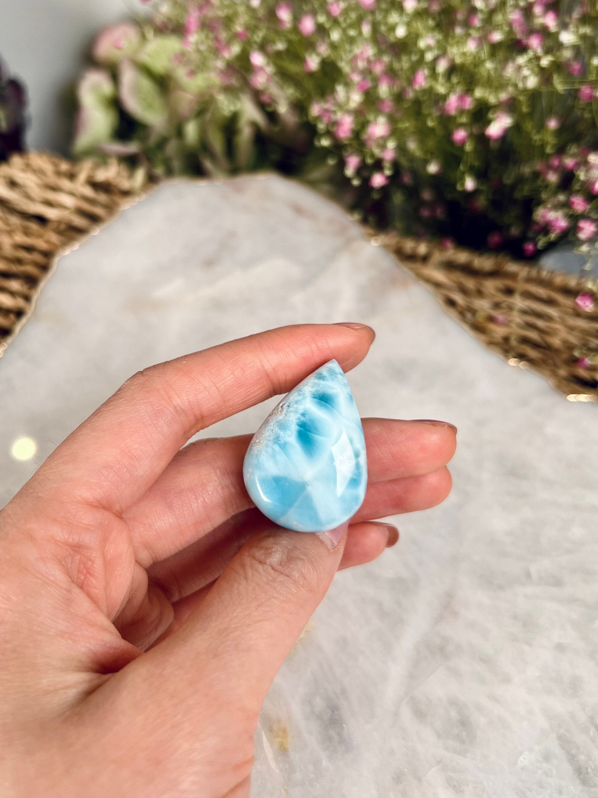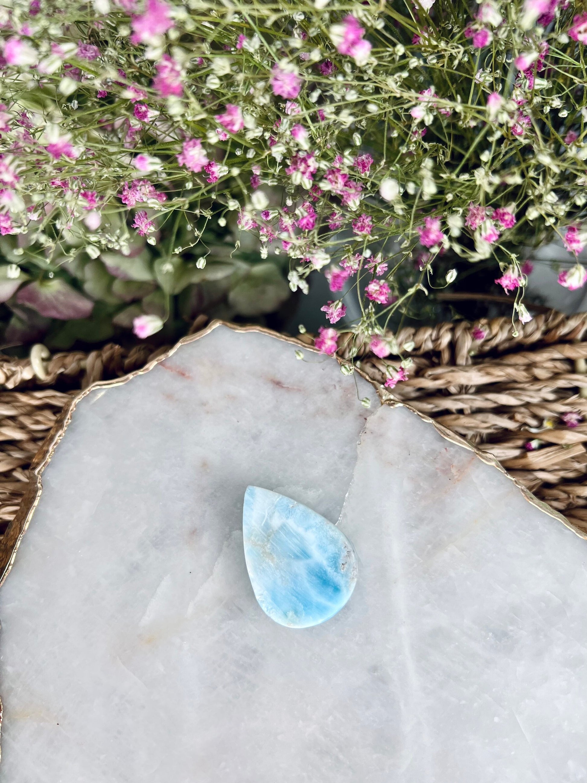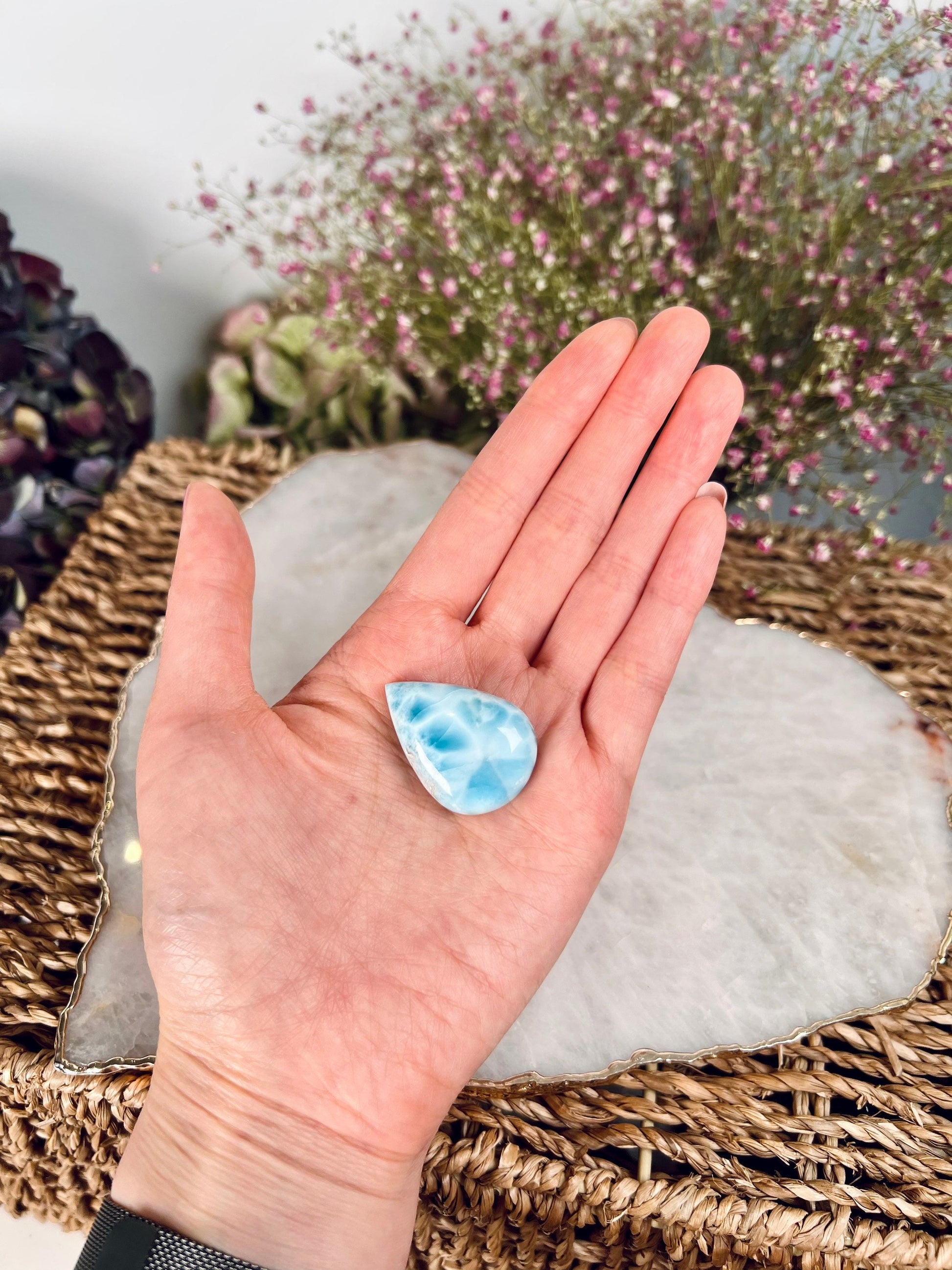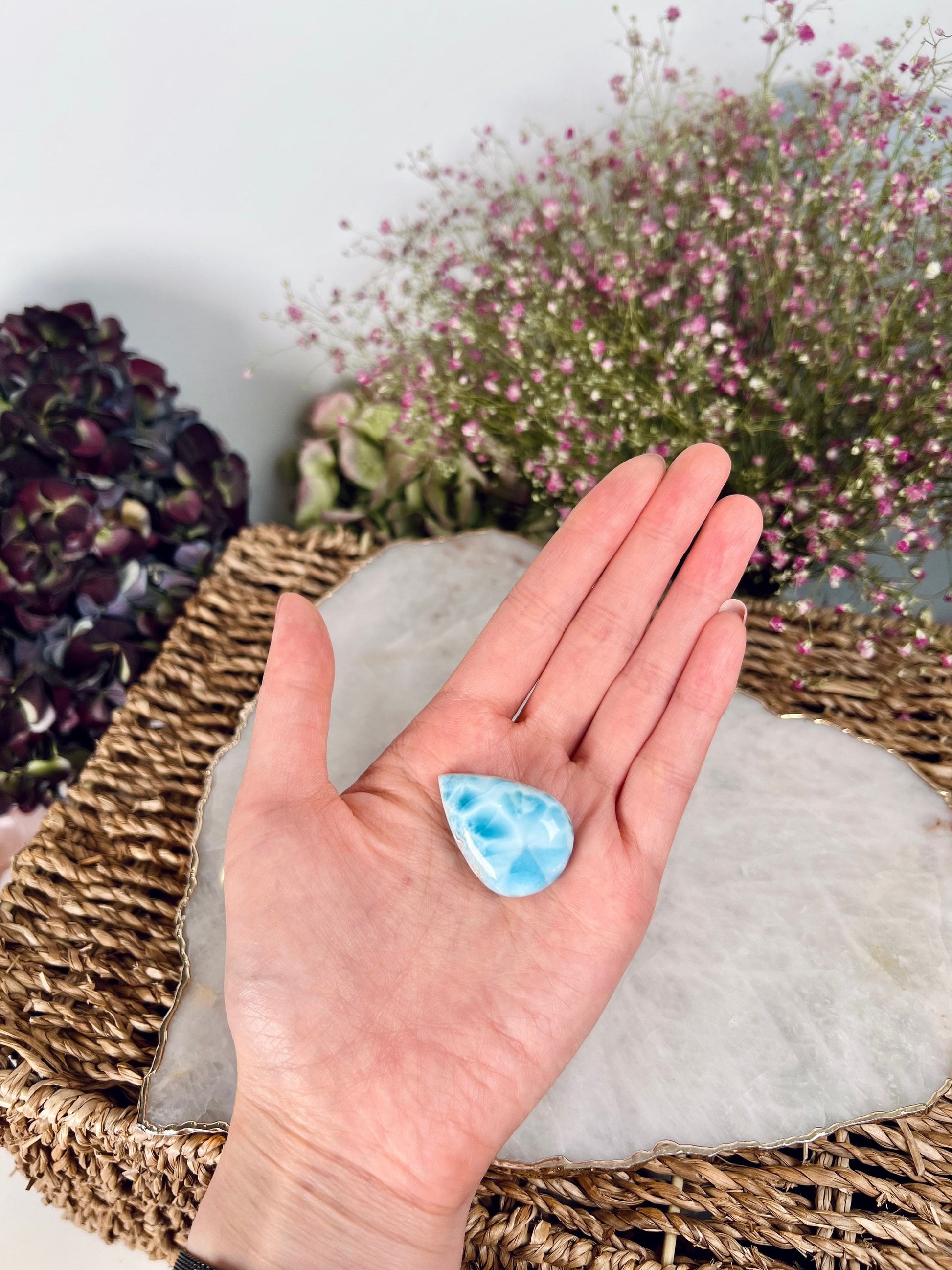 Grade AAA 100% Natural Larimar Teardrop Cabochon from Dominican Republic, Earth Healing Crystal, Dolphin Stone 14g - LTS 01