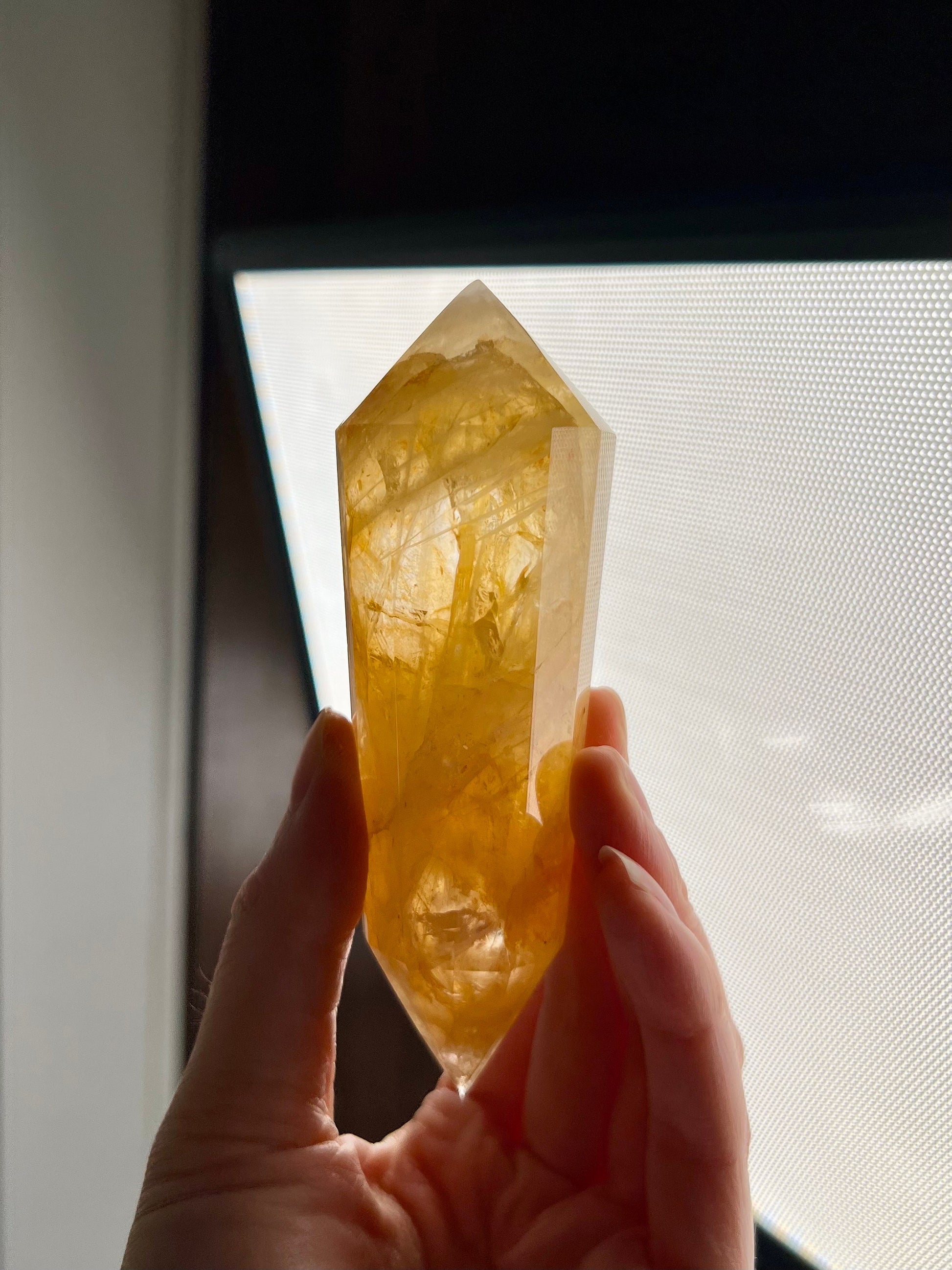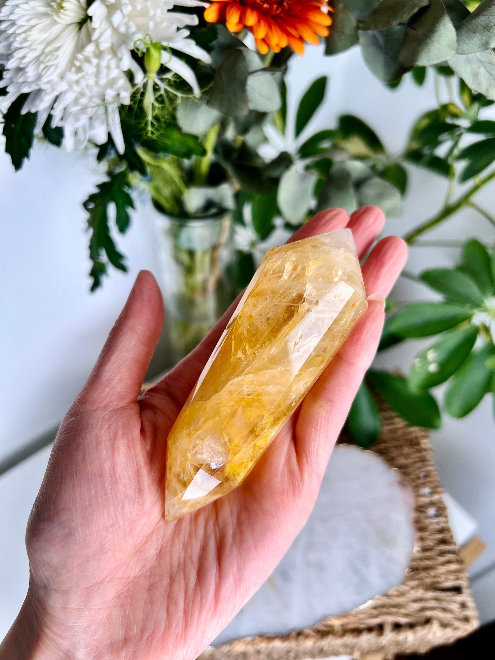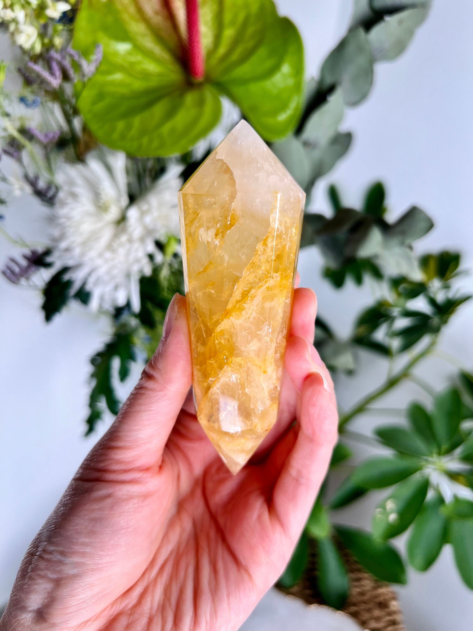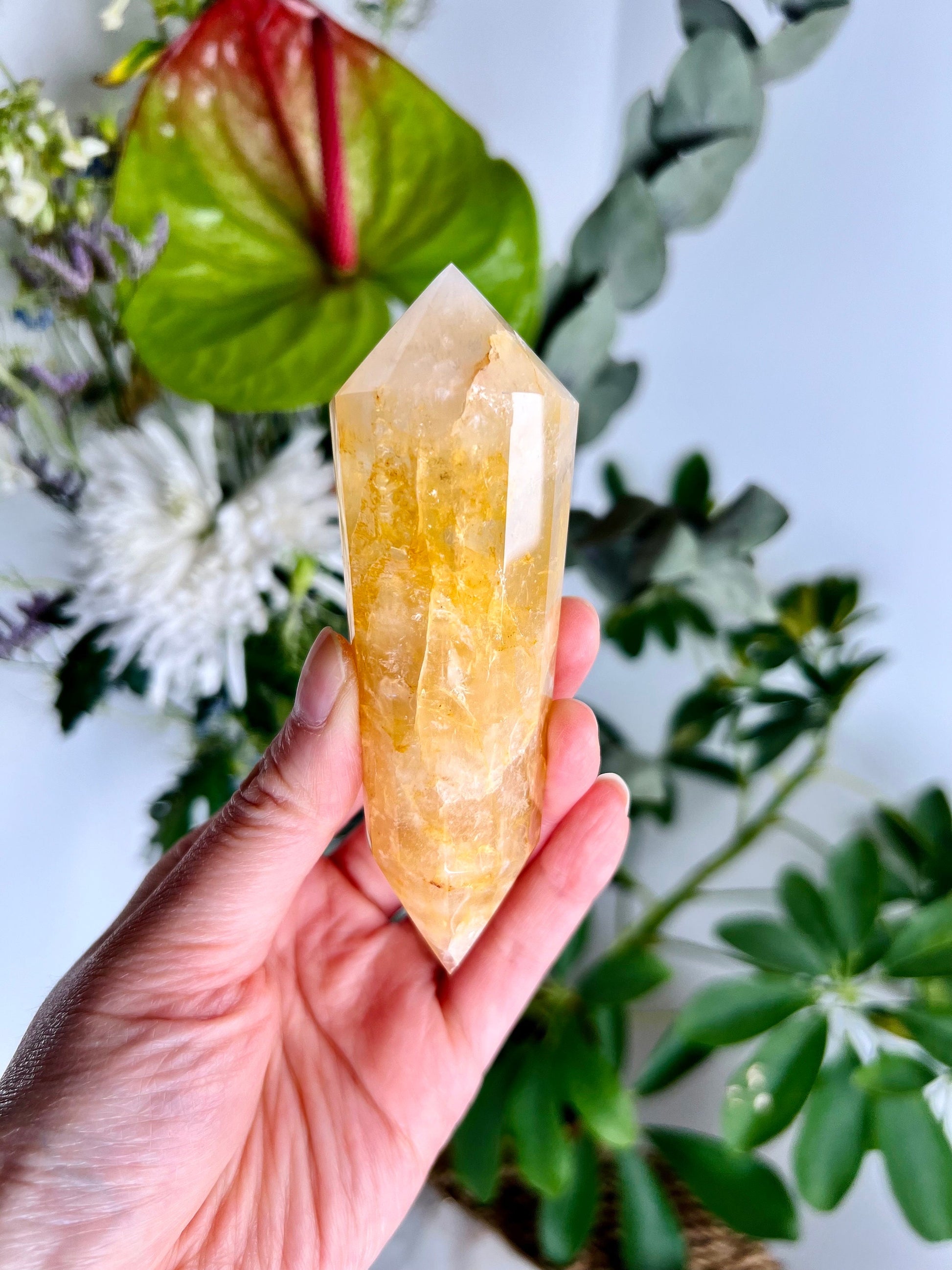 Golden Healer Quartz is sourced from locations worldwide, known for its unique golden inclusions and powerful healing properties. Each wand is ethically sourced and selected for its superior quality and energetic potency.