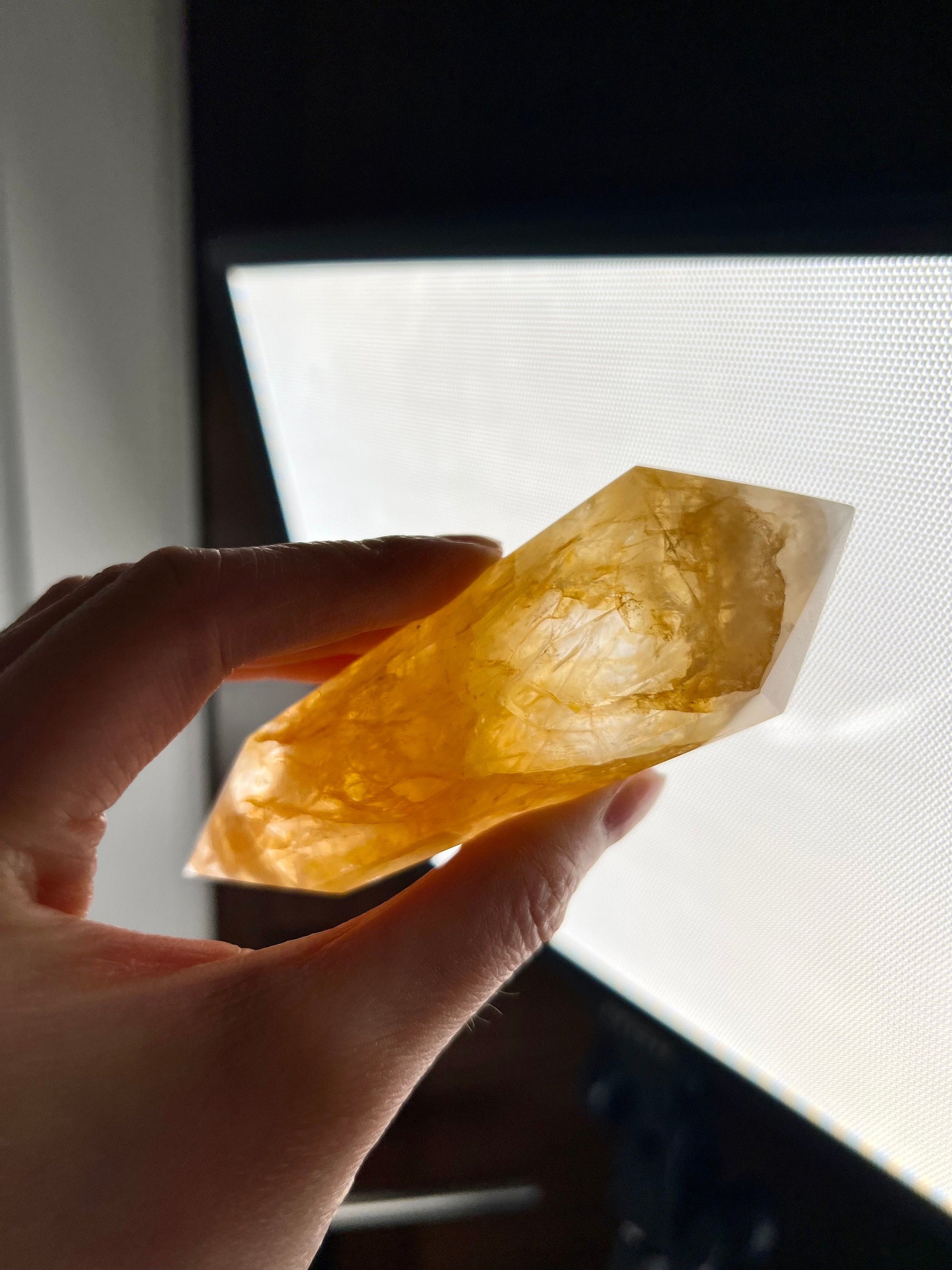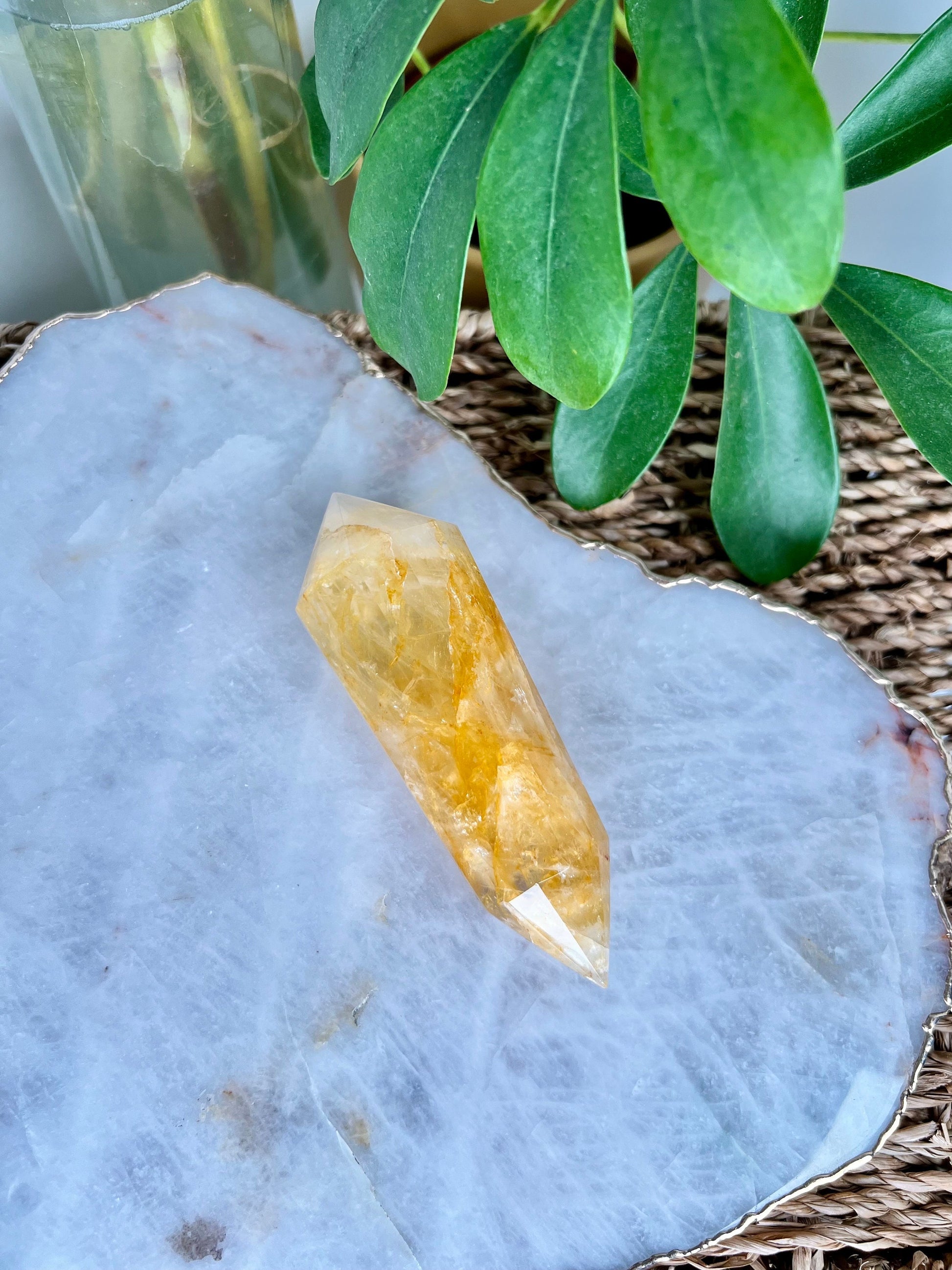 Golden Healer Quartz is known for its ability to facilitate profound healing and energy balance. The 12-sided Vogel wand shape enhances the flow of energy, making it highly effective for clearing blockages, balancing chakras, and promoting overall well-being. The double terminated ends allow energy to flow freely in both directions, enhancing the wand's healing capabilities.
