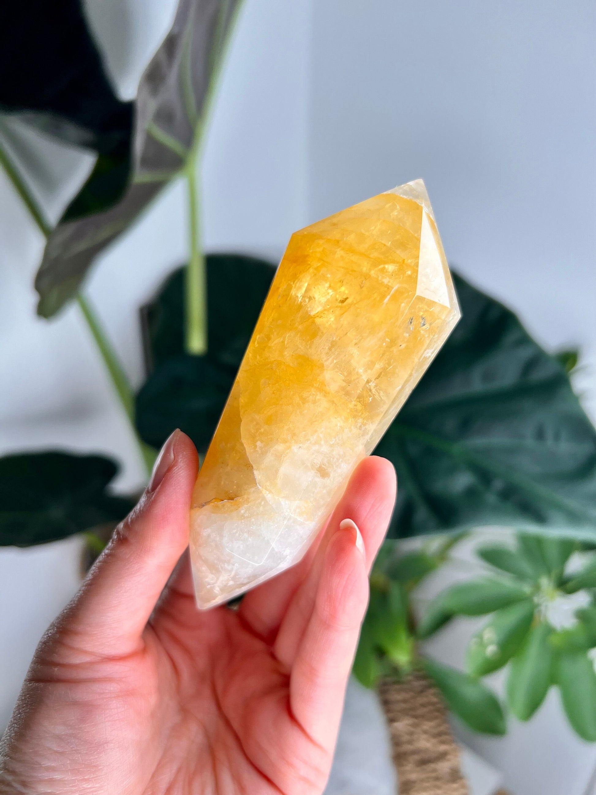 Bring the powerful healing and energy amplification of Golden Healer Quartz into your life with our Grade AAA 12-Sided Double Terminated Vogel Wand. Order now and experience the transformative power of this extraordinary crystal!