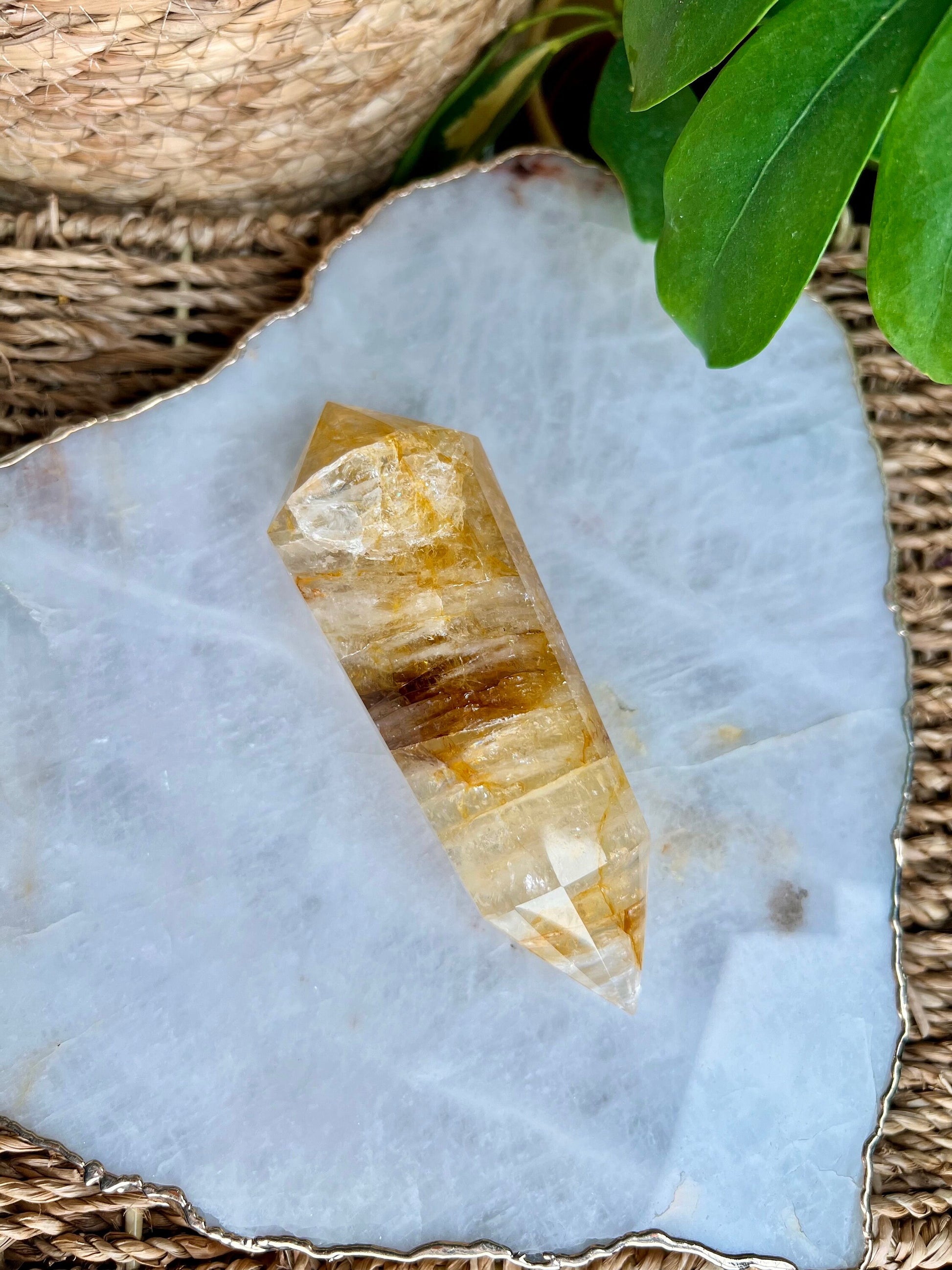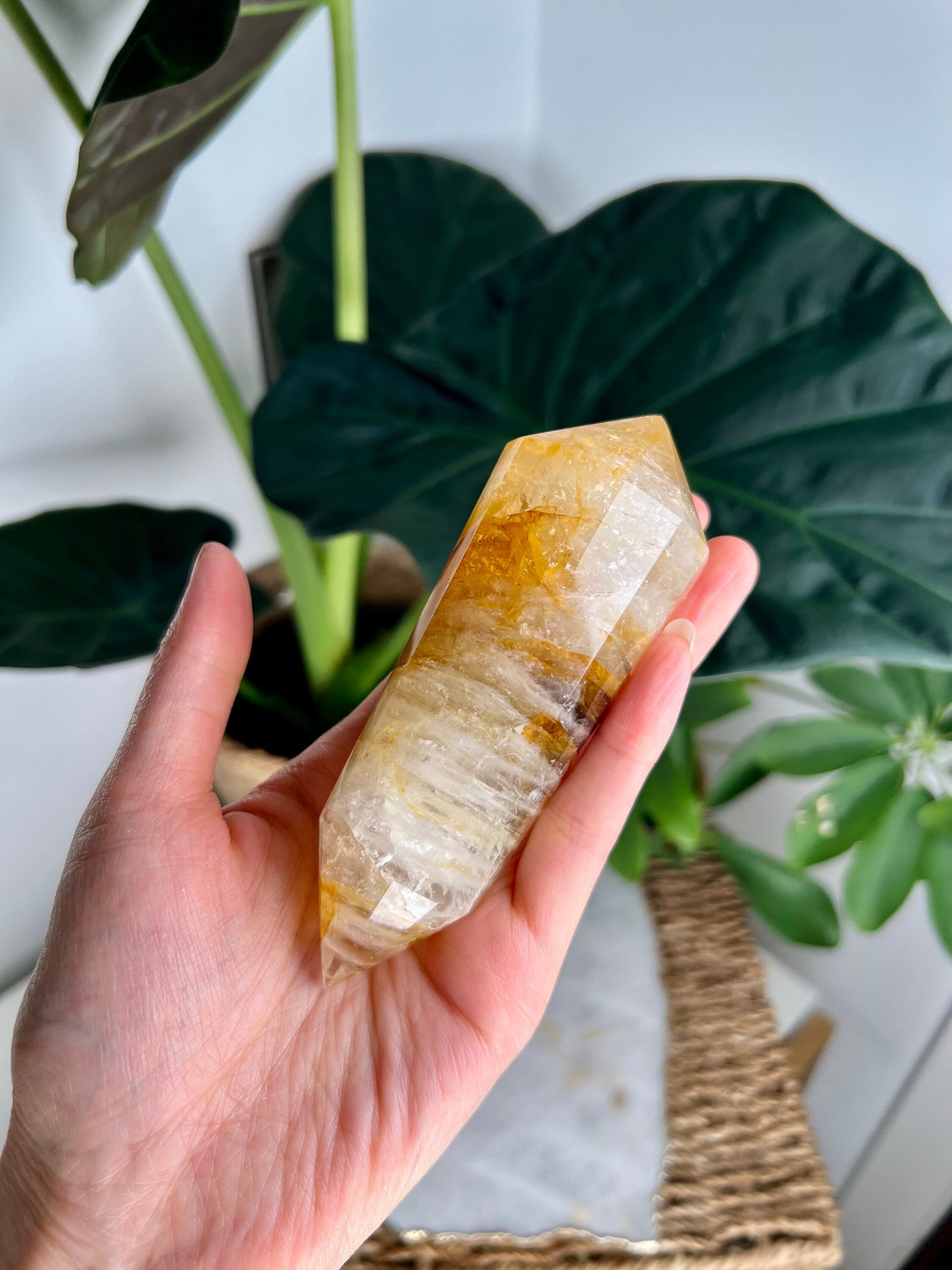 Golden Healer Quartz is known for its ability to facilitate profound healing and energy balance. The 12-sided Vogel wand shape enhances the flow of energy, making it highly effective for clearing blockages, balancing chakras, and promoting overall well-being. The double terminated ends allow energy to flow freely in both directions, enhancing the wand's healing capabilities.