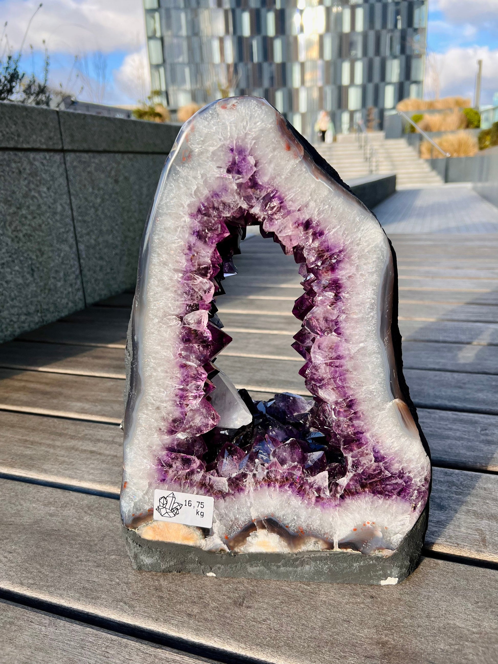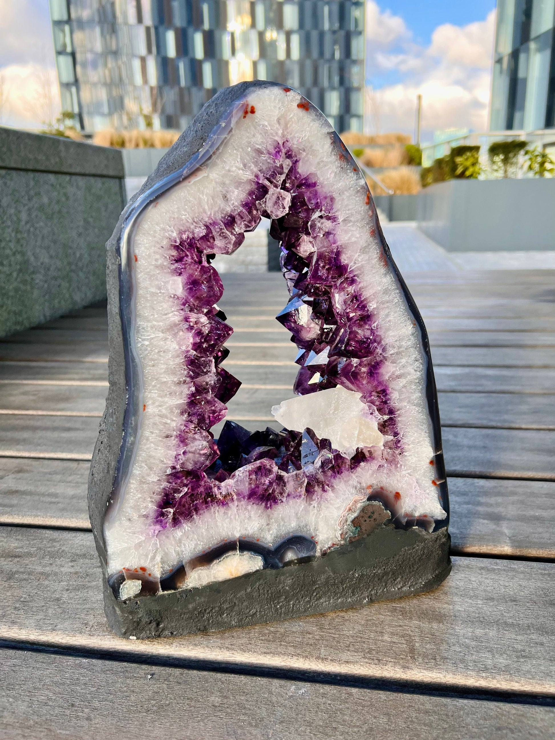 Grade AAA Brazil Amethyst Portal with Large Calcite Point and Agate Flowers, Many rainbows in Quartz and Amethyst 16.75KG