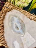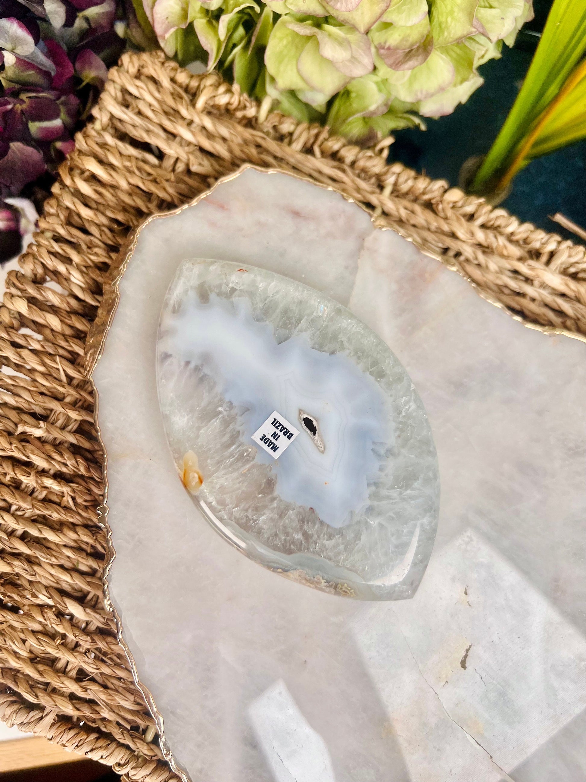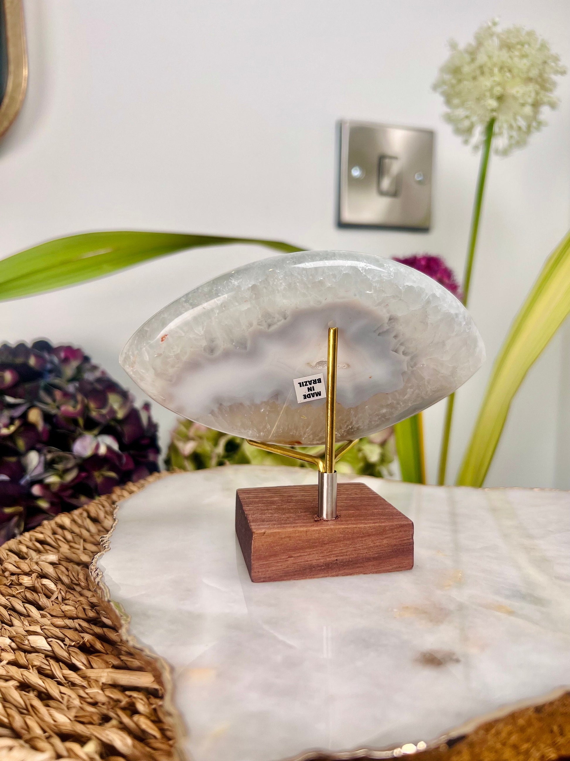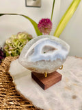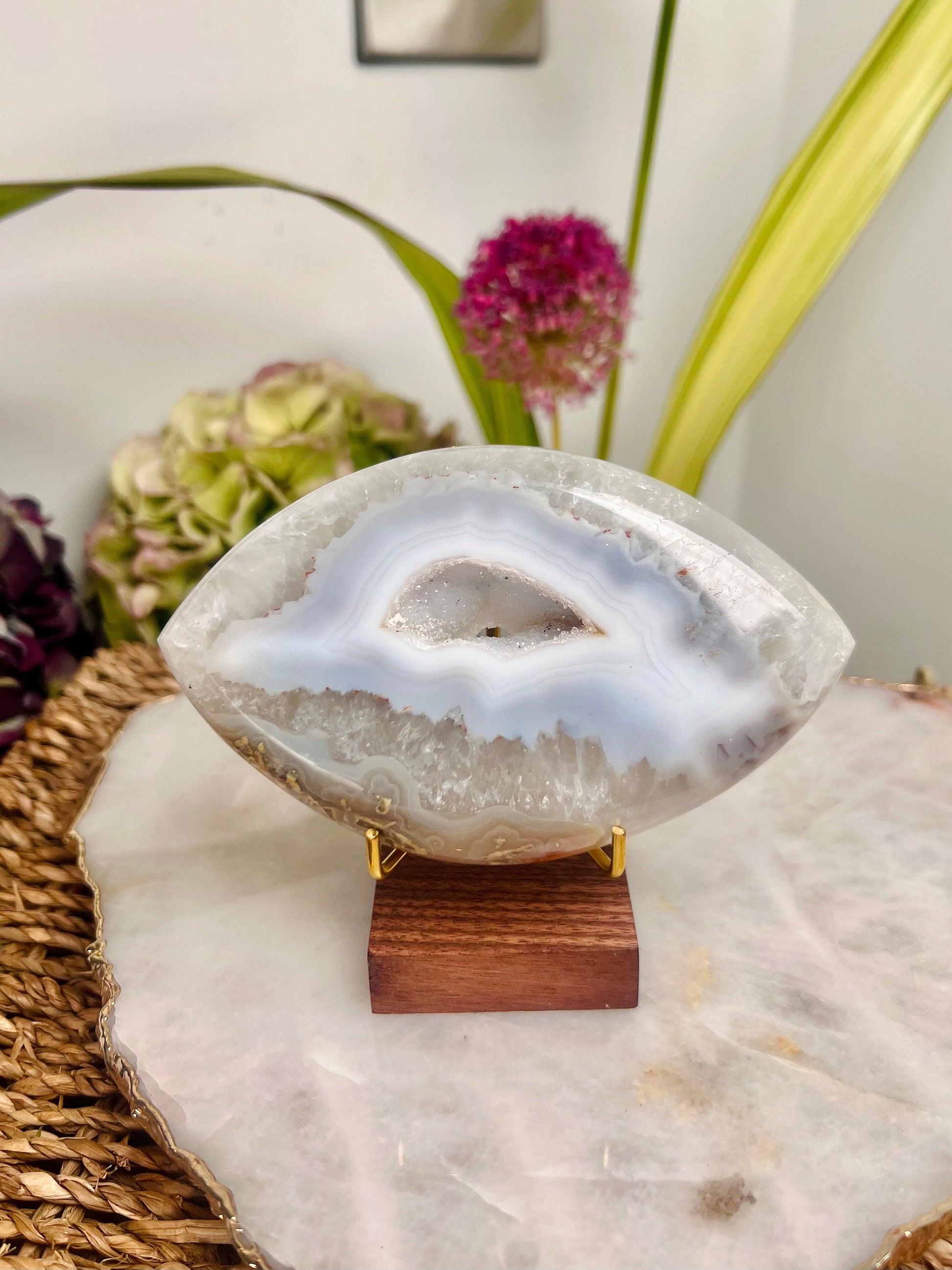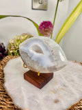 Grade AAA Brazilian Agate Quartz Eye with Druzy Geode on stand, Energy Protection, Third Eye Opening, Manifestation Crystal 301g