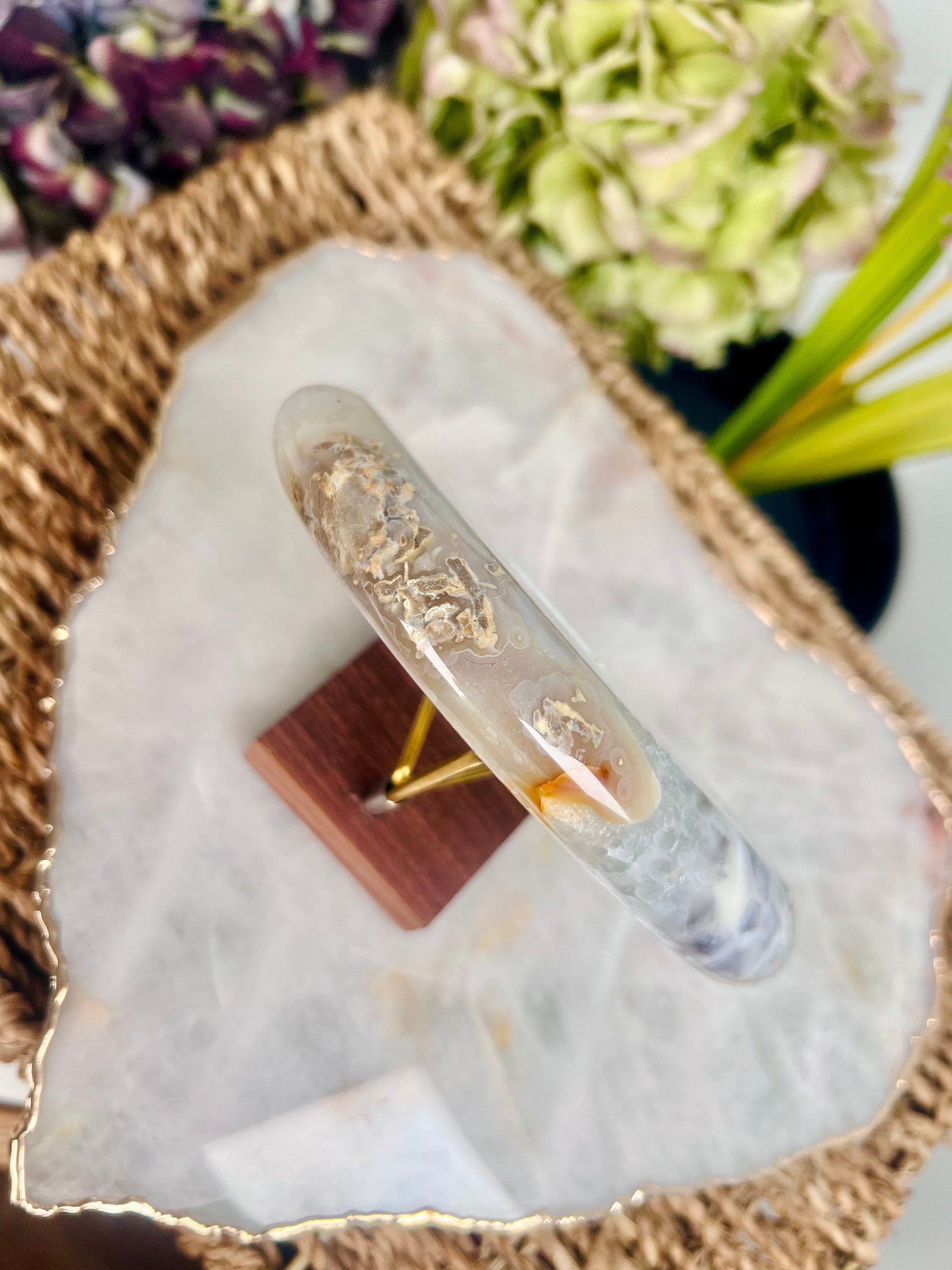 Agate is an excellent stone for rebalancing and harmonising body, mind and spirit. It cleanses and stabilises the aura, eliminating and transforming negativity. Agate enhances mental function, improving concentration, perception and analytical abilities. It soothes and calms, healing inner anger or tension and creating a sense of security and safety.