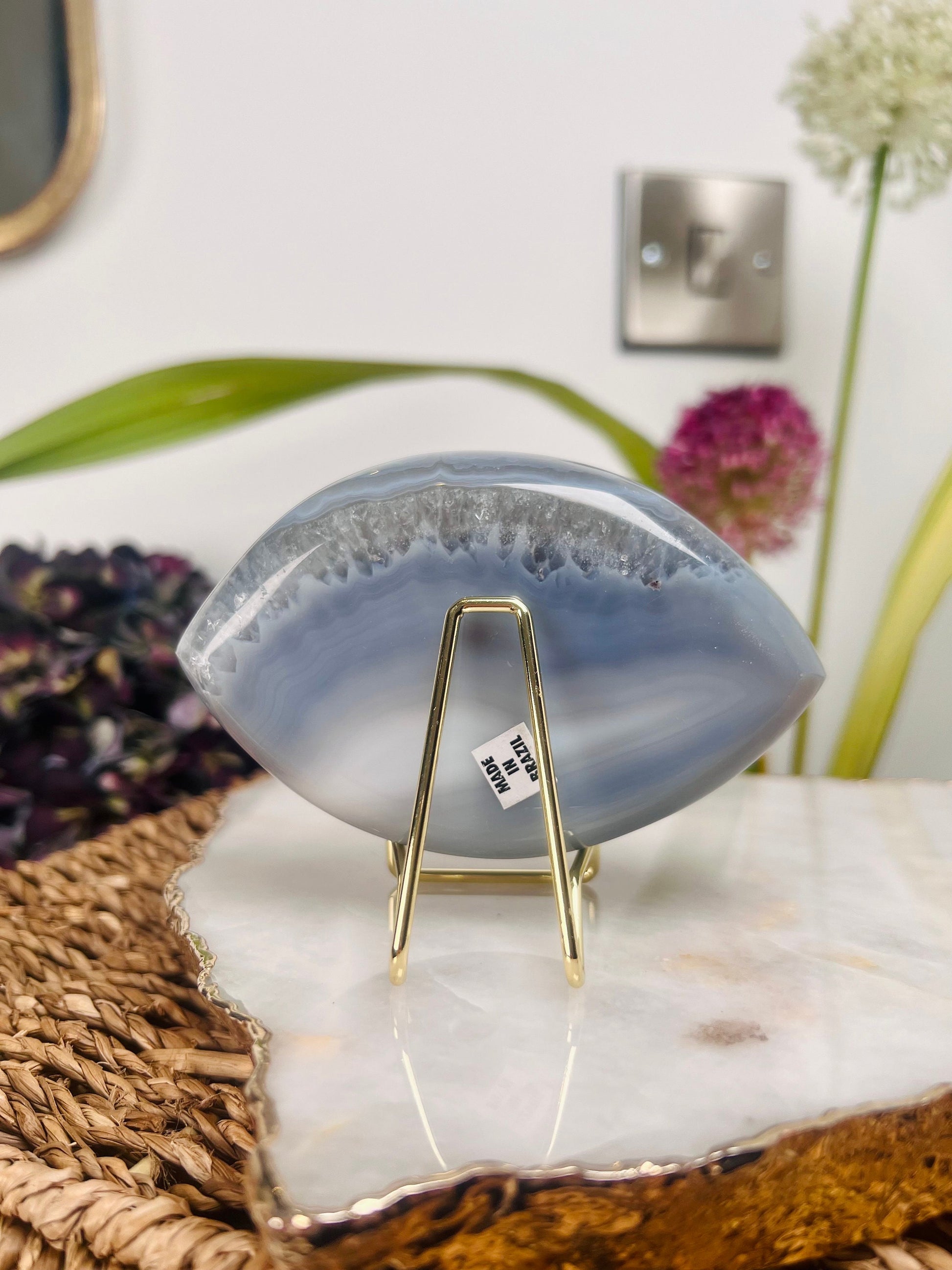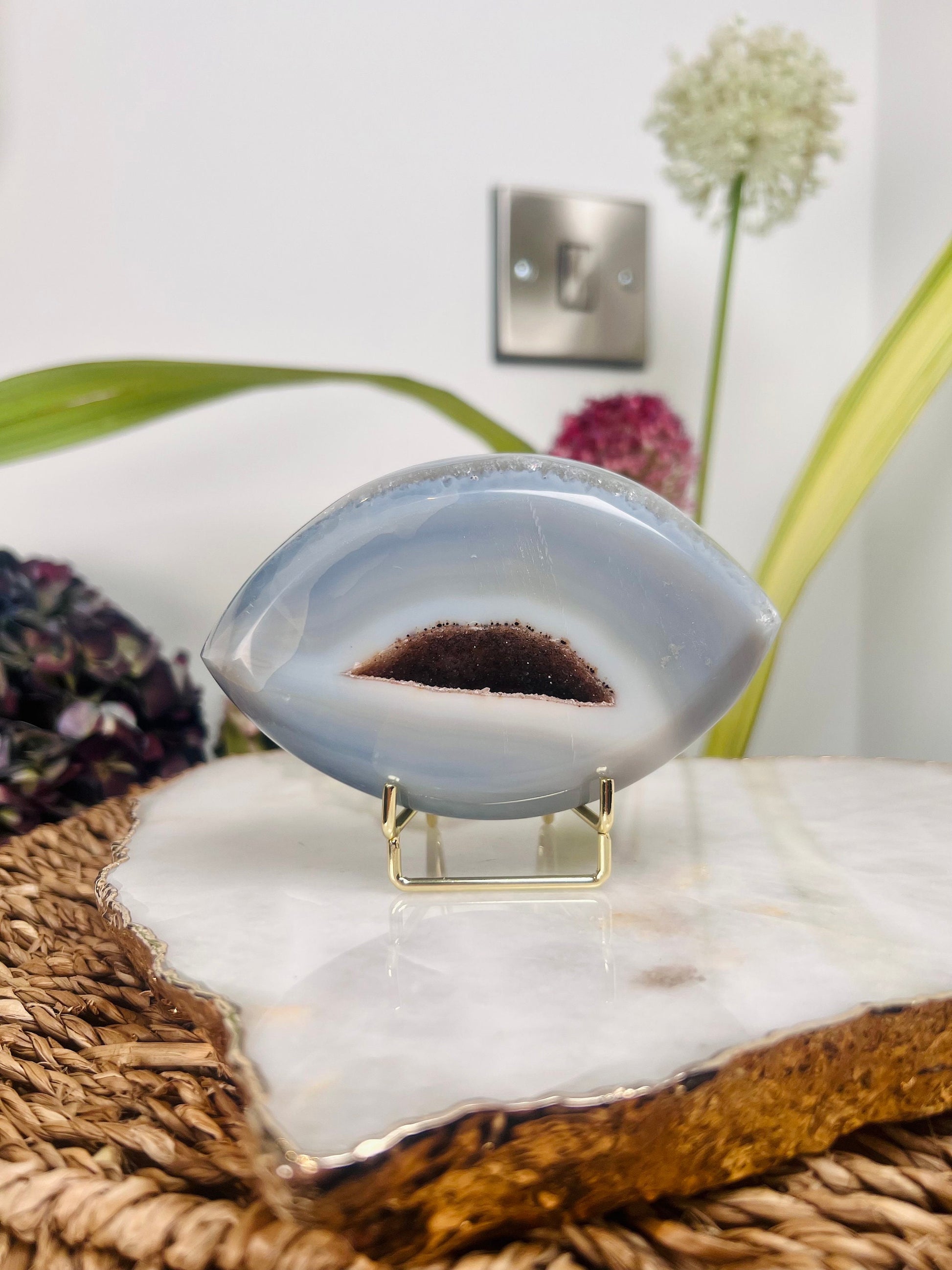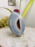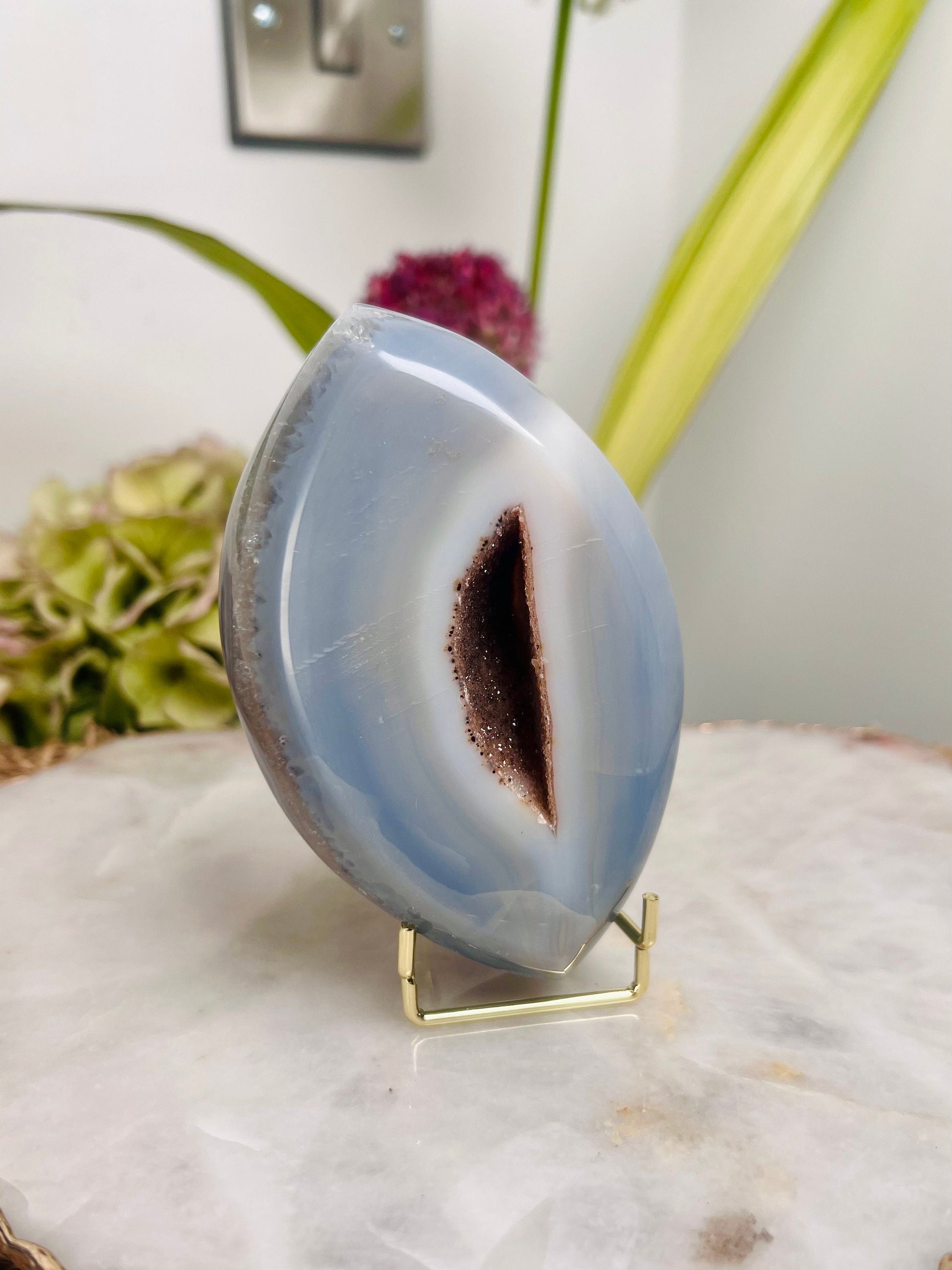 Grade AAA Brazilian Agate Quartz Eye with Druzy Geode on stand, Energy Protection, Third Eye Opening, Manifestation Crystal 364g