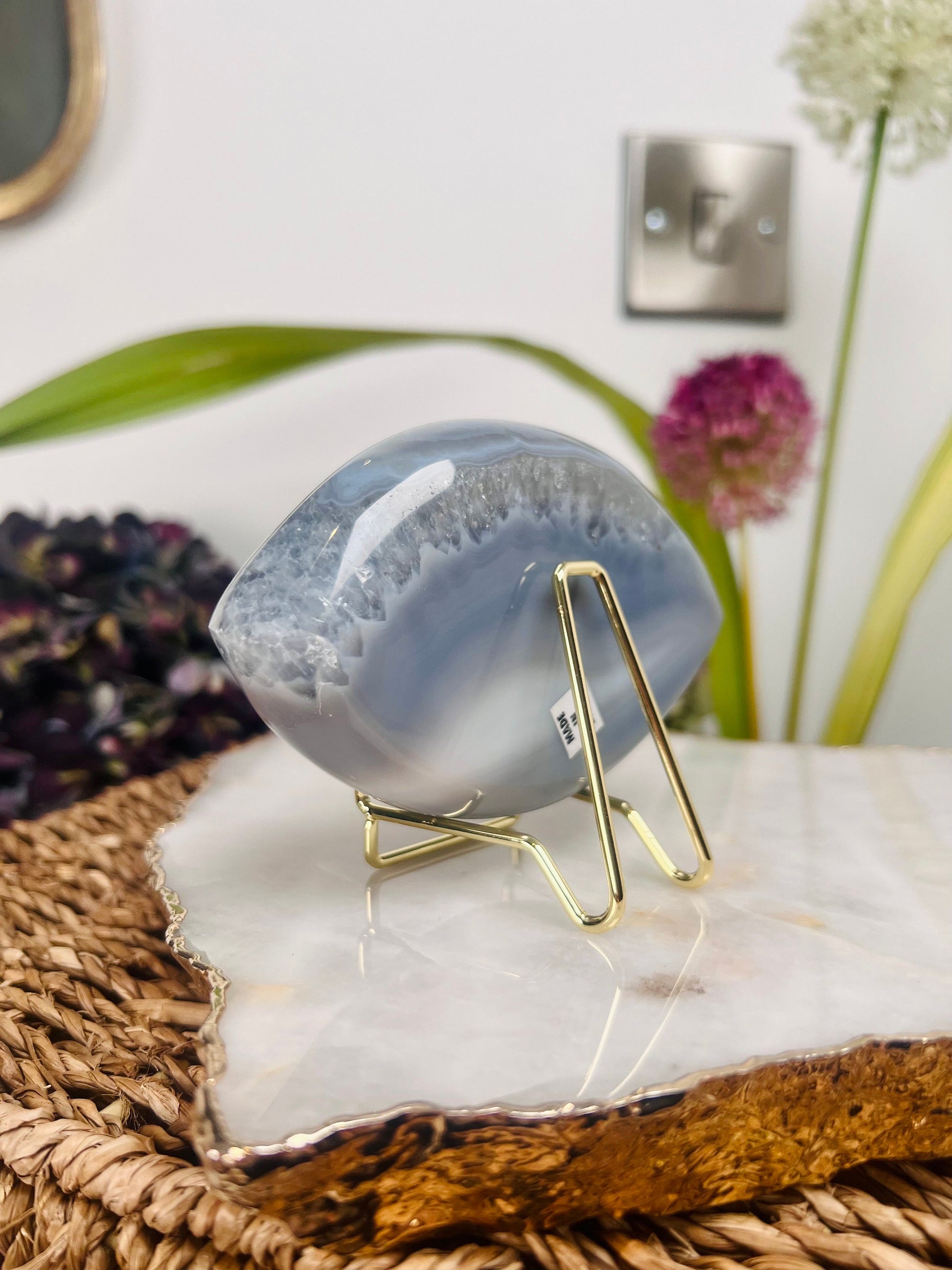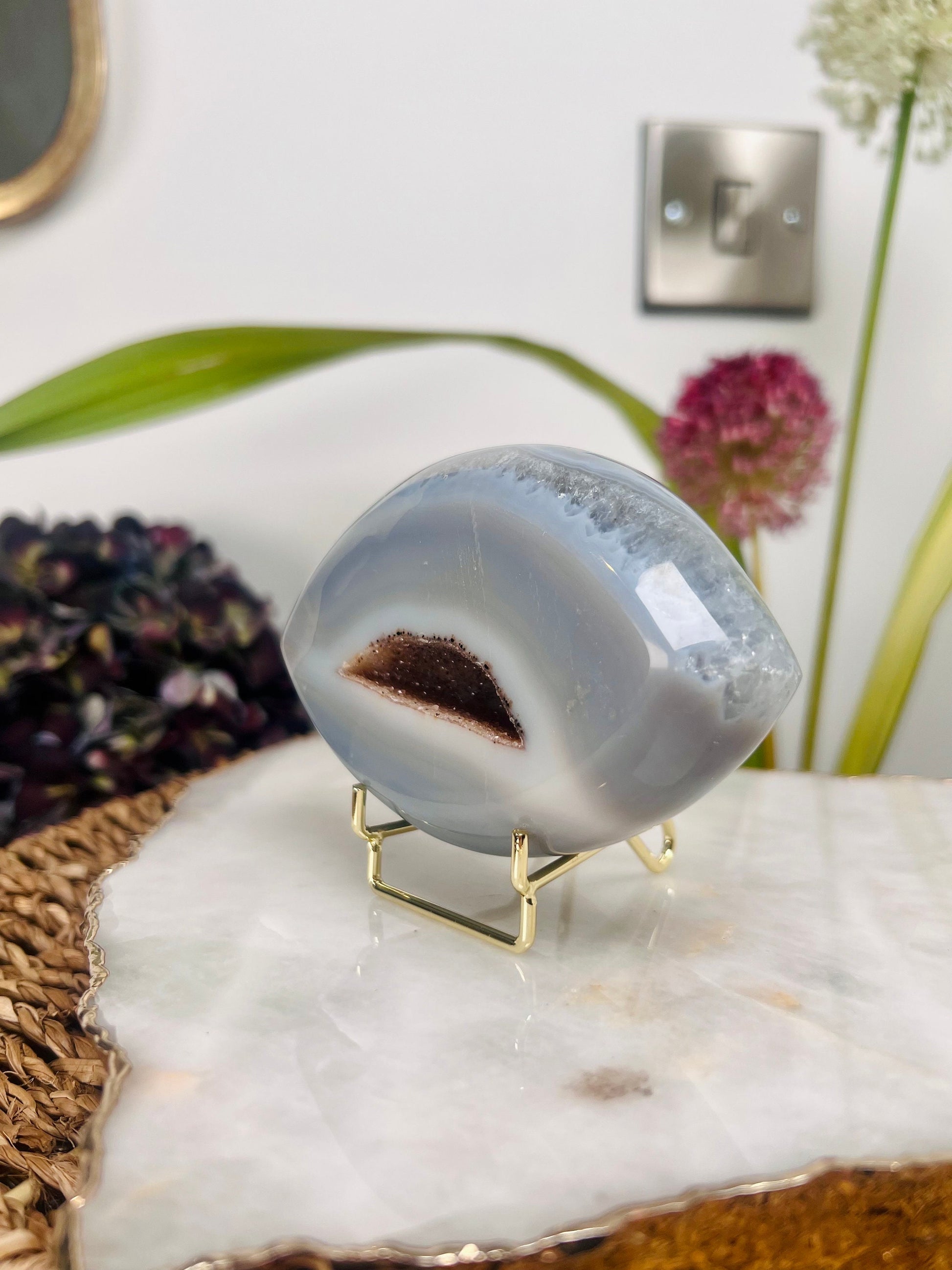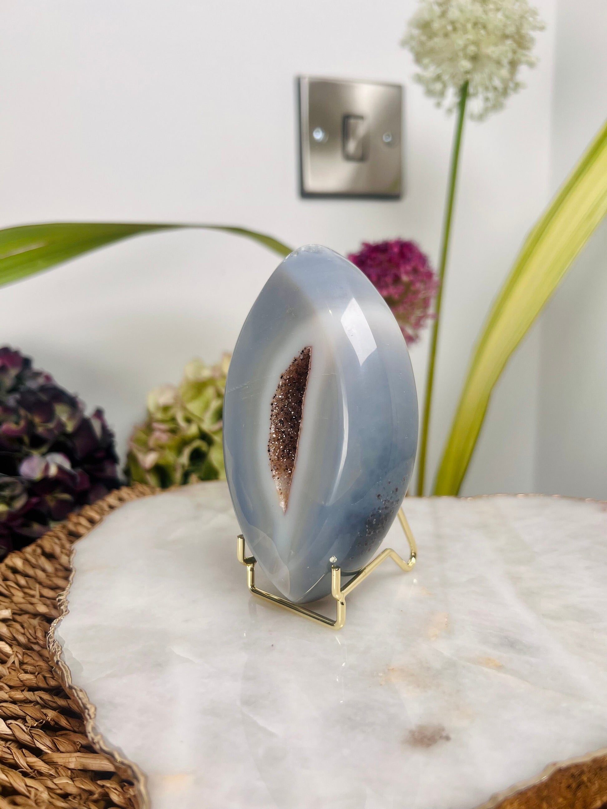 Grade AAA Brazilian Agate Quartz Eye with Druzy Geode on stand, Energy Protection, Third Eye Opening, Manifestation Crystal 364g