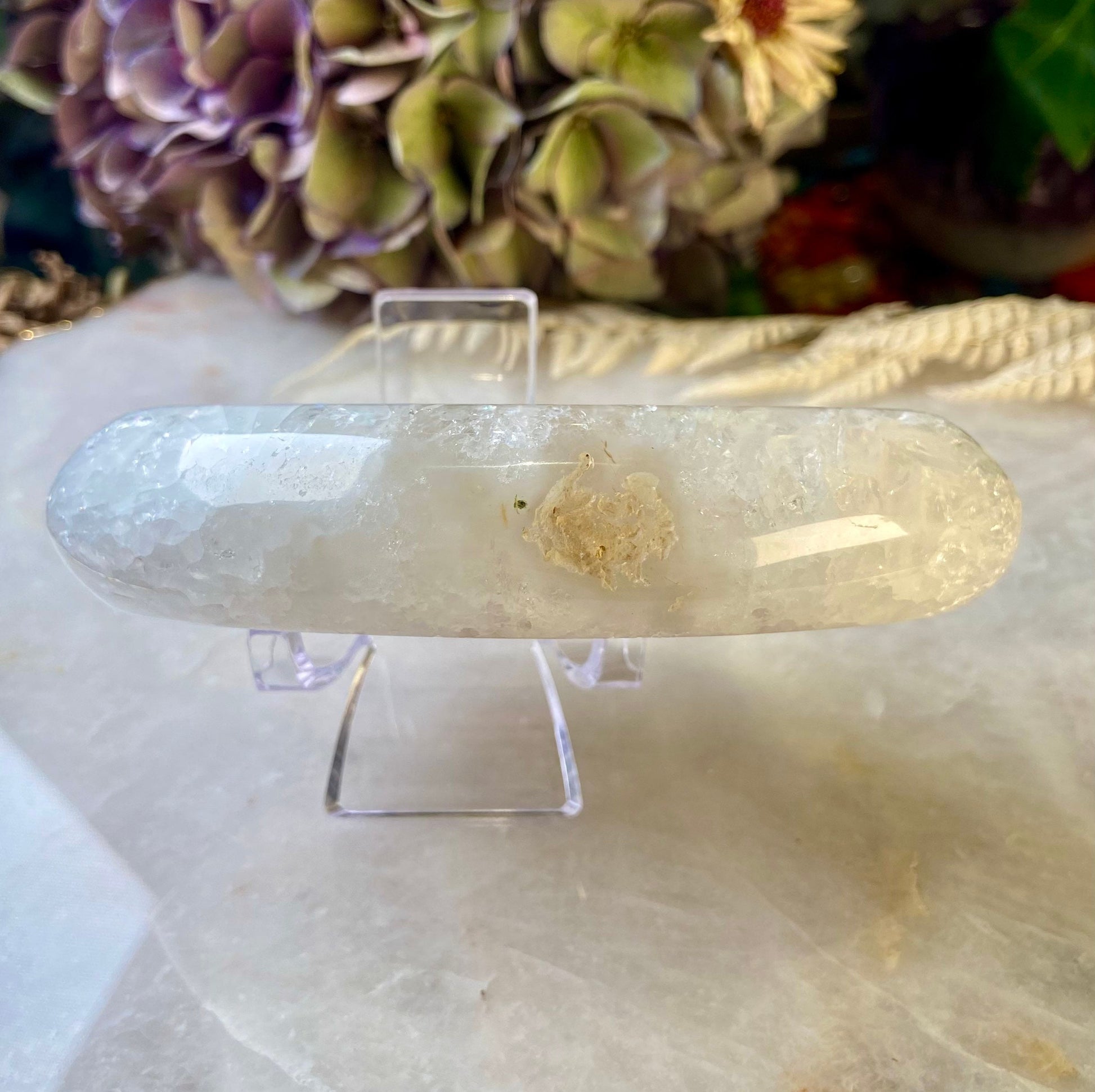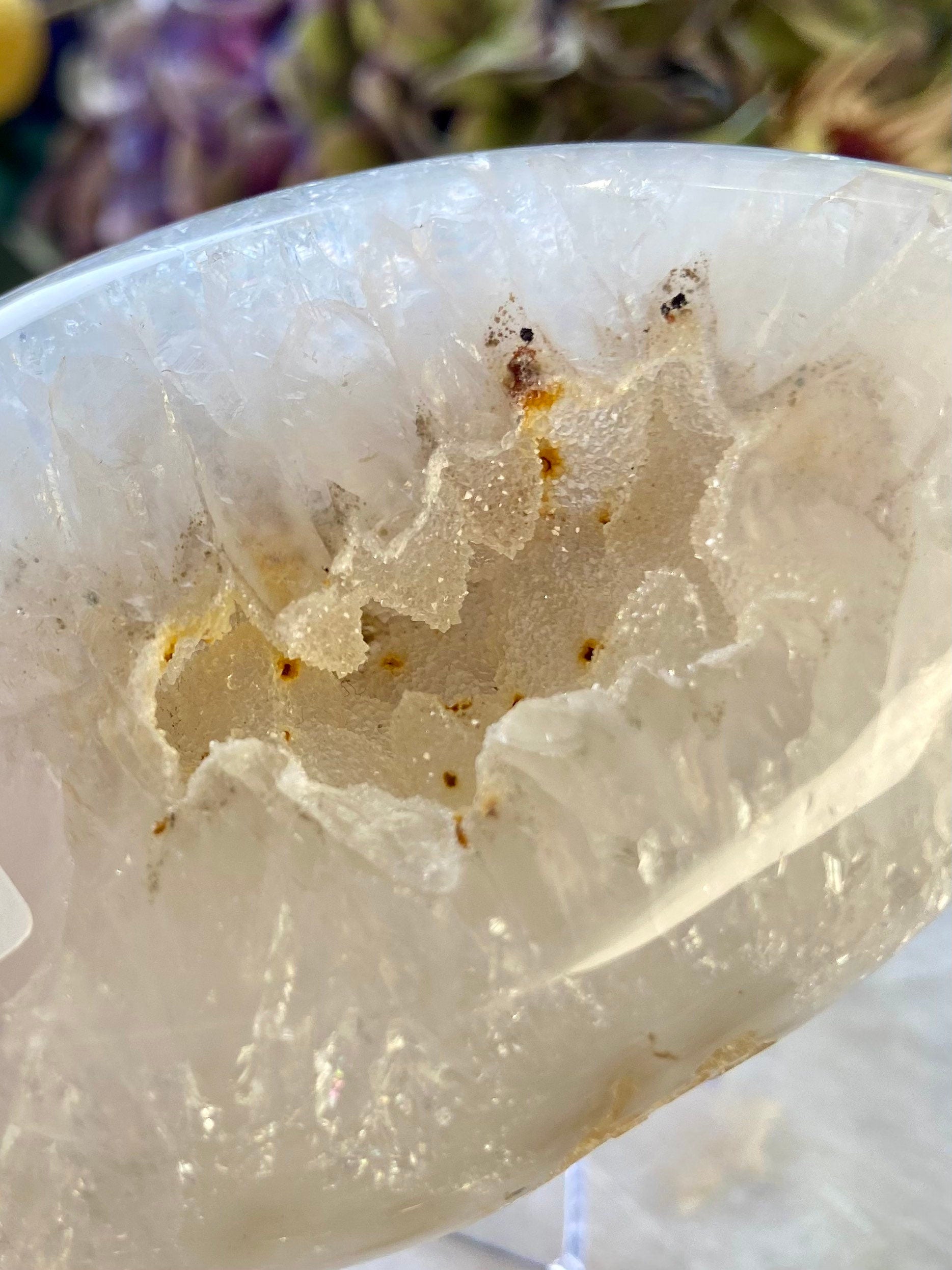 It has a natural combination of Clear Quartz and Agate with druzy (Known as " Angel Kisses" in Brazil). Sometimes you may even find other natural mineral inclusions for extra healing properties 😍