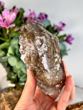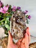 With its deep smoky color and intricate elestial terminations, this quartz brings together the grounding, protective qualities of Smoky Quartz with the elevated, soul-level wisdom of Elestial formations. It feels ancient, wise, and powerful-like holding a crystal library encoded with higher guidance.