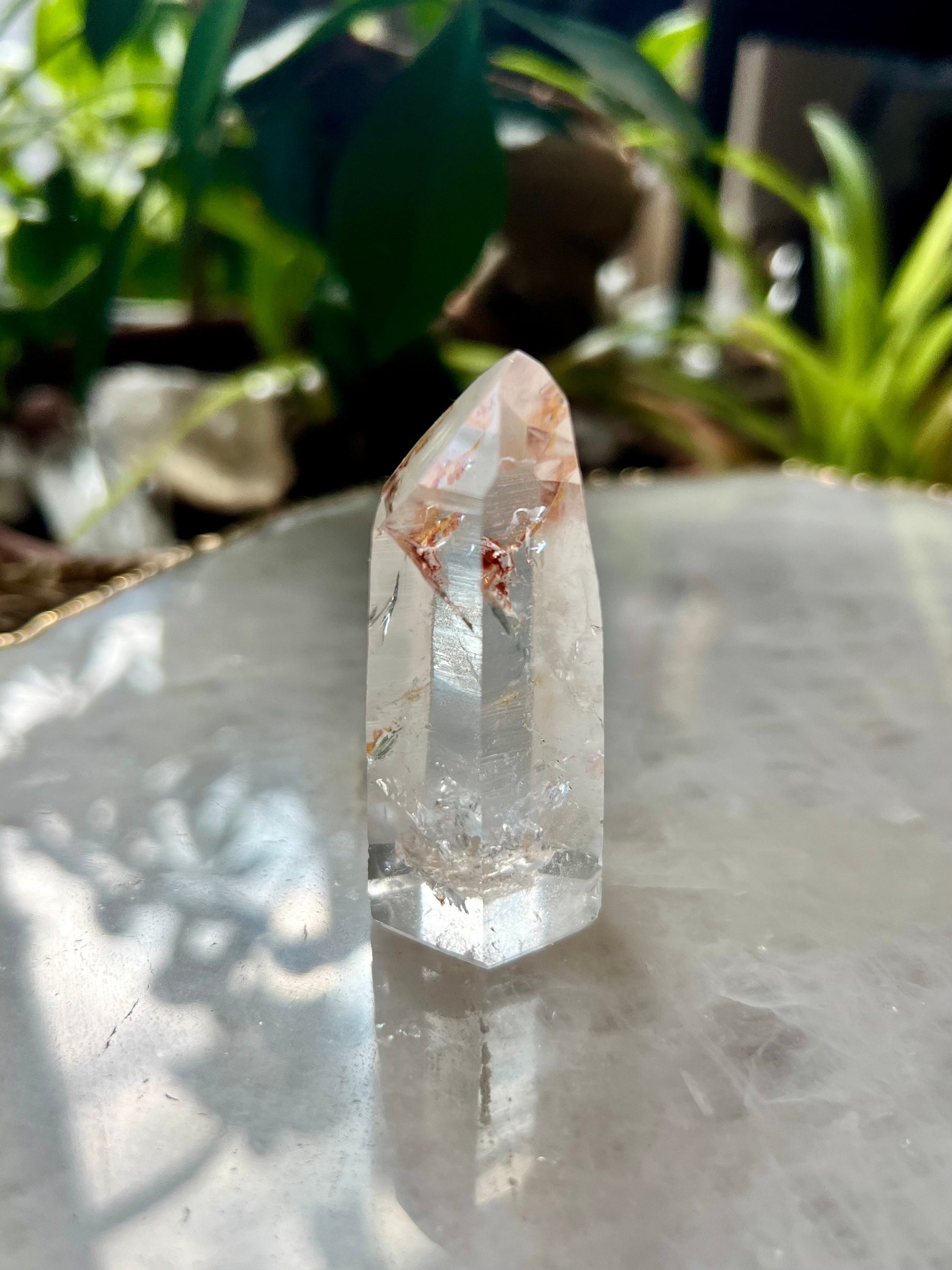 Fire Lemurian Quartz is known for its intense energy and connection to the element of fire. This crystal embodies the transformative energy of the phoenix, symbolizing rebirth, renewal, and profound spiritual awakening. The tower shape enhances its ability to channel and amplify energy, making it a powerful tool for healing and spiritual work.