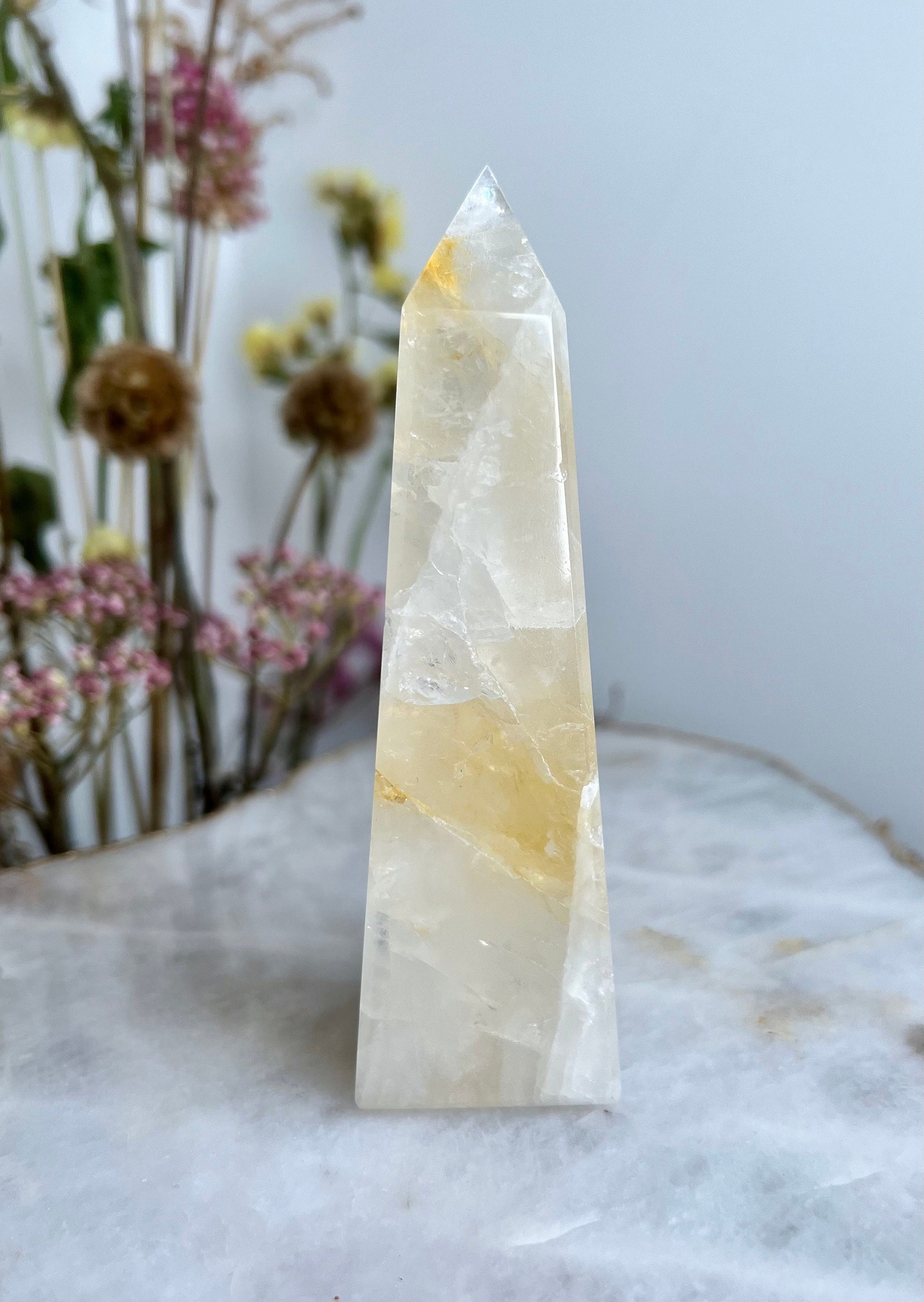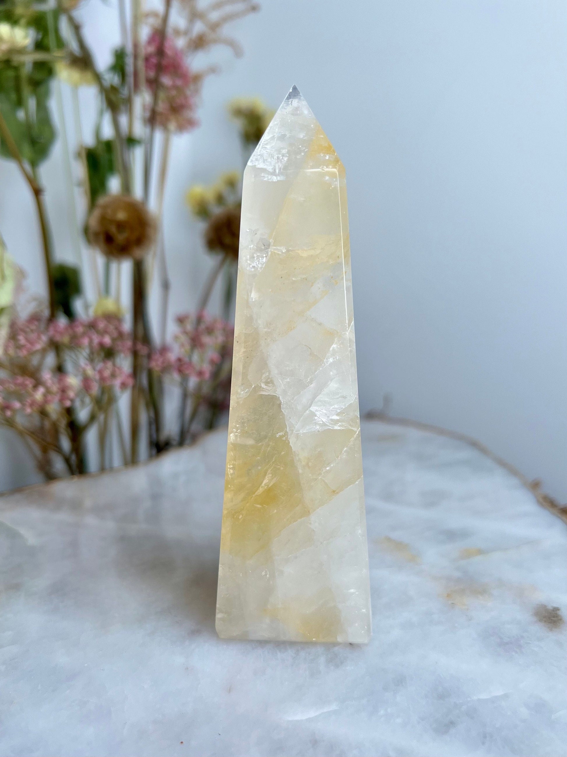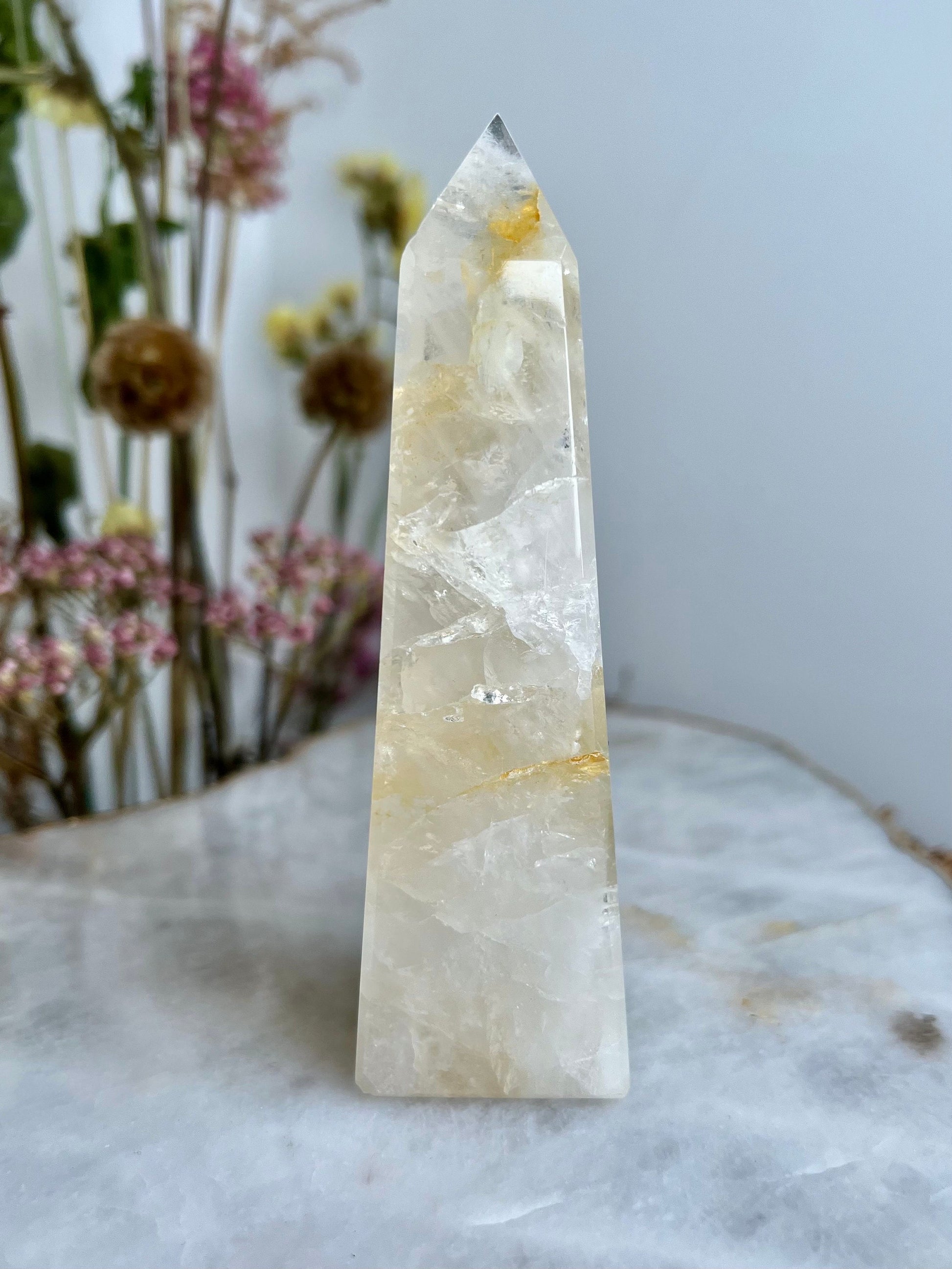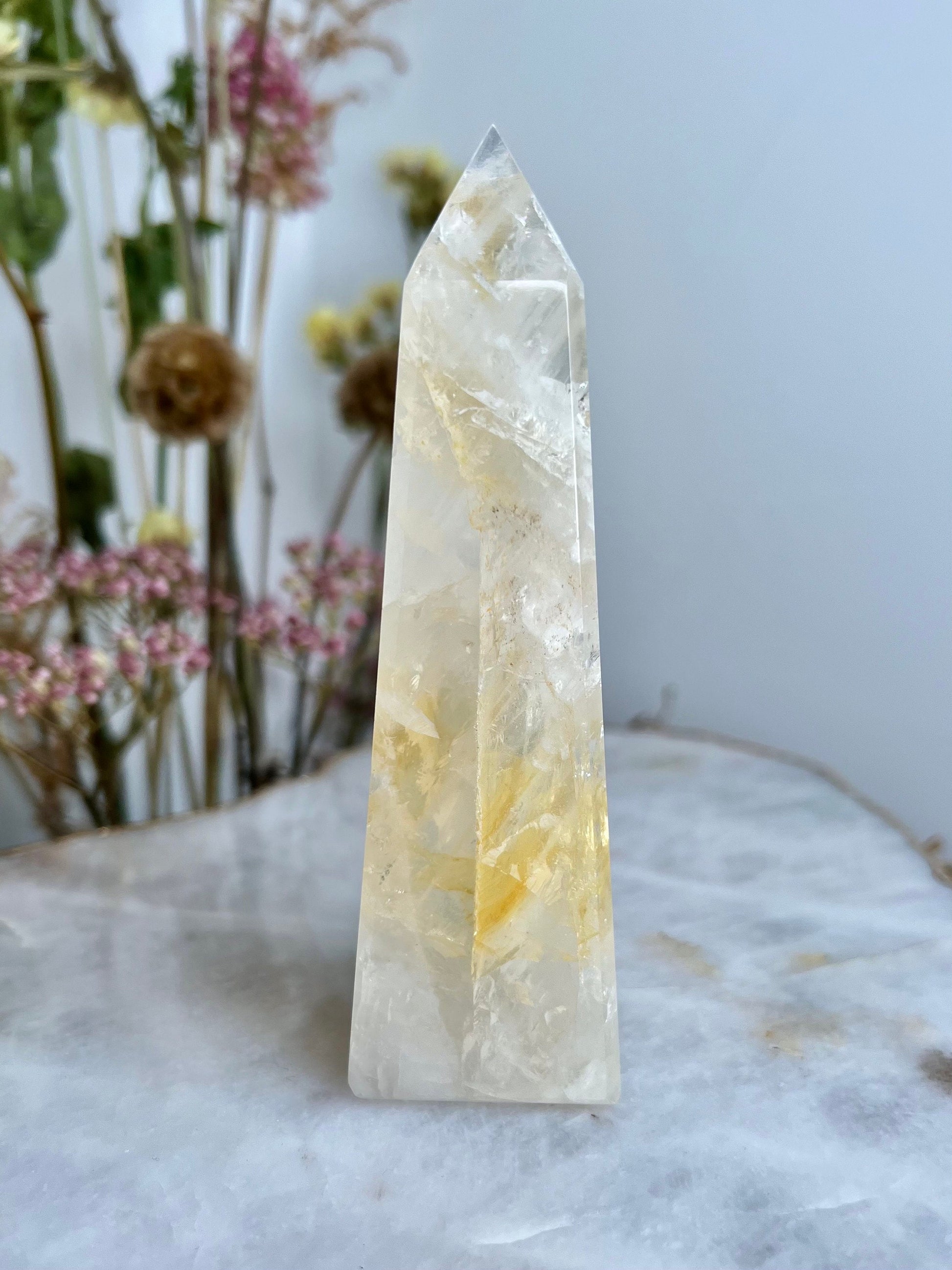 ✨ Elevate Your Spiritual Journey - Experience the profound energy of our Grade AAA Golden Healer Quartz Obelisk. Revered as a master healer, this stunning crystal obelisk is a conduit of power, strength, and connection to Source Energy.