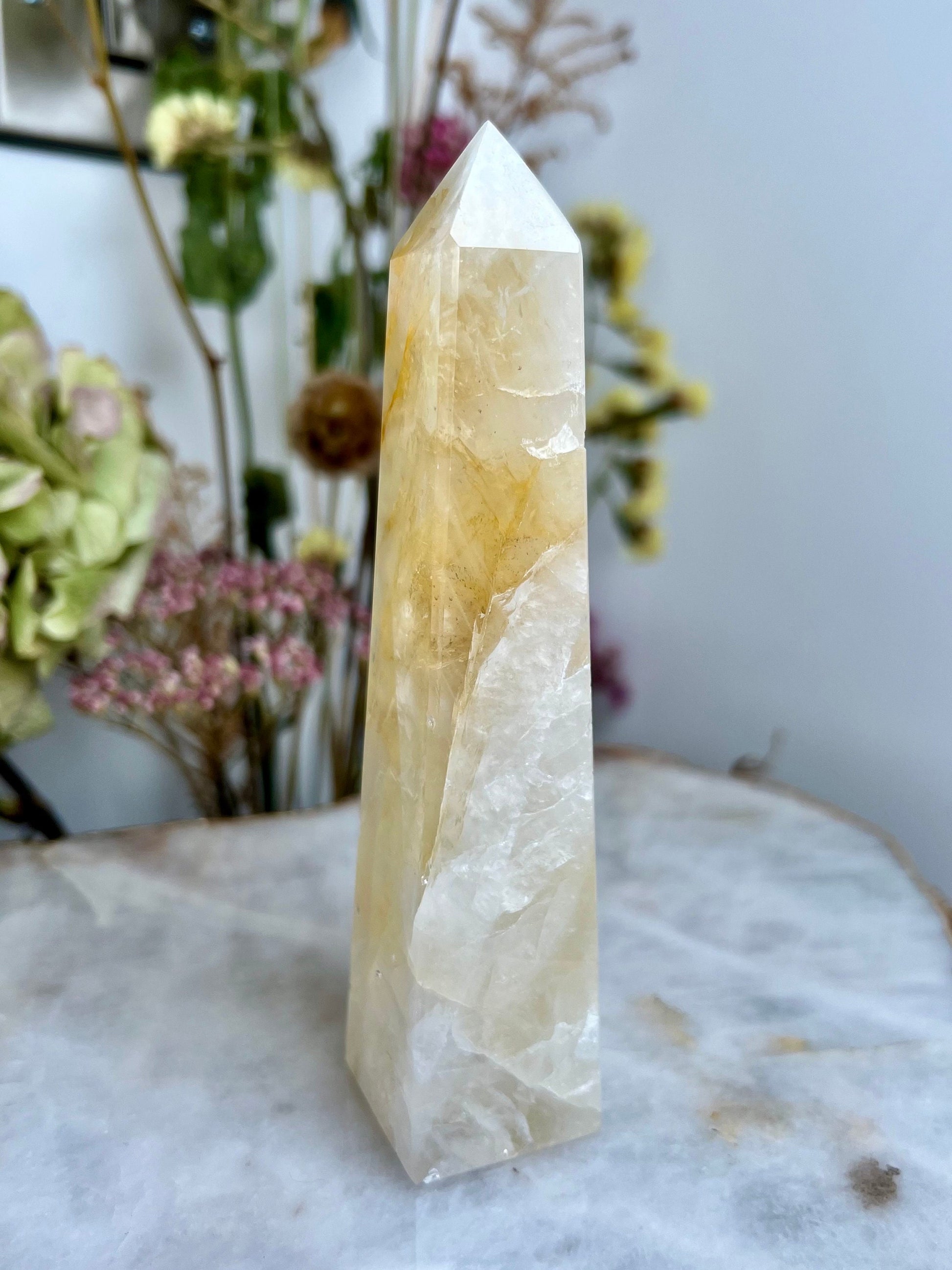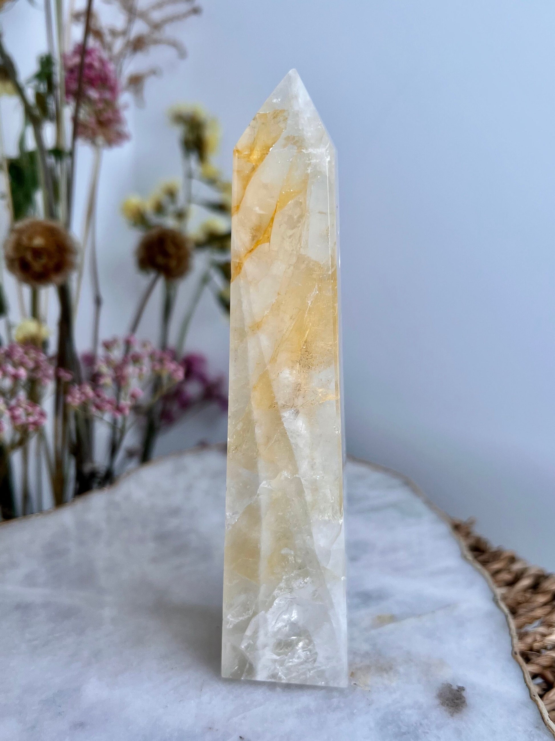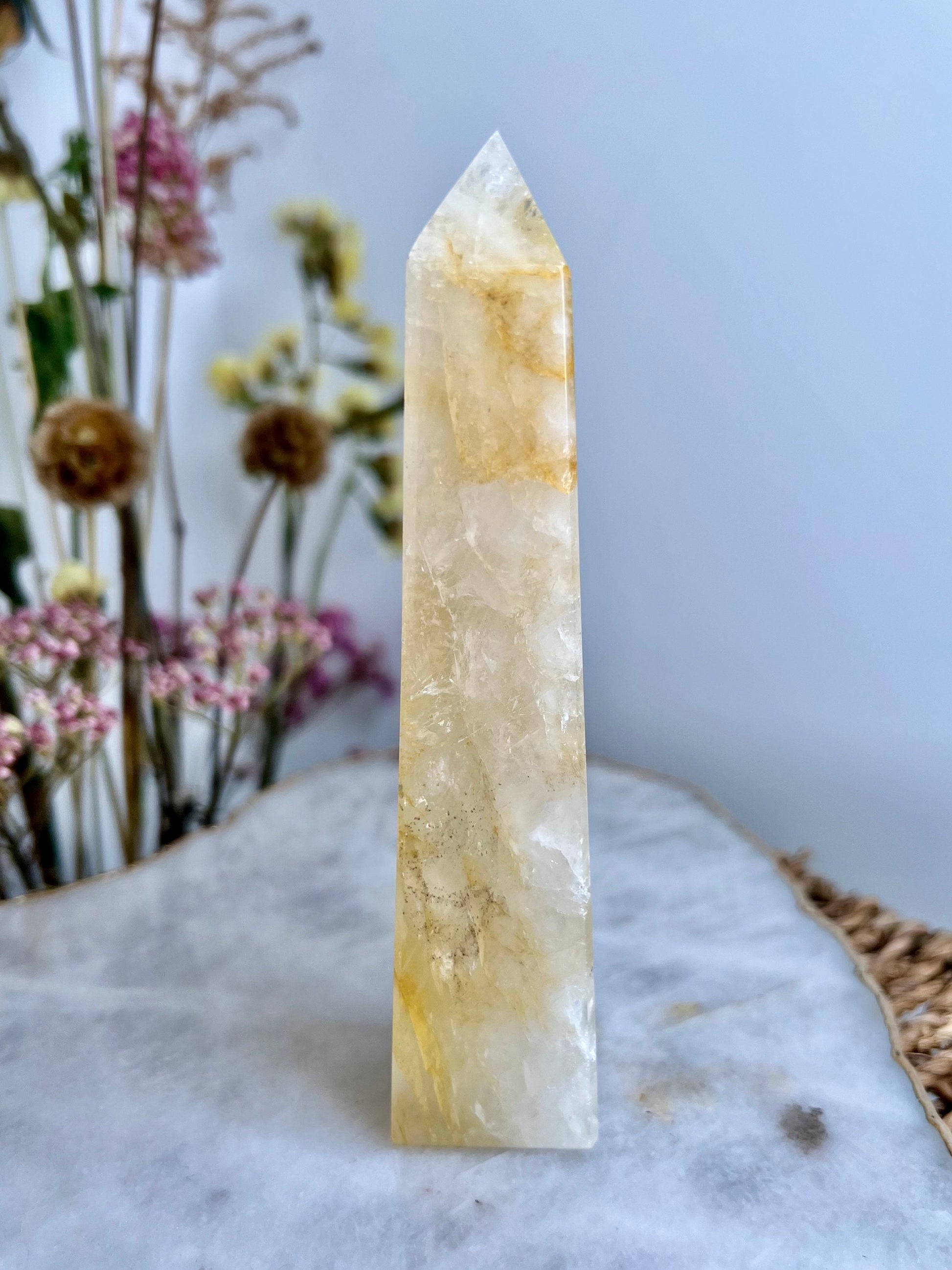 ✨ Elevate Your Spiritual Journey - Experience the profound energy of our Grade AAA Golden Healer Quartz Obelisk. Revered as a master healer, this stunning crystal obelisk is a conduit of power, strength, and connection to Source Energy.