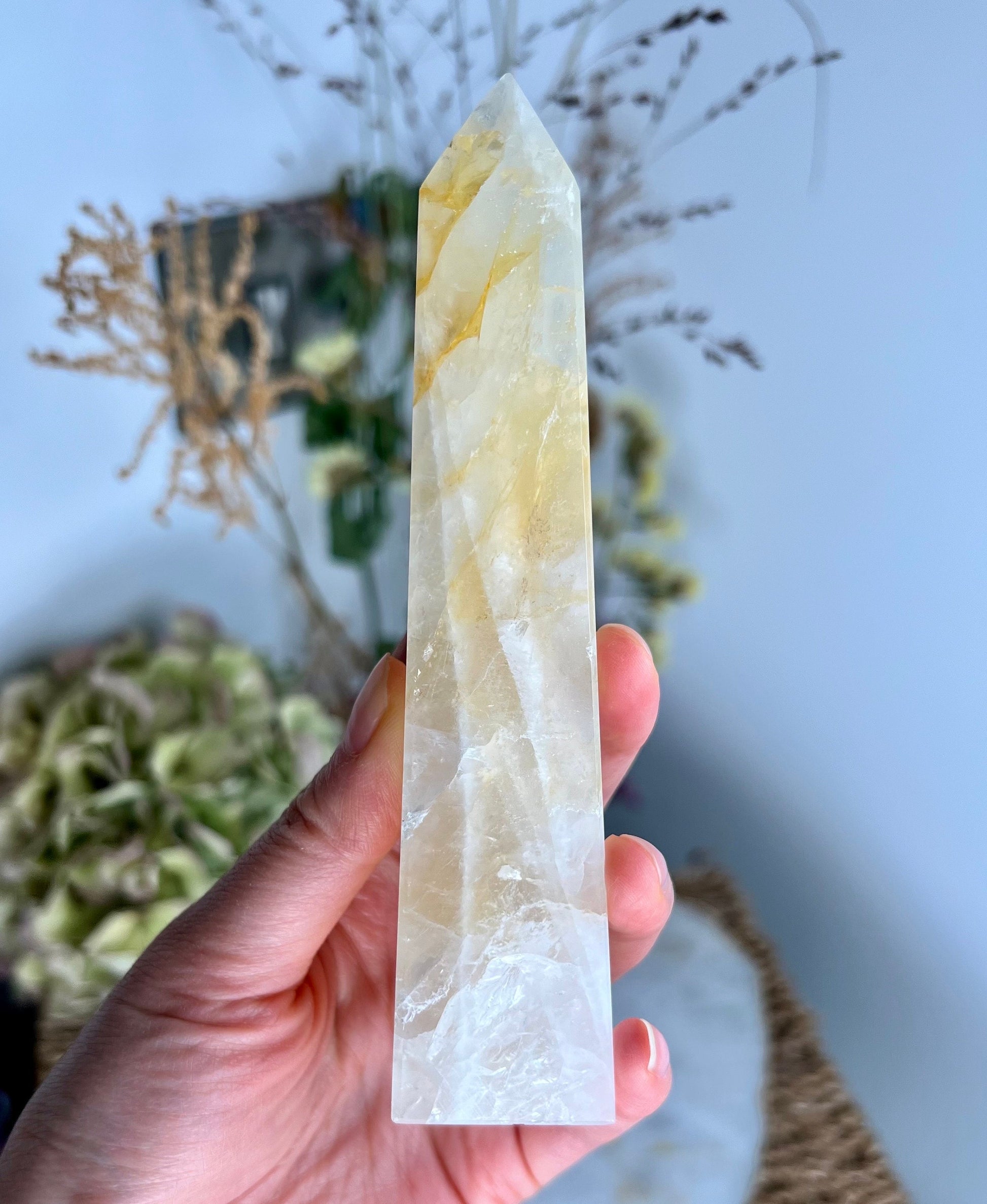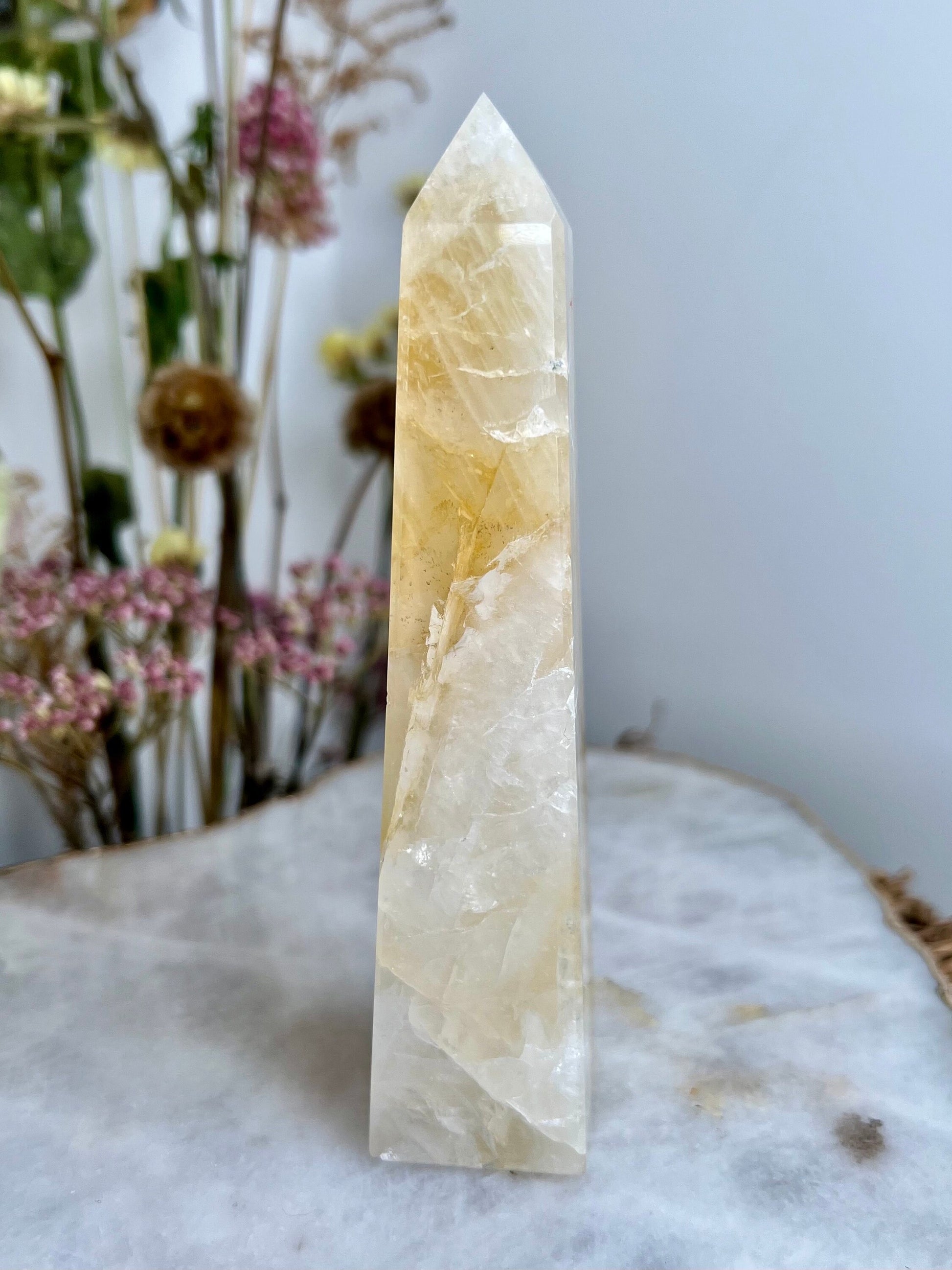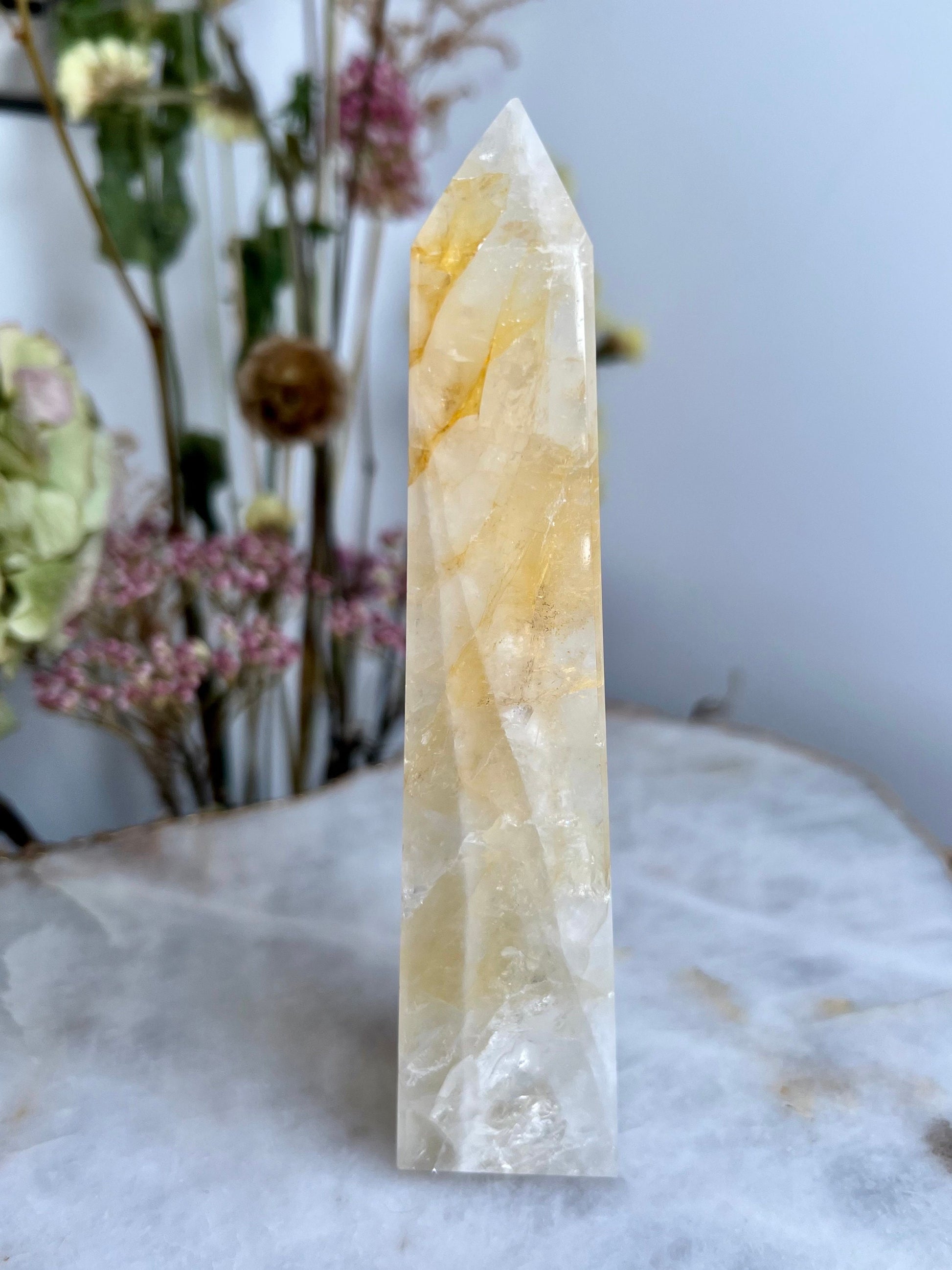 ✨ Elevate Your Spiritual Journey - Experience the profound energy of our Grade AAA Golden Healer Quartz Obelisk. Revered as a master healer, this stunning crystal obelisk is a conduit of power, strength, and connection to Source Energy.