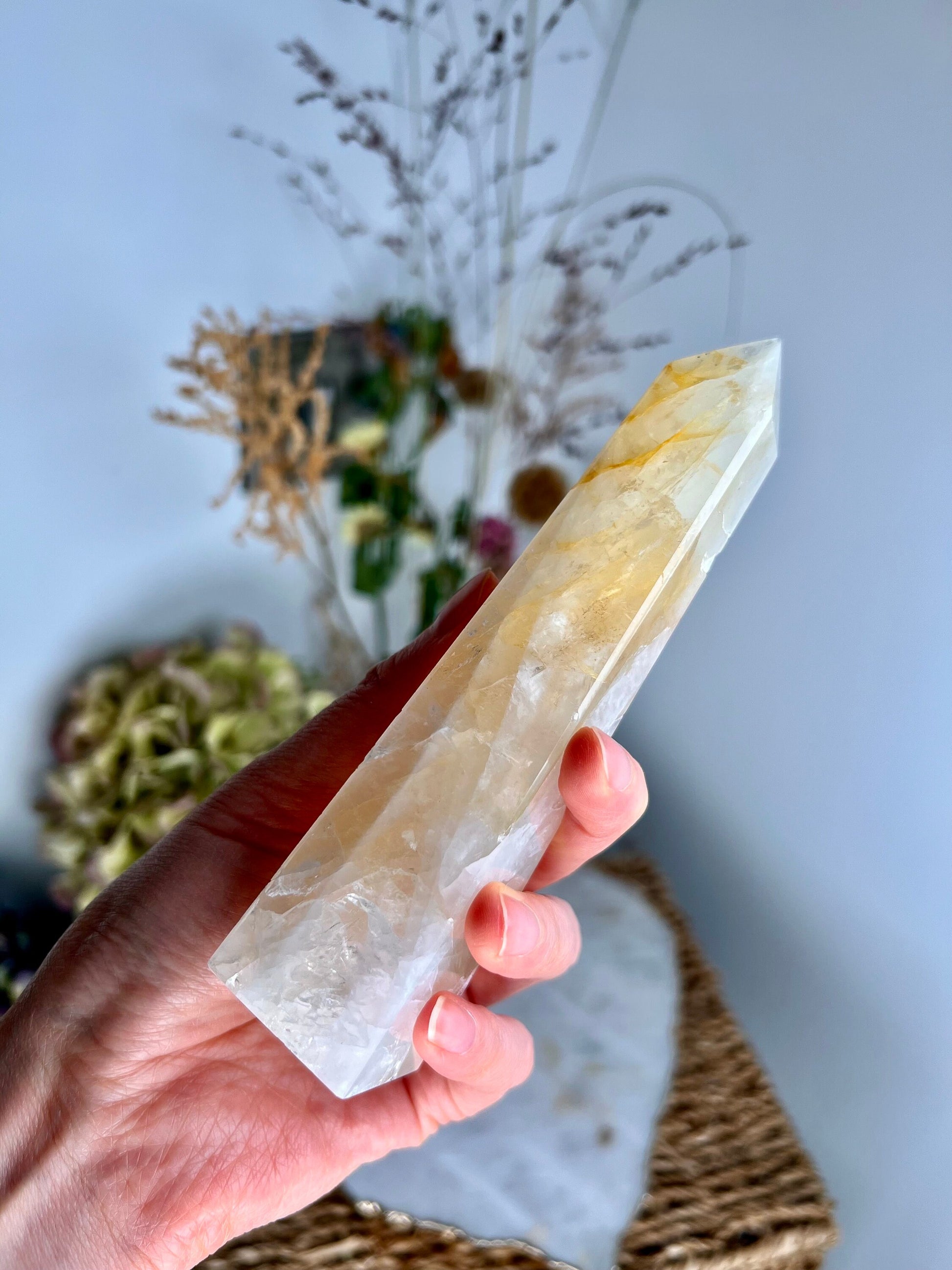 🔮 Golden Healer Quartz - A Beacon of Positivity and Healing - This crystal is renowned for its high energy frequency, offering a direct link to divine light and cosmic energies. Its golden hues symbolize joy, peace, and abundance, making it an ideal tool for manifestation and spiritual growth.