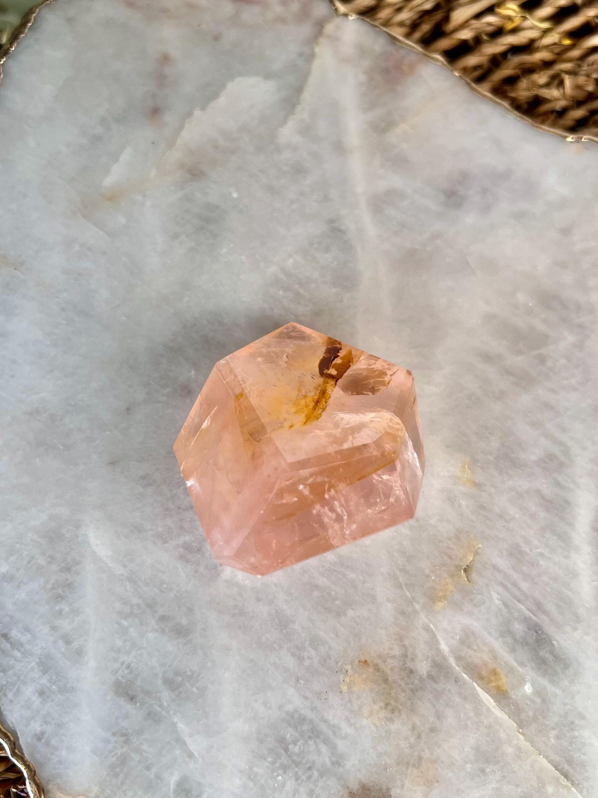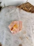 🌞 Golden Healer: Illuminated by Star Light - The Golden Healer veins within this Rose Quartz are not just pathways of healing energy but also carriers of the cosmic Star Light, grounding divine energy into the physical realm. This integration amplifies the stone's capacity to heal, uplift, and transform, aligning body, mind, and spirit with the highest vibrations of love.
