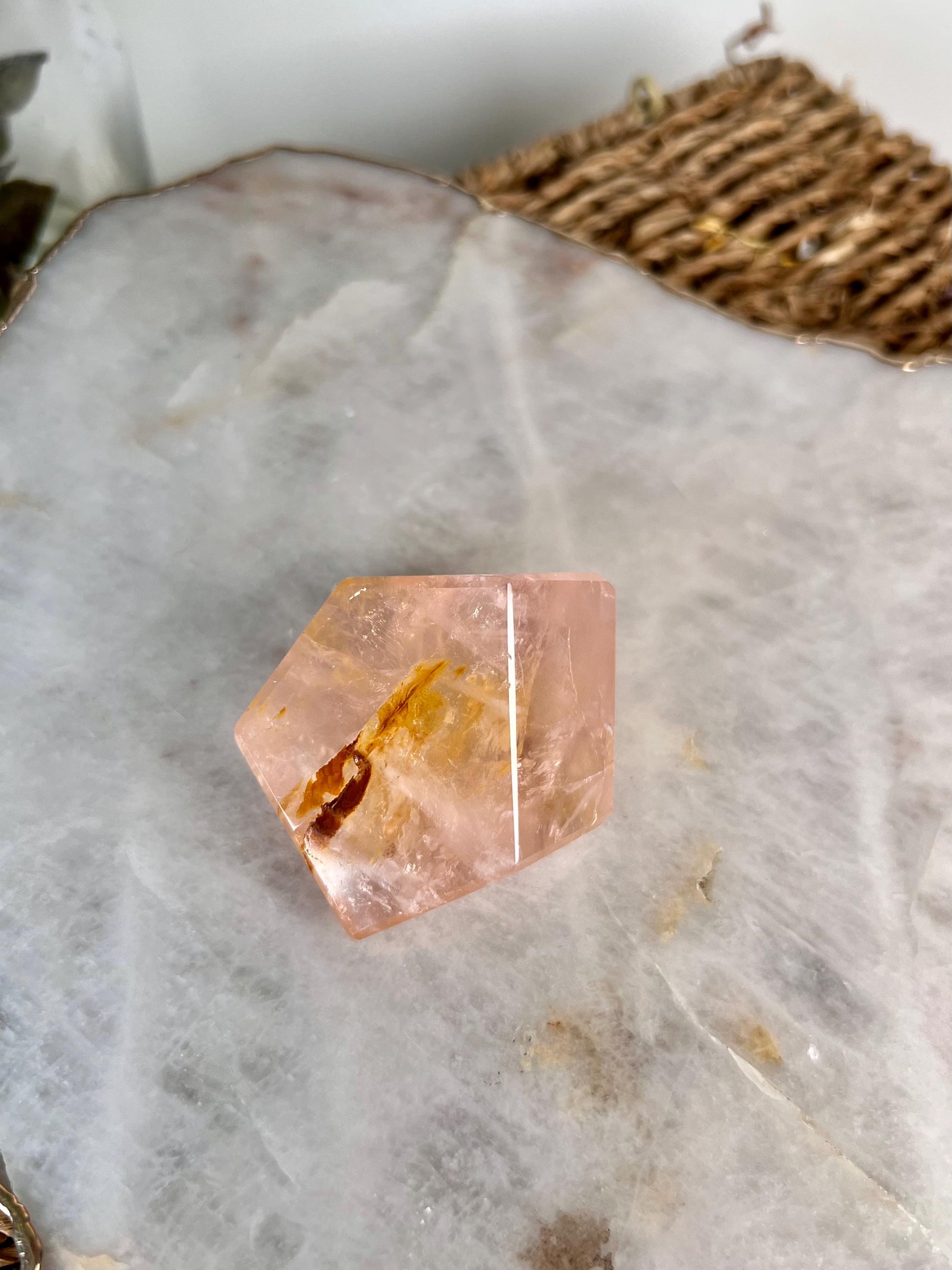 🌟 A Celestial Masterpiece of Love and Light - This Golden Healer Rose Quartz Freeform transcends ordinary crystal healing, offering a unique blend of earthly and stellar energies. It stands as a beacon of cosmic love and enlightenment, inviting all who encounter it to embrace their divine essence and the boundless love that connects us to the universe.