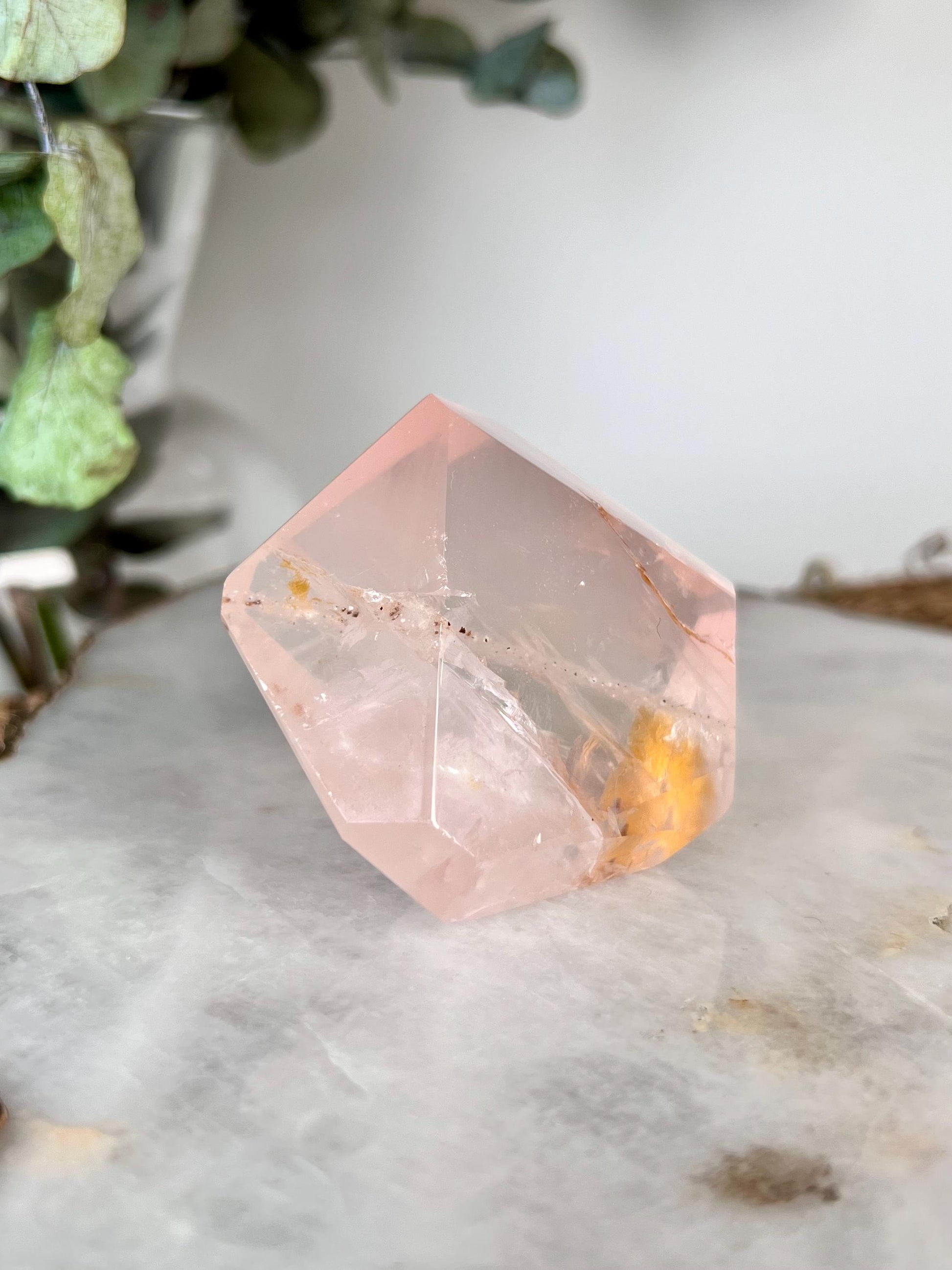 🌟 A Celestial Masterpiece of Love and Light - This Golden Healer Rose Quartz Freeform transcends ordinary crystal healing, offering a unique blend of earthly and stellar energies. It stands as a beacon of cosmic love and enlightenment, inviting all who encounter it to embrace their divine essence and the boundless love that connects us to the universe.