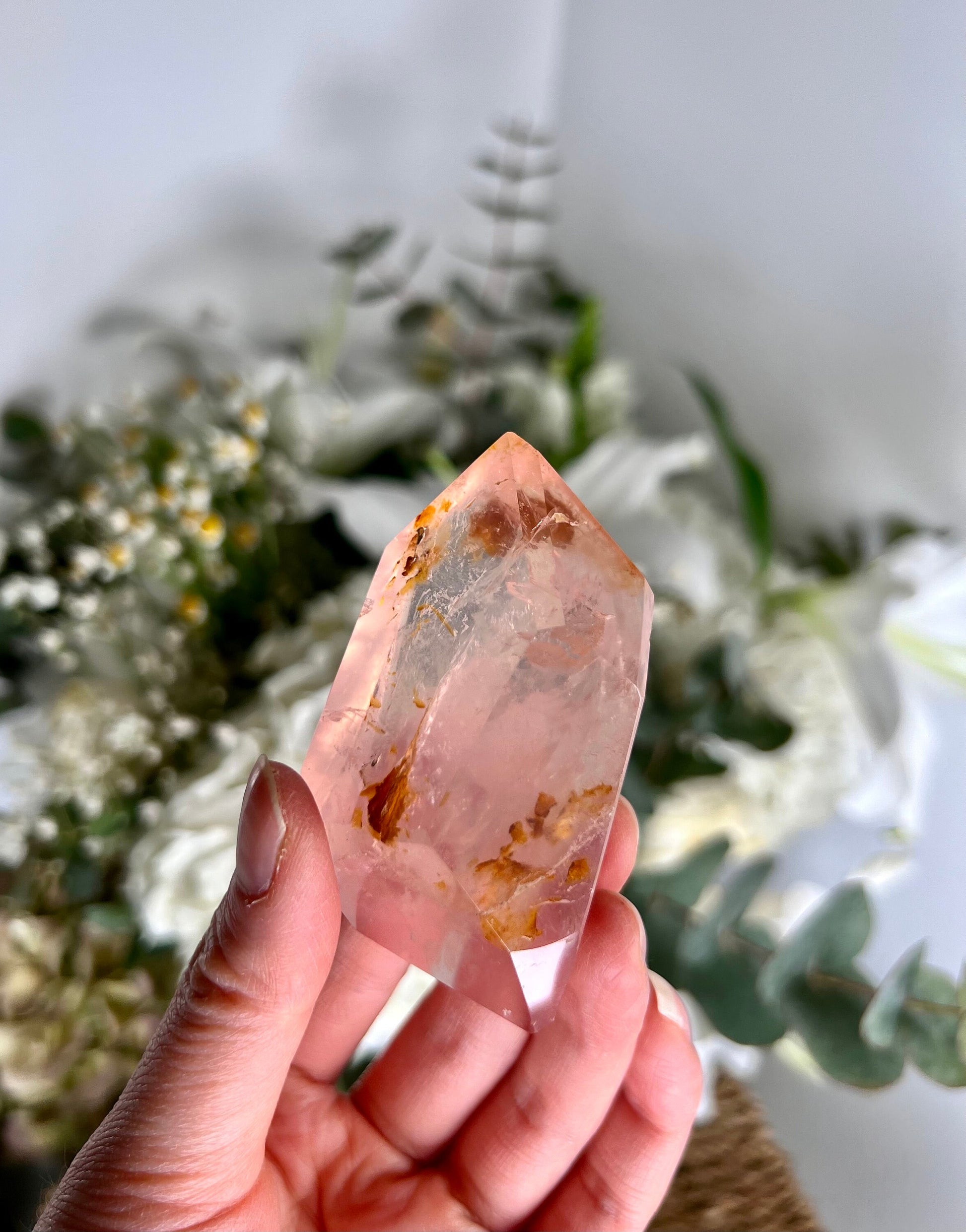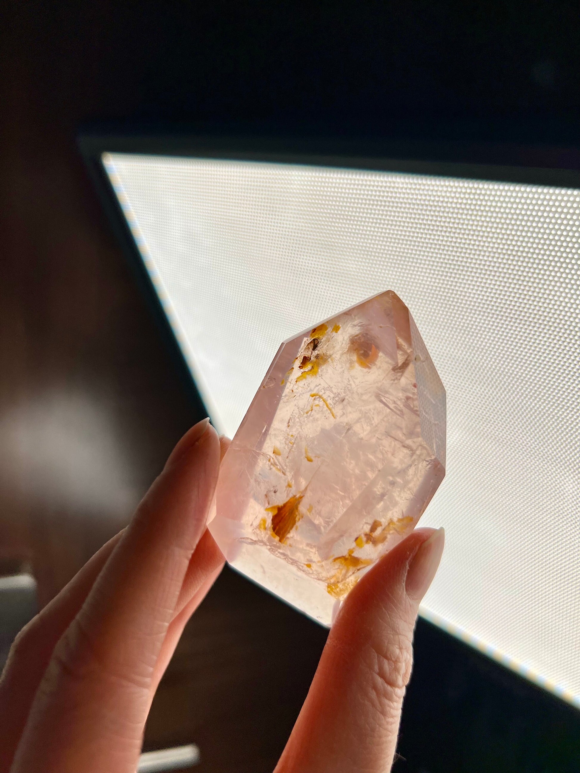 🌞 Golden Healer: Illuminated by Star Light - The Golden Healer veins within this Rose Quartz are not just pathways of healing energy but also carriers of the cosmic Star Light, grounding divine energy into the physical realm. This integration amplifies the stone's capacity to heal, uplift, and transform, aligning body, mind, and spirit with the highest vibrations of love.