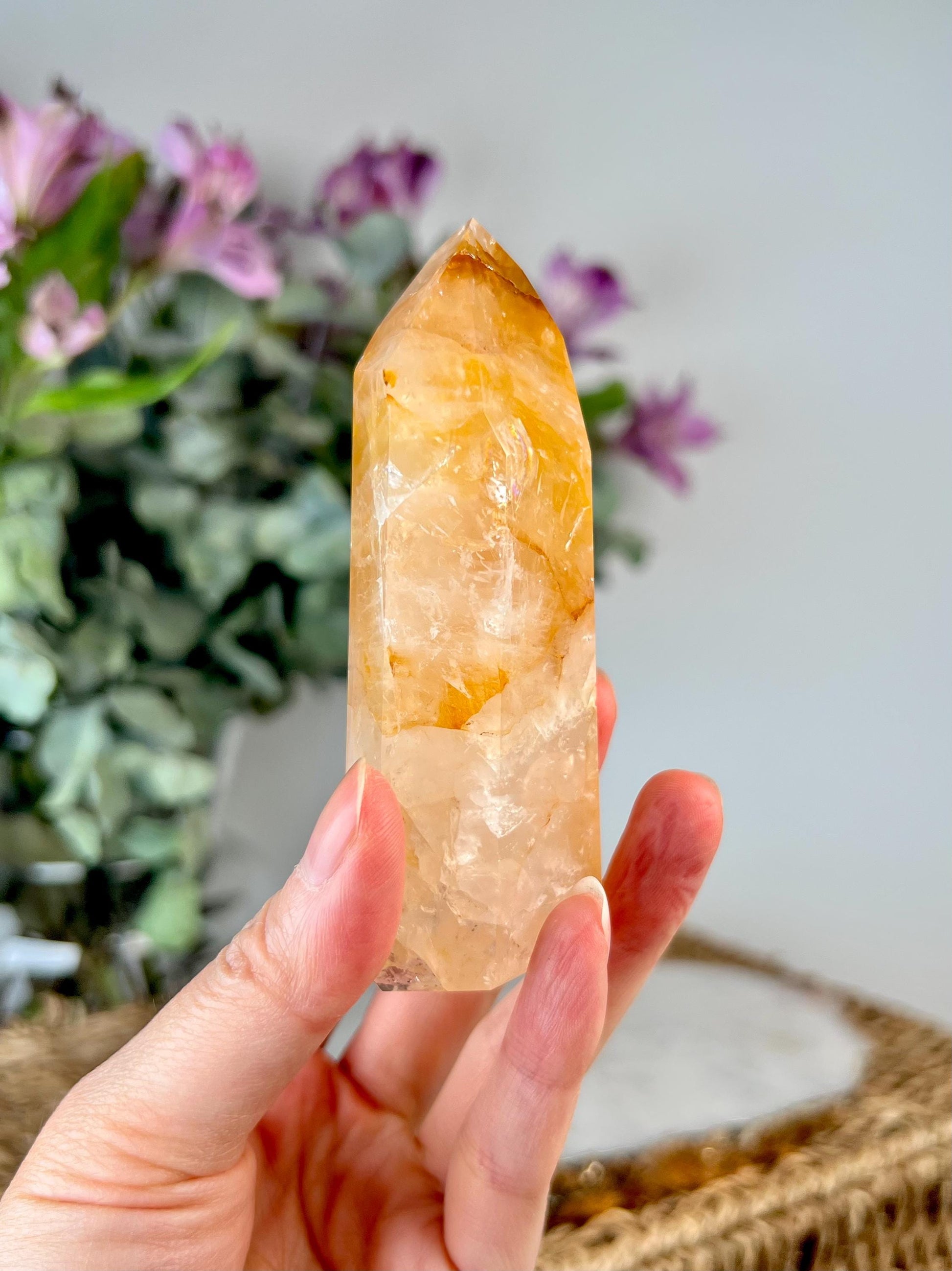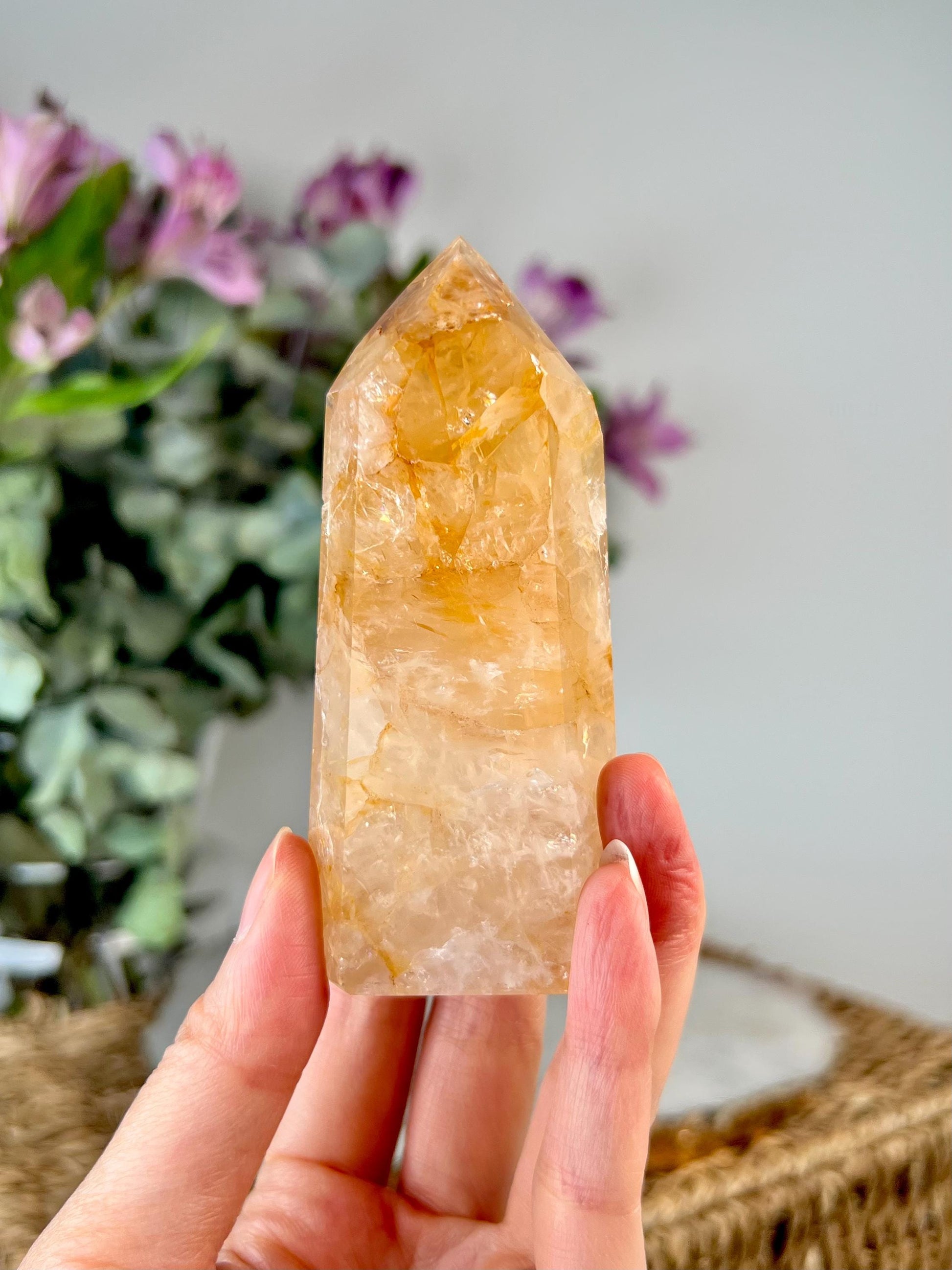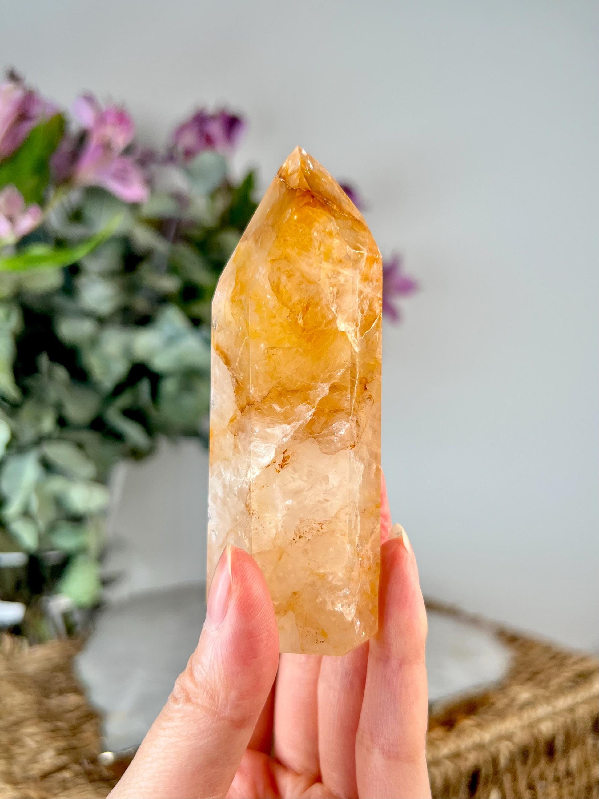 Grade AAA Golden Healer Tower - Natural Hematoid Quartz for Ultimate Healing, Abundance, and High Energy Frequency GHC64, 171g