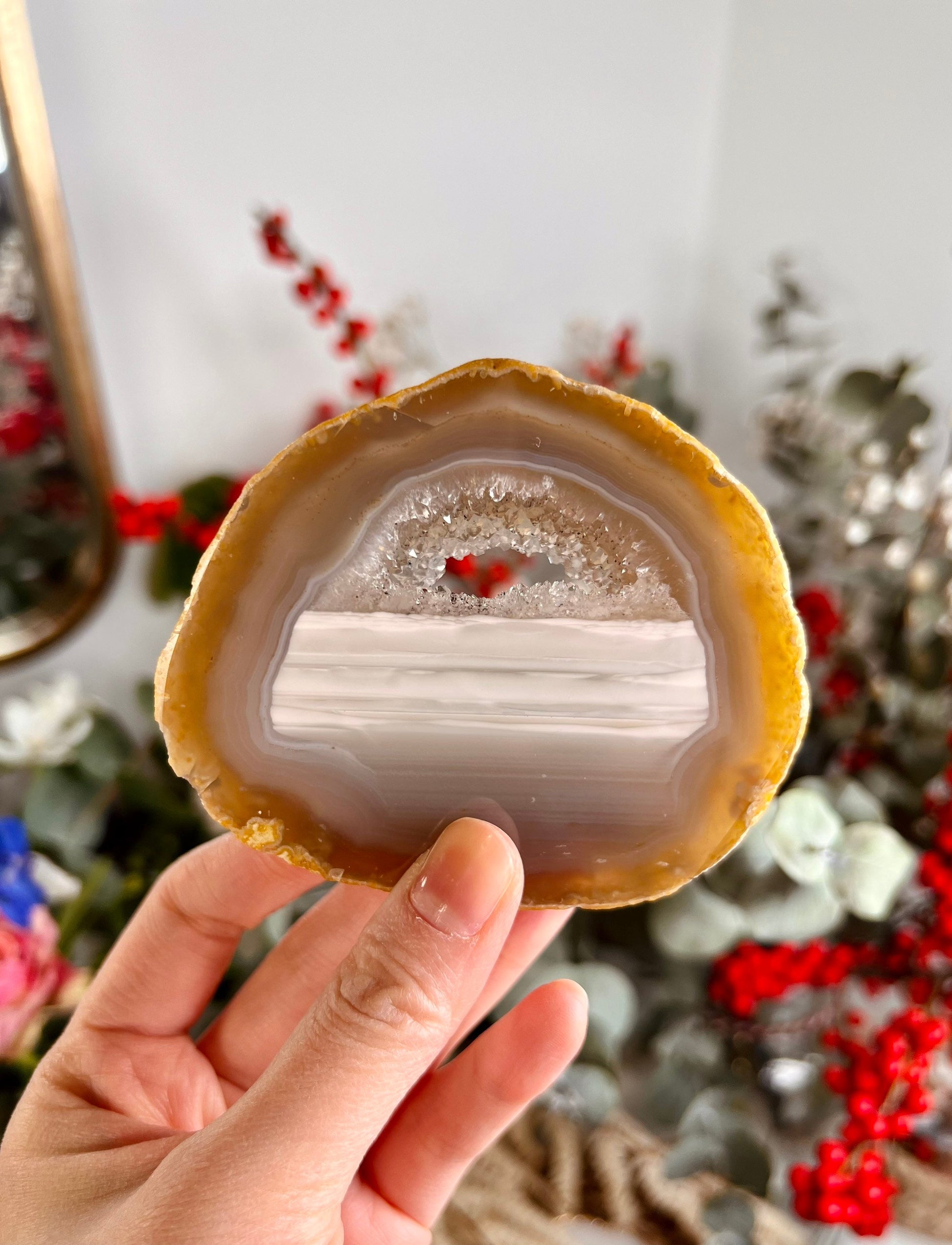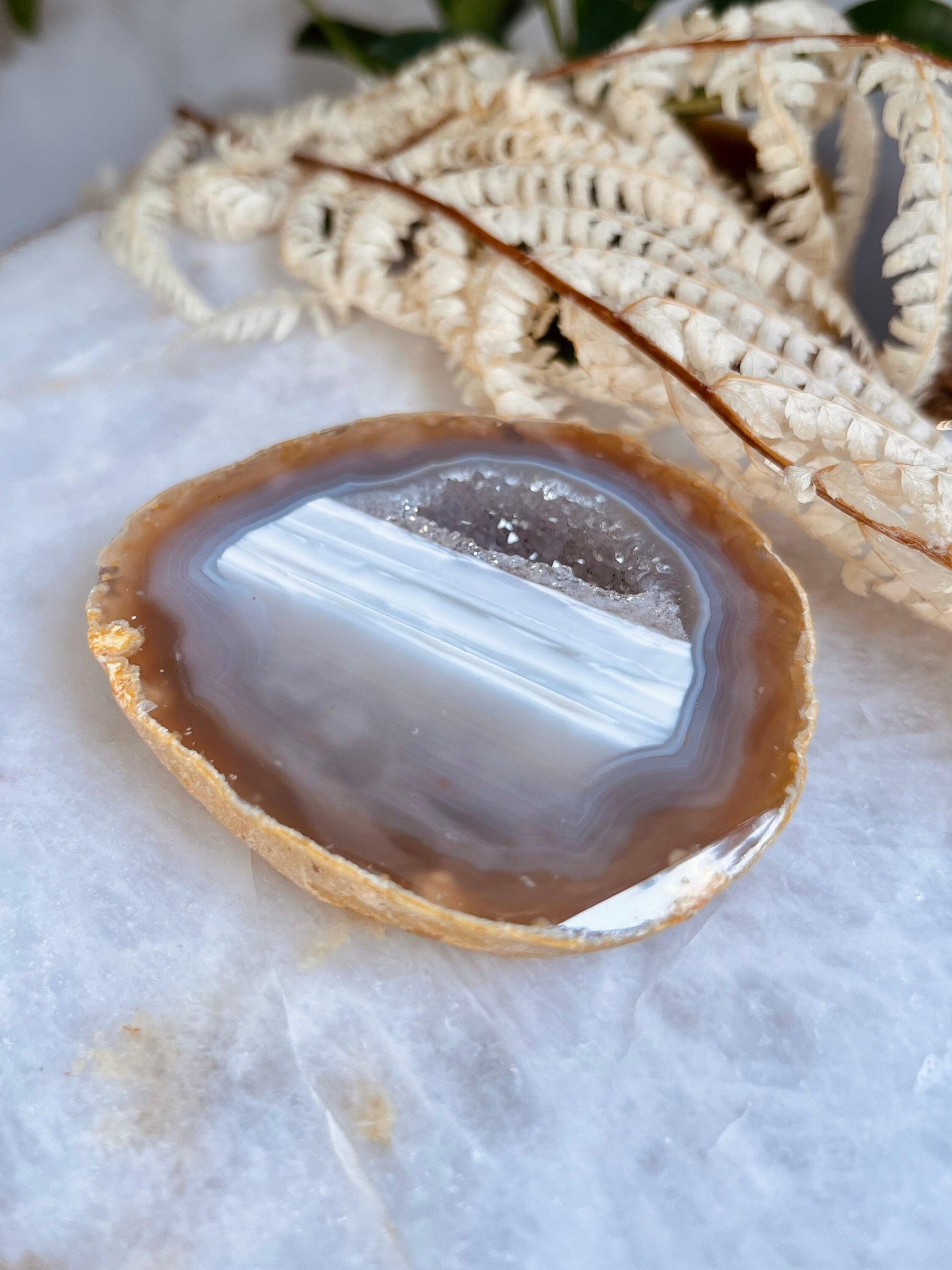 Grade AAA Natural Agate Geode Slice,Polished Crystal, House Blessing, Good Fortune, can be coaster or sphere stand 161g